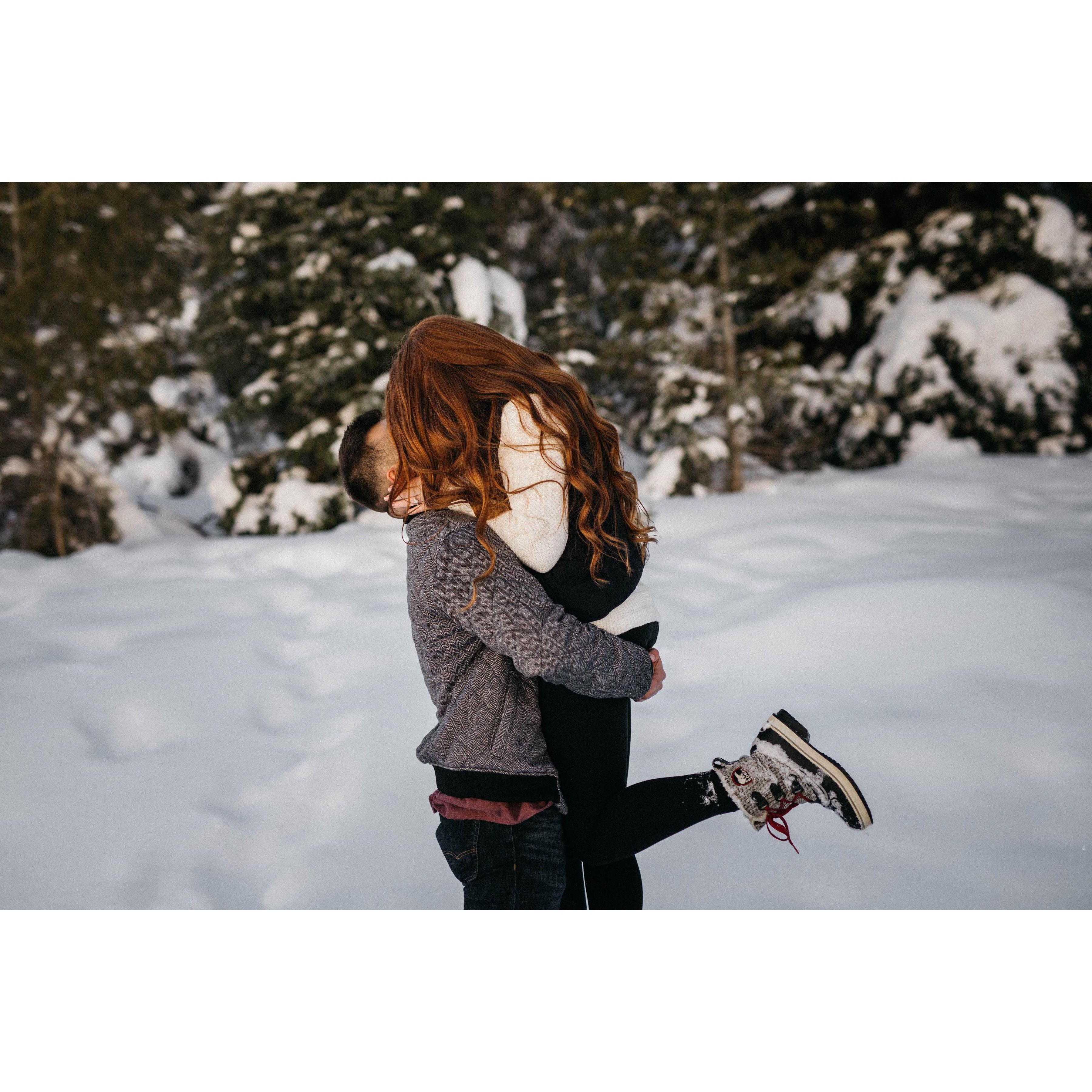One of our first dates after making it official was sledding down Old Main Hill!