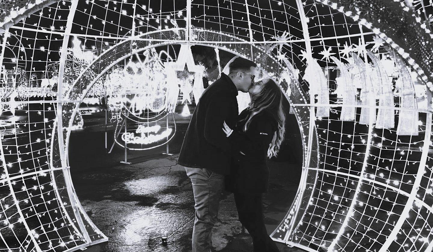 We went to Cal Expo to see the Christmas lights, little did I know, Spencer had secret plan for him to propose. The cover story was that we would be going to celebrate his sister's birthday. While looking at lights, Spencer asked a guy if he worked the event, and if he could take our picture in front of a large sign that said LOVE. The guy responded “No, but I could still take your picture.” I was so embarrassed, thinking this poor guy is just here with his family enjoying himself. It turned out that he was a friend that Spencer paid to be there to capture that moment.
