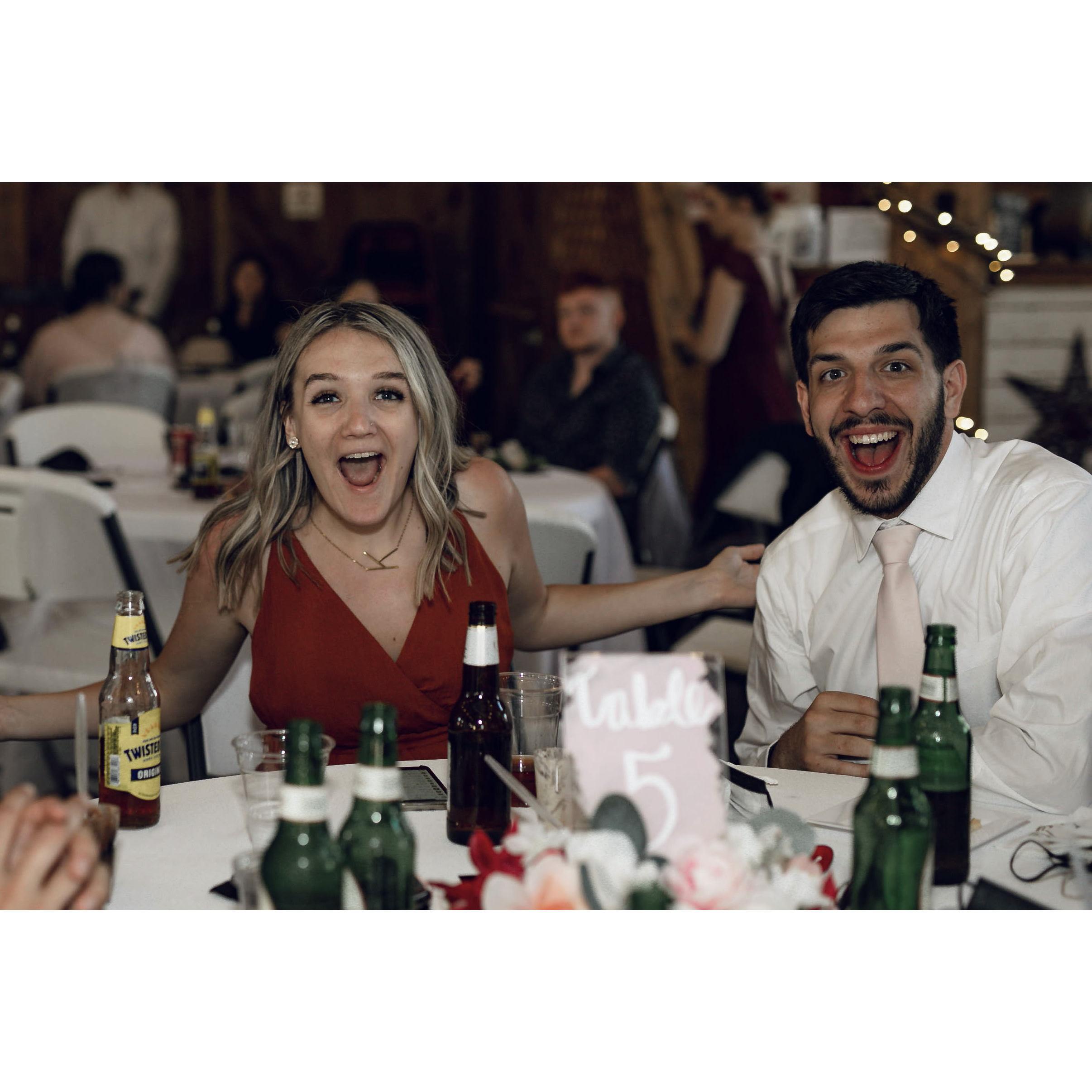 Us at a wedding at the same venue we're getting married at, a day before we're getting married!