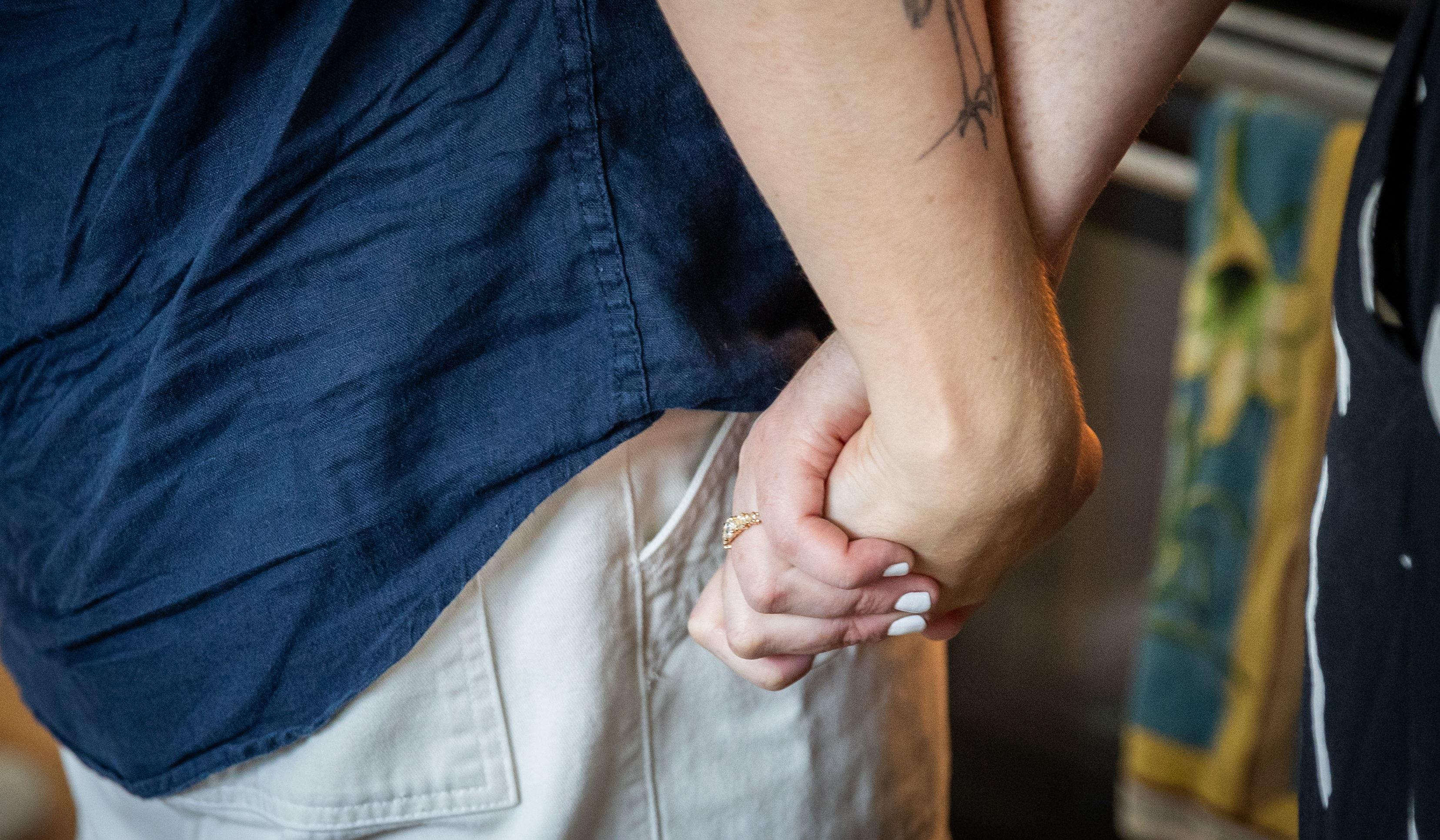 In classic queer fashion, Kelsey knew from the start of us dating that she'd marry Quinn one day. Admittedly she sometimes found it difficult to be patient (sorry Quinn), but she finally got to ask the most important question of her life when she proposed to Quinn on 7.3.24. Here's how: Kelsey had spent the previous ten months typewriting (yes, on a typewriter!) over 1,500 song lyrics, poems, early text exchanges, and other 'fragments' of our love story. One early July weekend, Quinn stayed at her sister Bridget's place so they could go to a concert, not knowing that Kelsey and Bridget had spent months secretly coordinating to find the perfect excuse to get Quinn out of the house long enough for Kelsey to tape all 1,500 scraps of paper all over every wall of our home. Continuing the typewritten letter theme, Kelsey placed the ring (custom-made by a local queer jeweler) in a tiny brown envelope, sealed with a new, custom Quinn + Kelsey wax stamp. Finally, Kelsey had hired an awesome local photographer to capture the moment. All that was left to do was pick Quinn up from the bus station and keep a straight face for the 10 minute ride home. Despite having completely sweated through all of her clothing, Kelsey somehow played it cool just long enough for Quinn to realize that the woman parked in front of the house holding a giant camera lens might not be the contractor that Kelsey had previously mentioned. Suffice it to say, the surprise was a smashing success, lots of tears were shed & hugs exchanged, and Quinn said yes. But this is only half of our proposal story! Turns out Quinn had something pretty similar in the works – she had been secretly planning with Bridget and Bridget's partner Will, both professional musicians, to set up a makeshift recording studio in their NYC apartment. They recorded Quinn singing a cover of one of our early relationship songs ("Graceland Too" by Phoebe Bridgers) which Quinn then used as the backdrop for a video montage of our relationship – a collection of VISUAL fragments of our story. One night, Quinn, having hidden Kelsey's ring (originally her great-grandmother's, which fit perfectly) in a nearby slipper, put a fire on and suggested a movie, instead putting the surprise proposal video up on the big screen at home. For the record, Kelsey also said yes. (Also, in a nutshell, Bridget is the real MVP here! Thank you / sorry Bridget!!) This next chapter – all the new 'fragments' to come – will be the best yet. We're so incredibly excited and grateful to be able to share it with you.
