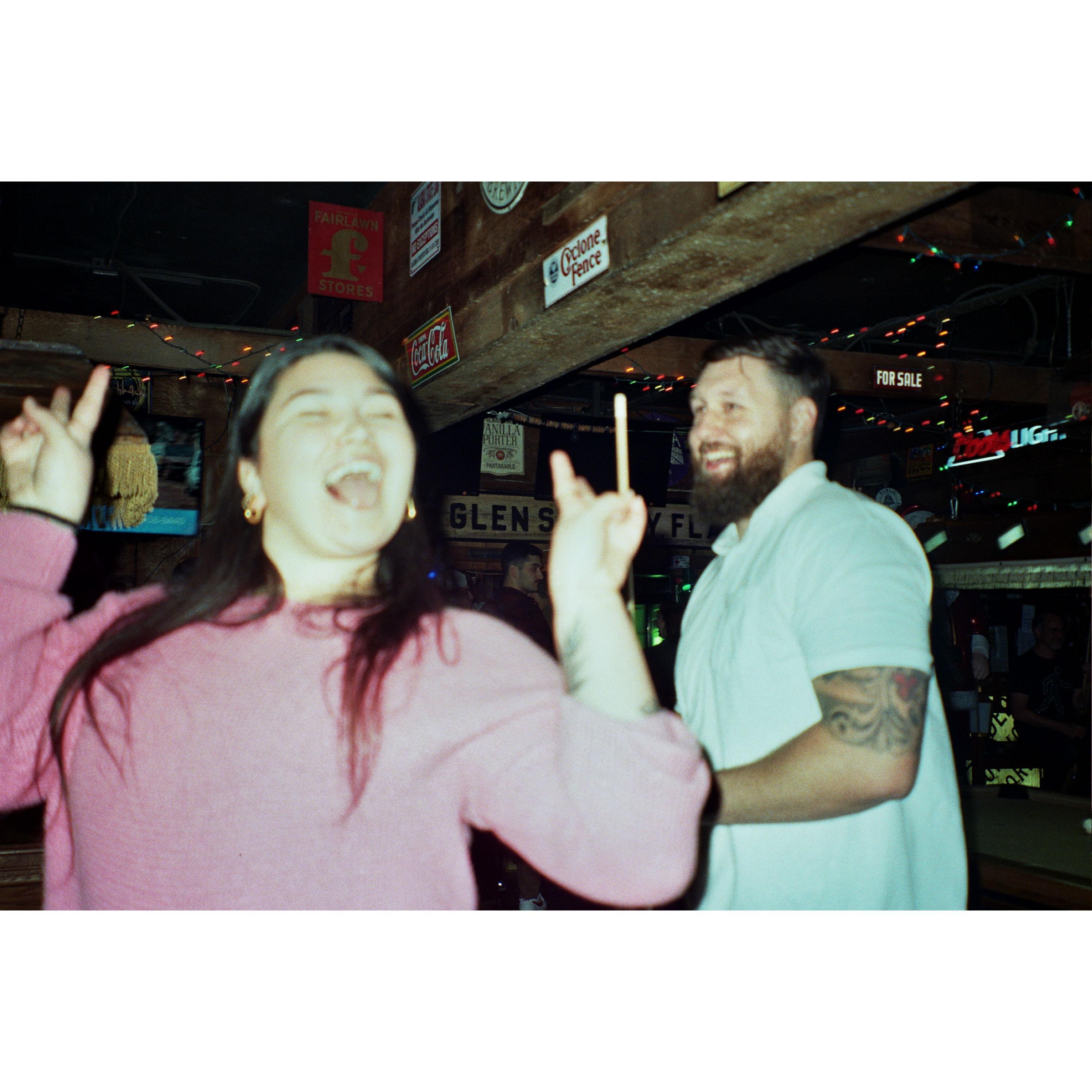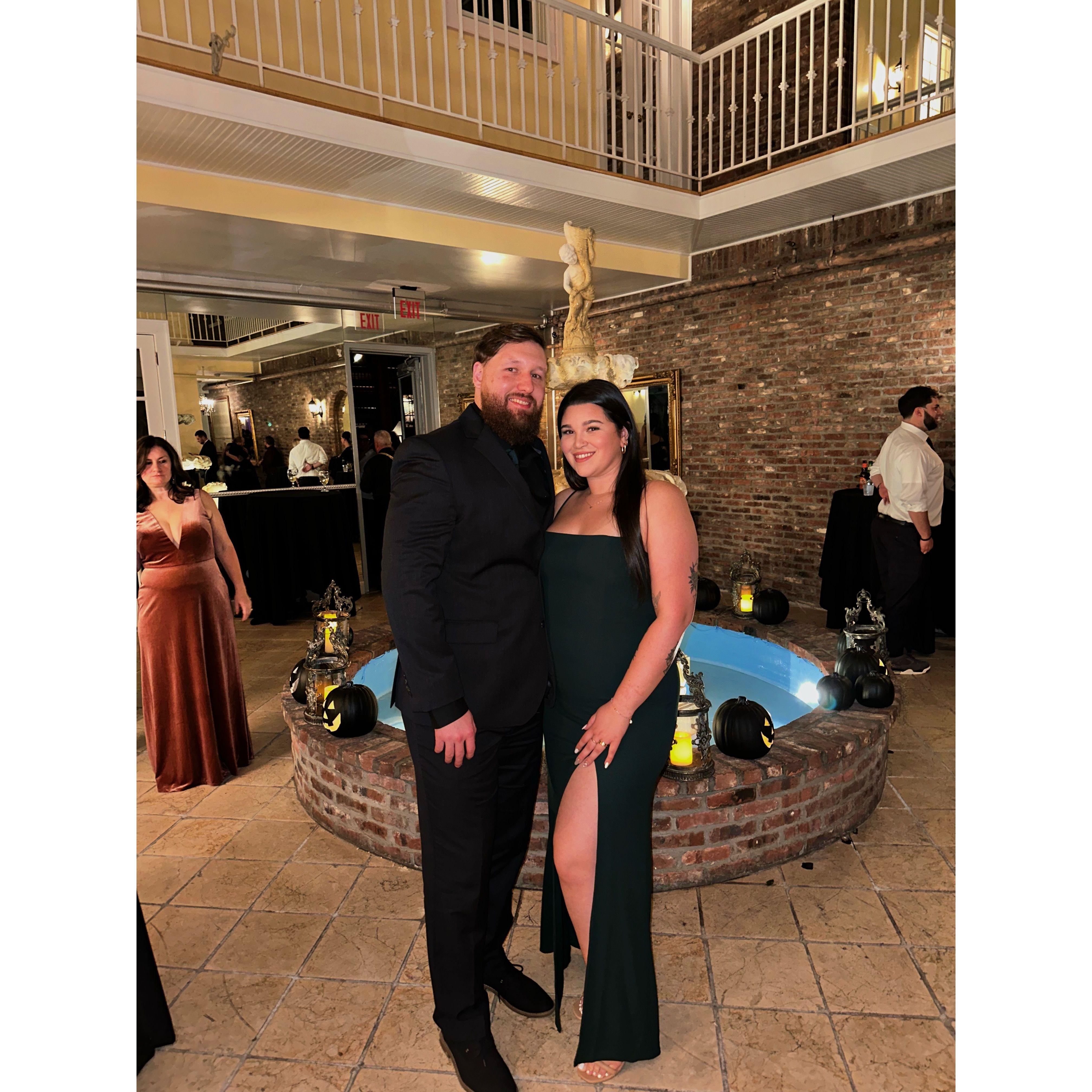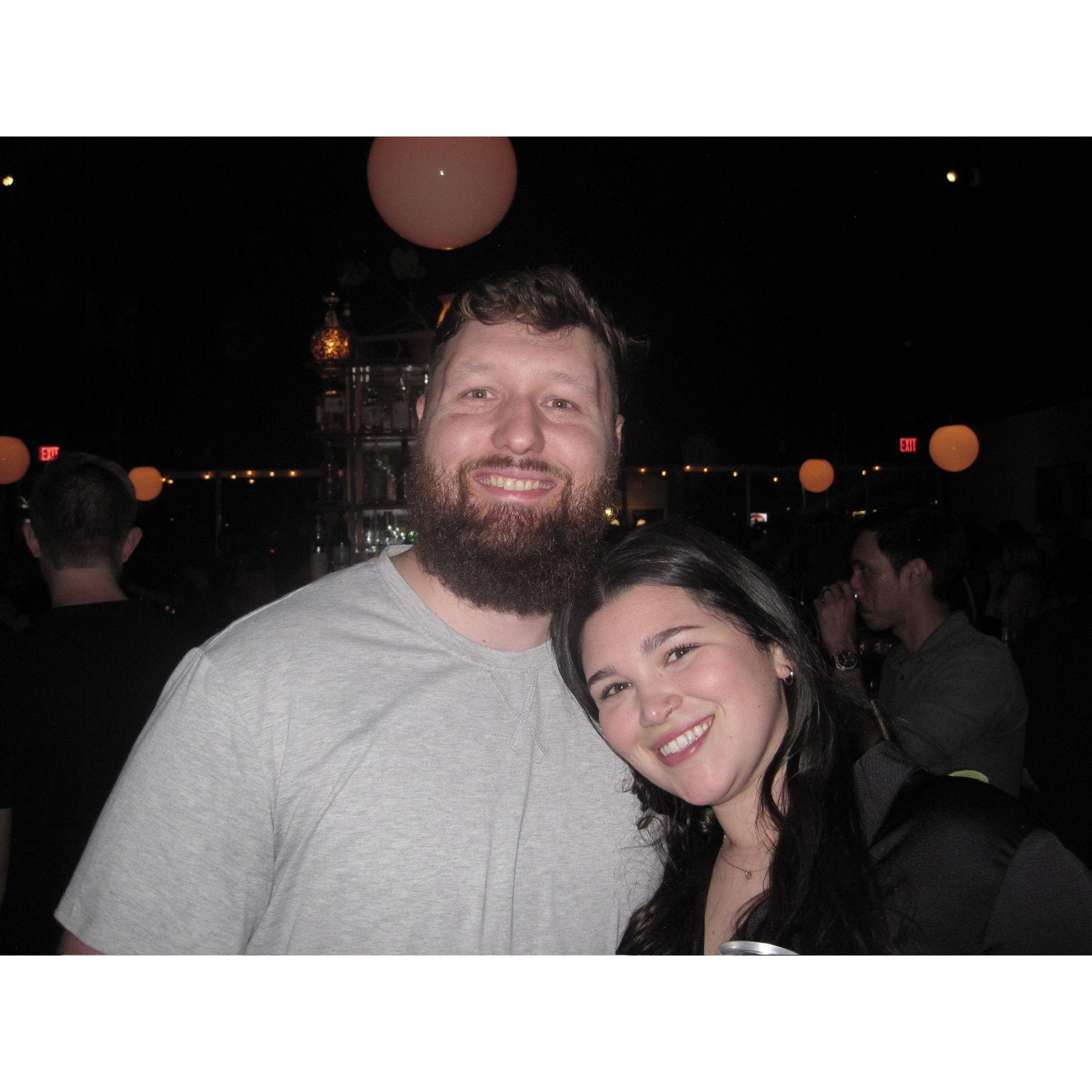 Our very first photo together at a "white lies" T- shirt party; we were in fact, not single!