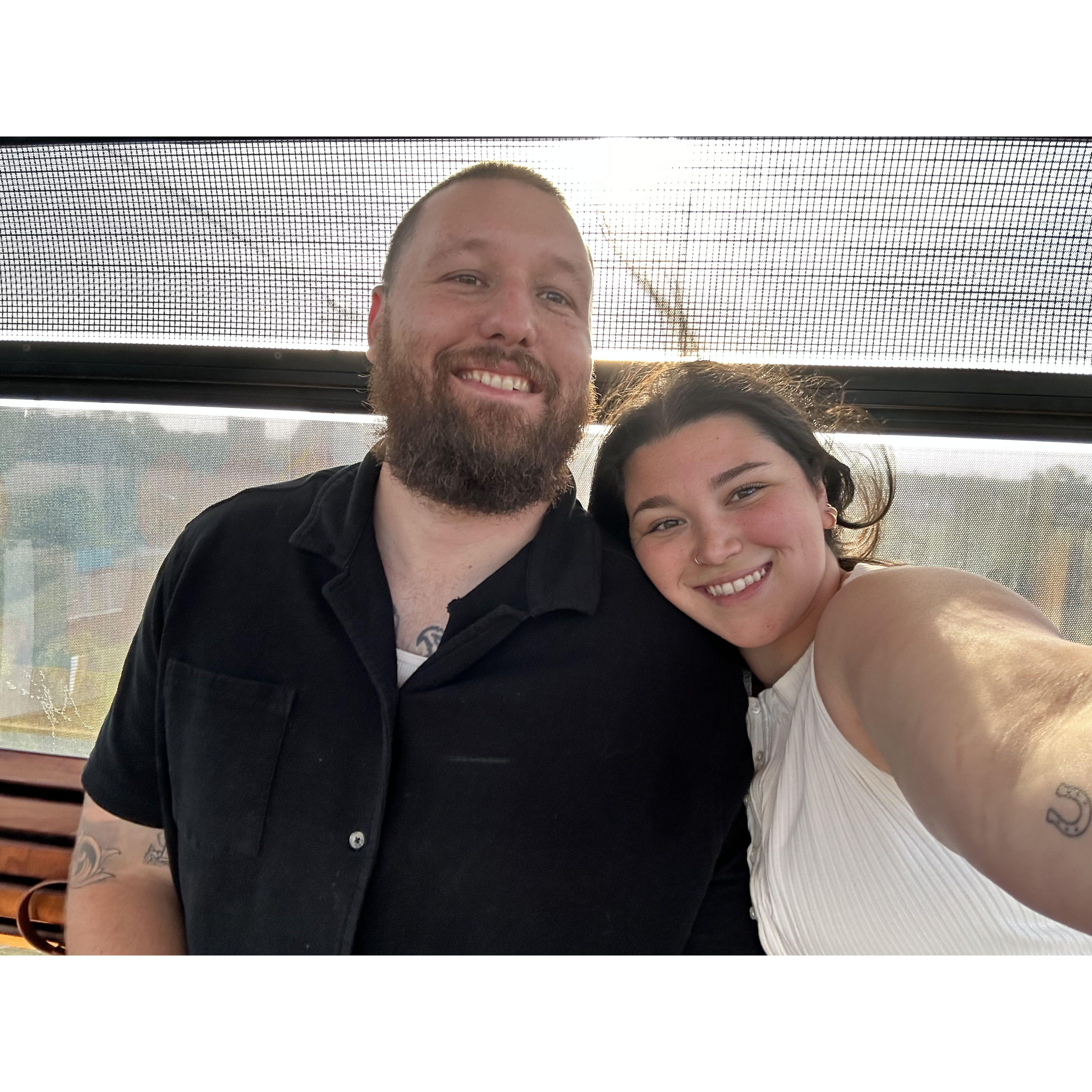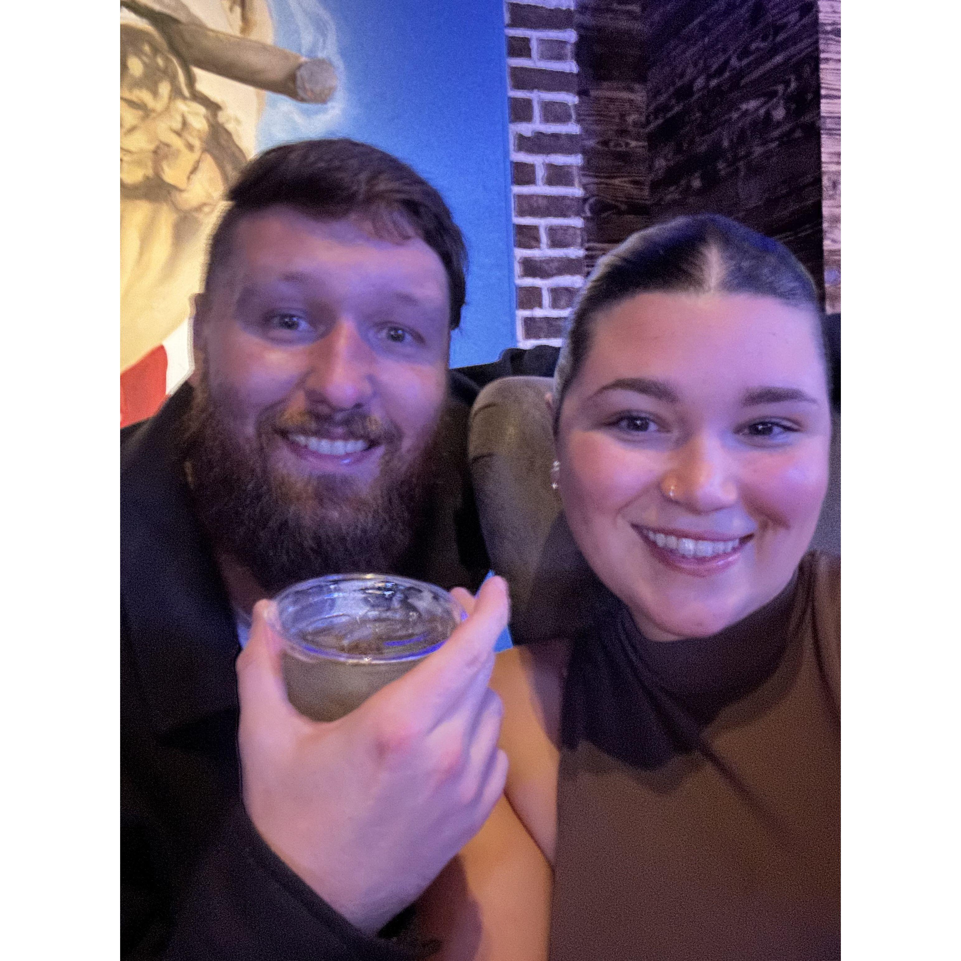 Eating at a French restaurant exactly 1 year before our wedding!