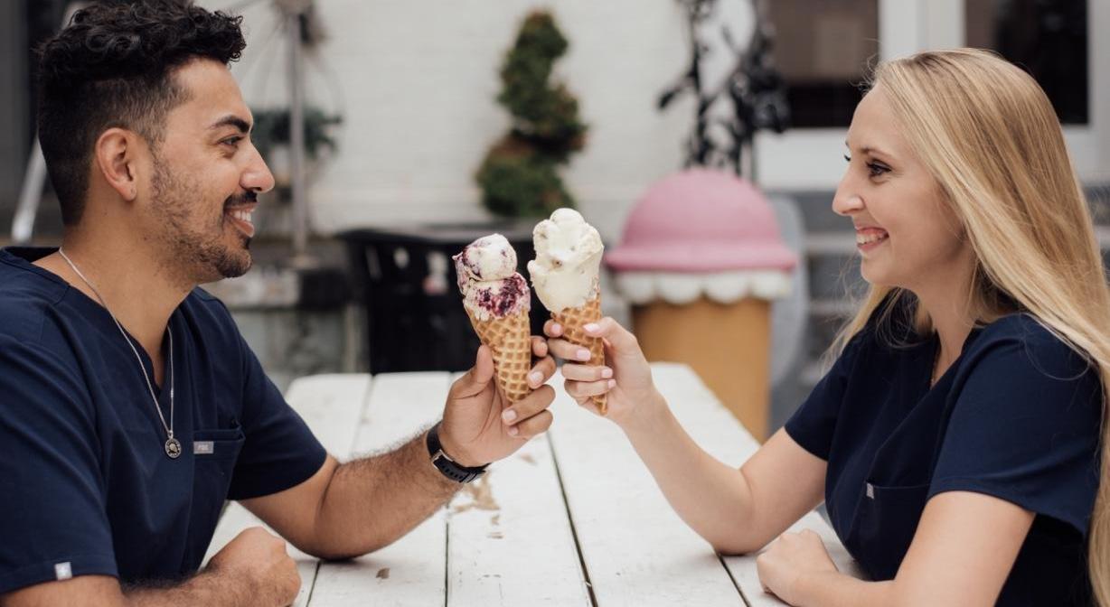 Royce & my first date was June 4, 2015. That was the day after my 21st birthday. I was upset that he didn't come to the bar to celebrate with me the day before (because I had a crush on him). I guess he had a big test that next day or something along those lines! (Excuses, excuses). So the next day, he took me out for ice cream. We went to the local Dairy Queen and we stayed there for a few hours! We talked, laughed and just had a great time! Now, we always go out for ice cream, or go to the store and get ice cream at 2:00 in the morning!