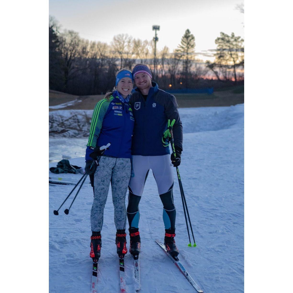 One of our first pictures together - Jake teaching Kelsie to ski!