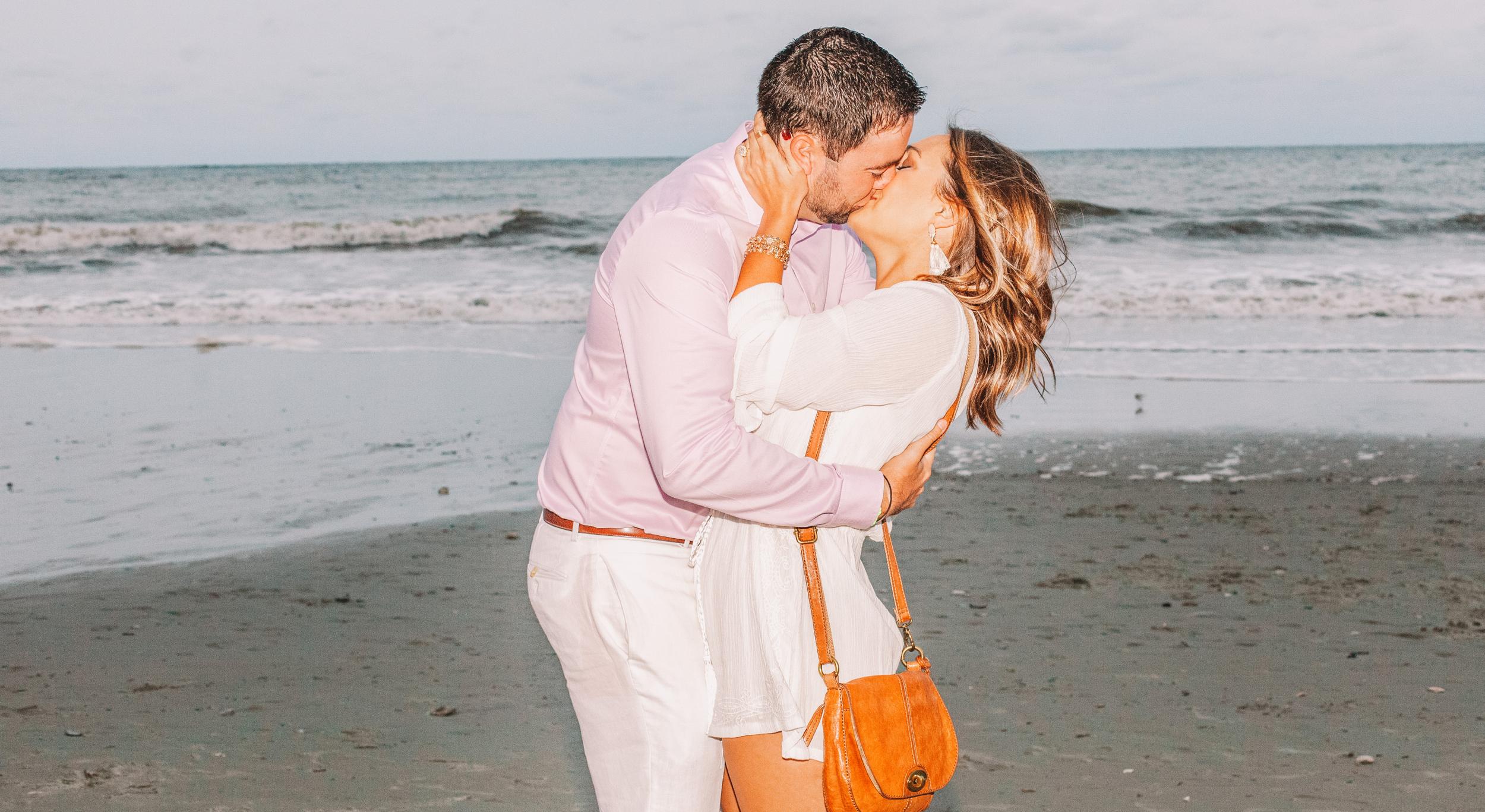 While on a trip in Myrtle Beach with two of their greatest friends, Connor planned an entire day of fun activities - something that wasn't out of the ordinary for him! The day started off with a helicopter ride over Myrtle Beach then onto a Tiki Barge excursion on the Intracoastal Waterway. While walking on the beach after dinner that night, Connor walked Meredith towards a pathway of signs adorned with photos from various milestones in their relationship. Connor stopped at each sign to say a few words about it and at the final one got down on one knee! The spectators from the balconies above cheered and the photographer Connor planned captured it all! The final surprise of the night came when a limo pulled up to take us over to Murrells Inlet to celebrate!