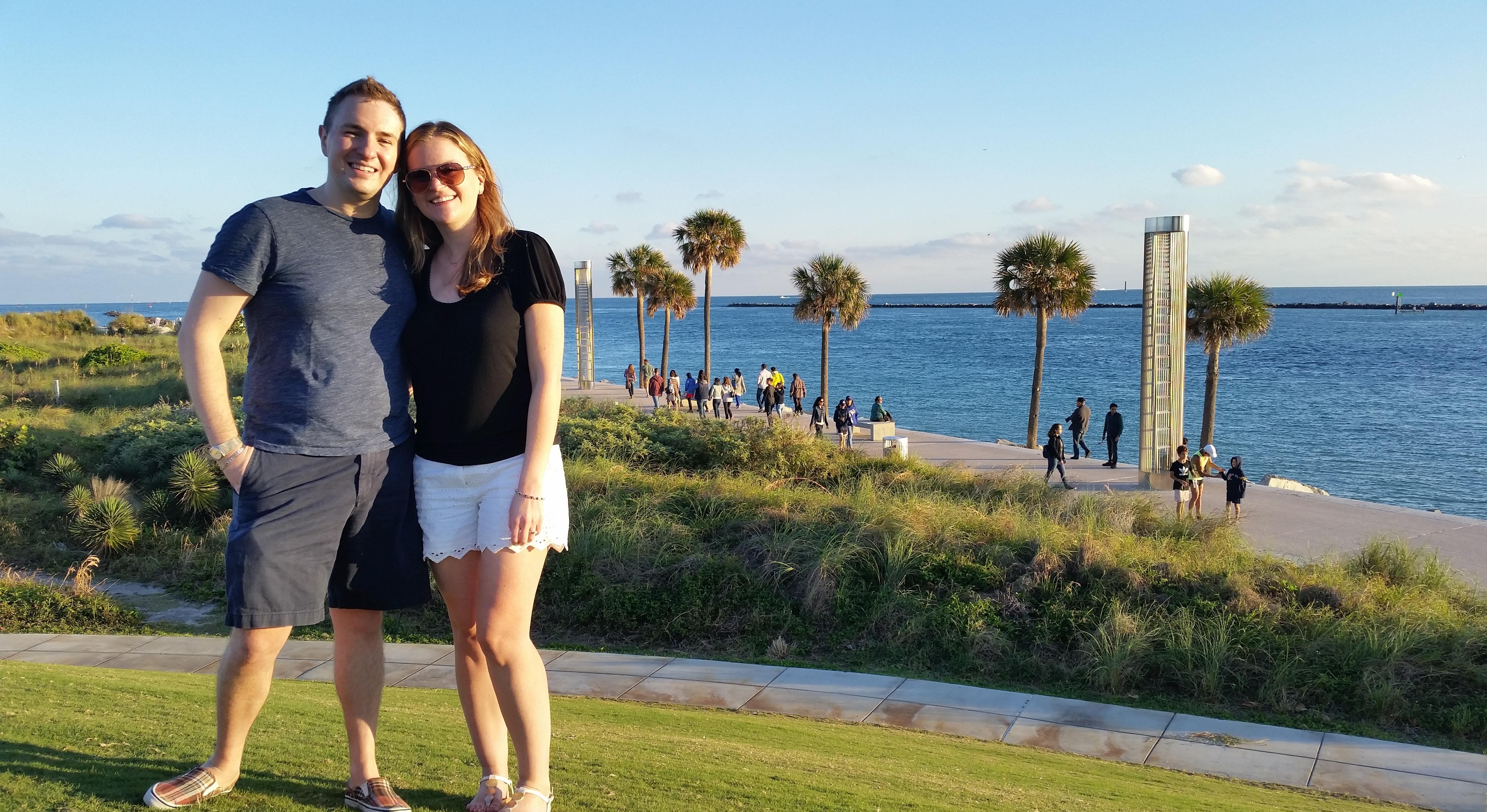 Shortly after landing in Miami for a New Year's vacation, Chris and Kim went to South Beach for lunch. After lunch, Chris suggested a walk along the water. As they were walking, they noticed a large cruise ship pulling out to sea. Kim pulled out her phone to snap a picture and turned around to find Chris on one knee. She immediately said "of course!" During a nervous moment for Chris, Kim had to prompt Chris to actually remove the ring from the box and place it on her finger. We are so excited to share our special day with you. See you in Newport!