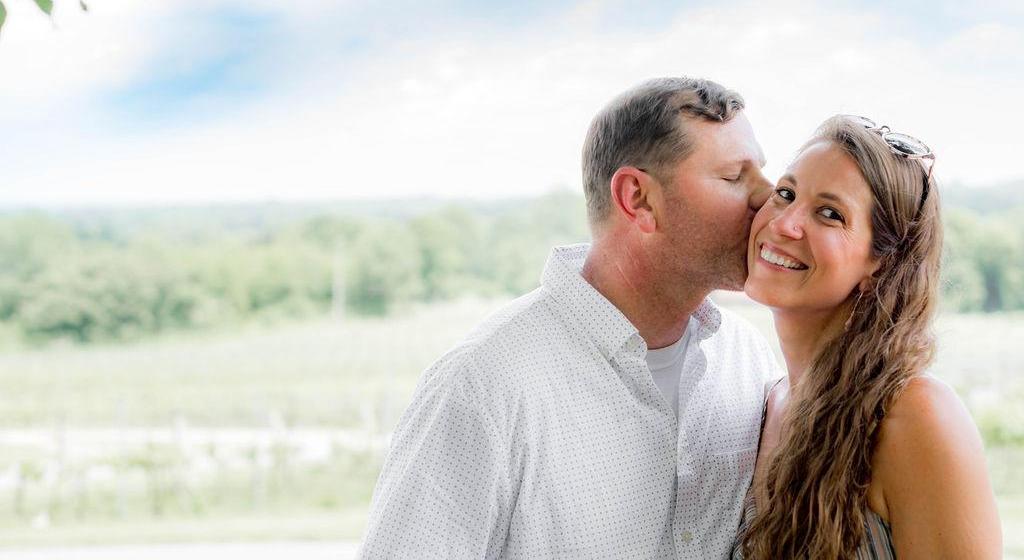 Nathan and I met on a dating website. We started texting and then calling each other. We never ran out of things to talk about. I remember showing him several songs that I liked at the time, one being Oceans by Hillsong United. He ended up loving that song and started listening to the same music that I do. We both had been heartbroken in our past marriages, and even though the situations were different we had that in common. We both love God, so that was a big plus! We decided to meet at a restaurant. We went out to dinner to get sushi, and then we went to Craft Conundrum after for a couple of beers. Craft Conundrum became one of our favorite places to go to before it closed. A month after we started dating I met Nathan's two children, AnneMarie and Parker. AnneMarie had just turned 6 and Parker was 4. They are now 11 and 9! Nathan and I have been dating for over 5 years. We love spending time with family and friends, going to church, being outside, trying new wines and beers, and cooking different recipes together. We got engaged in May 2019 at one of our favorite vineyards, Raffaldini Vineyard in North Carolina! We've been through a lot together in our relationship and been through a lot as a couple with everything that has gone on in the world over the past 5 years, but our love continues to grow for each other each day. We've grown so much individually and together. One of the big reasons for that growth is our faith and trust in our God. He is always there for us, always faithful, and it's amazing to see how He has worked in our lives individually and as a family. We are so glad we found each other, and I'm so happy to have two children that will soon call me stepmom (or they can still just call me Kimberly if they want).