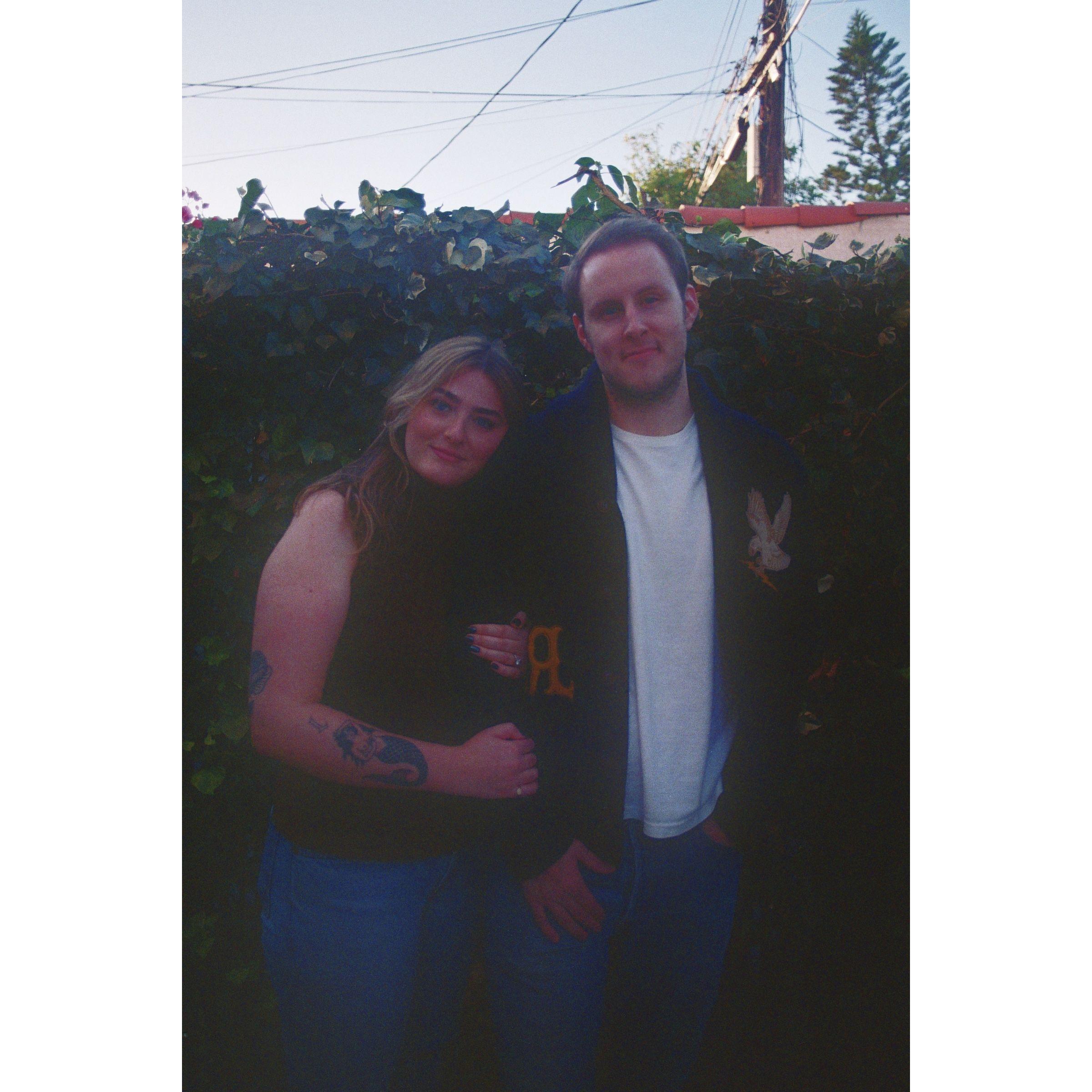 Engagement photos in our backyard in front of the ivy!