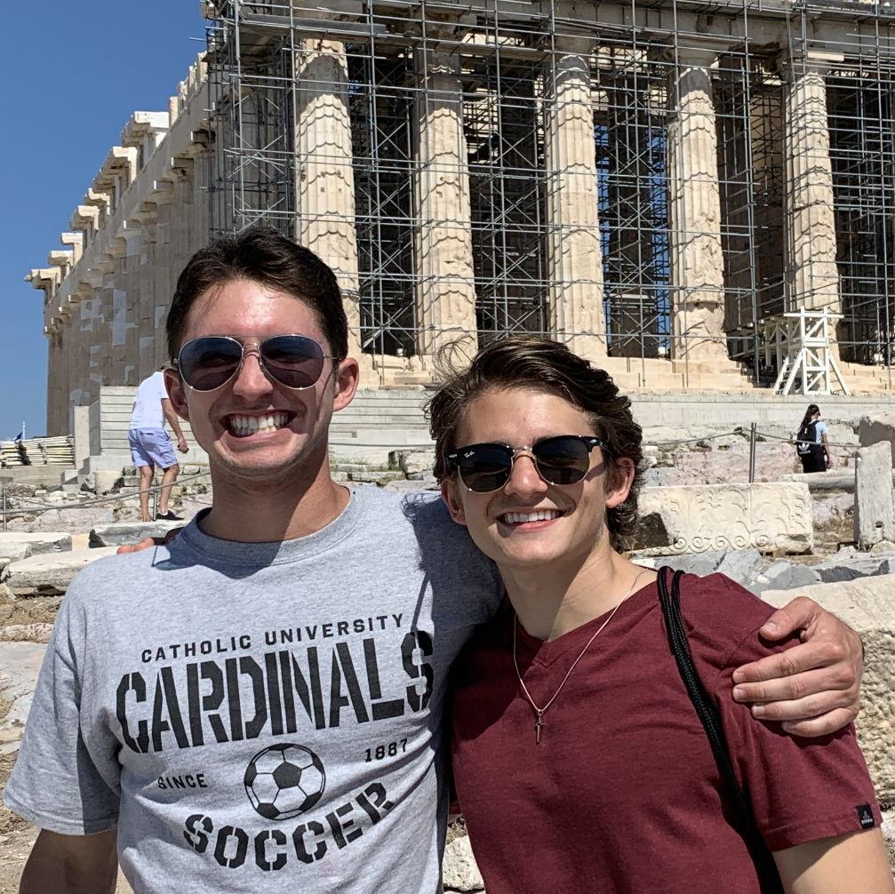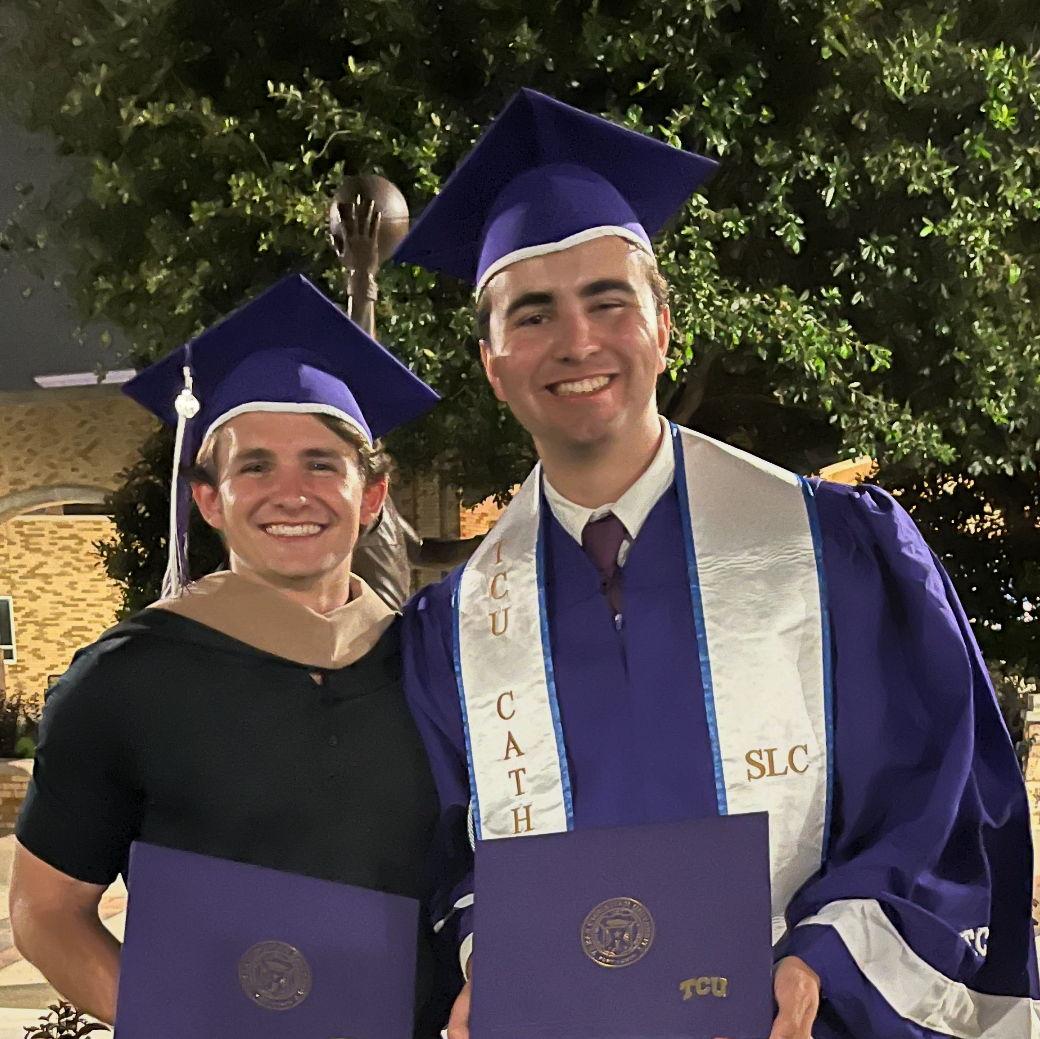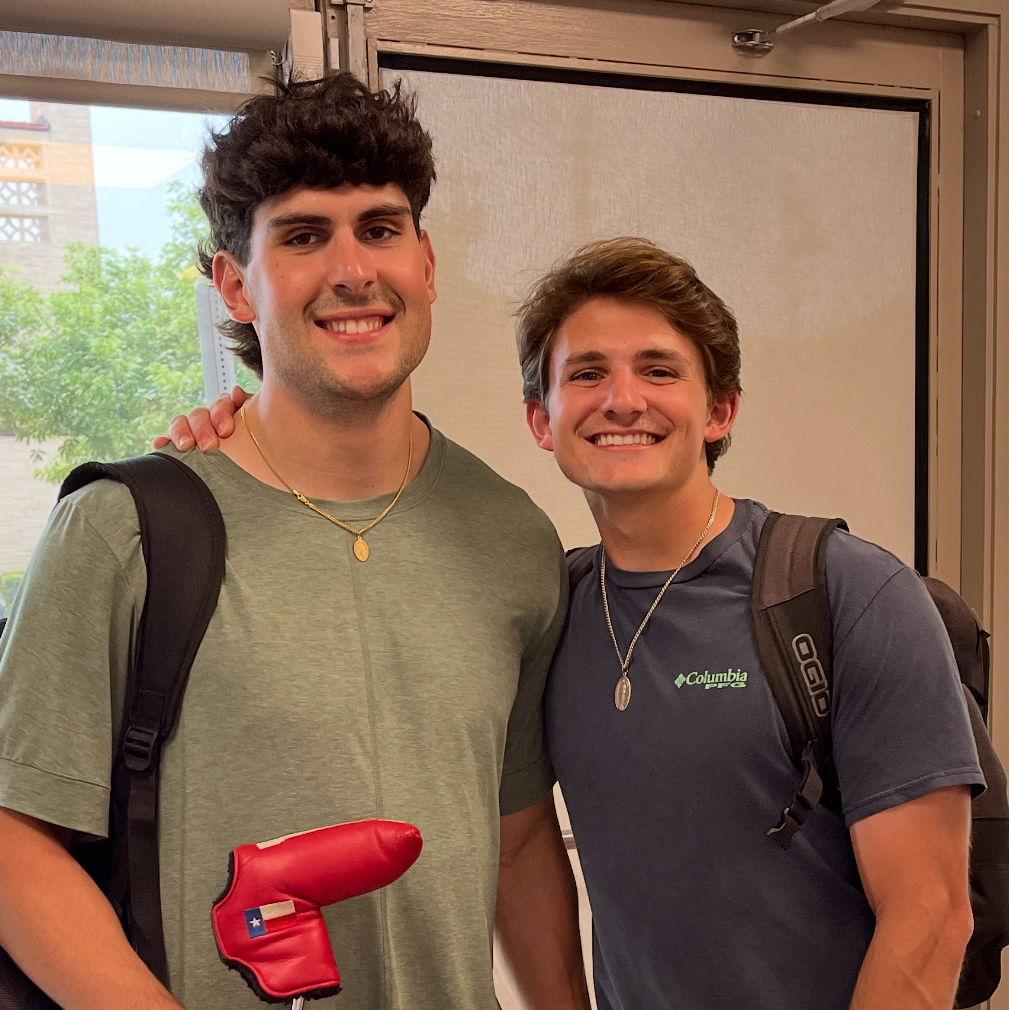 Though James and Joey have only known each other for two years, those years have been marked by a strong brotherhood. With his extensive background in sports and strong witness to faith, Joey found the TCU Catholic Newman Center in the Fall of 2023, and there stumbled upon his soulmate - James. With a lot of common ground, Joey and James naturally gravitated towards one another and have developed their friendship through many rounds of golf, leadership positions in the Catholic community, and going to Chuck-E-Cheese.
