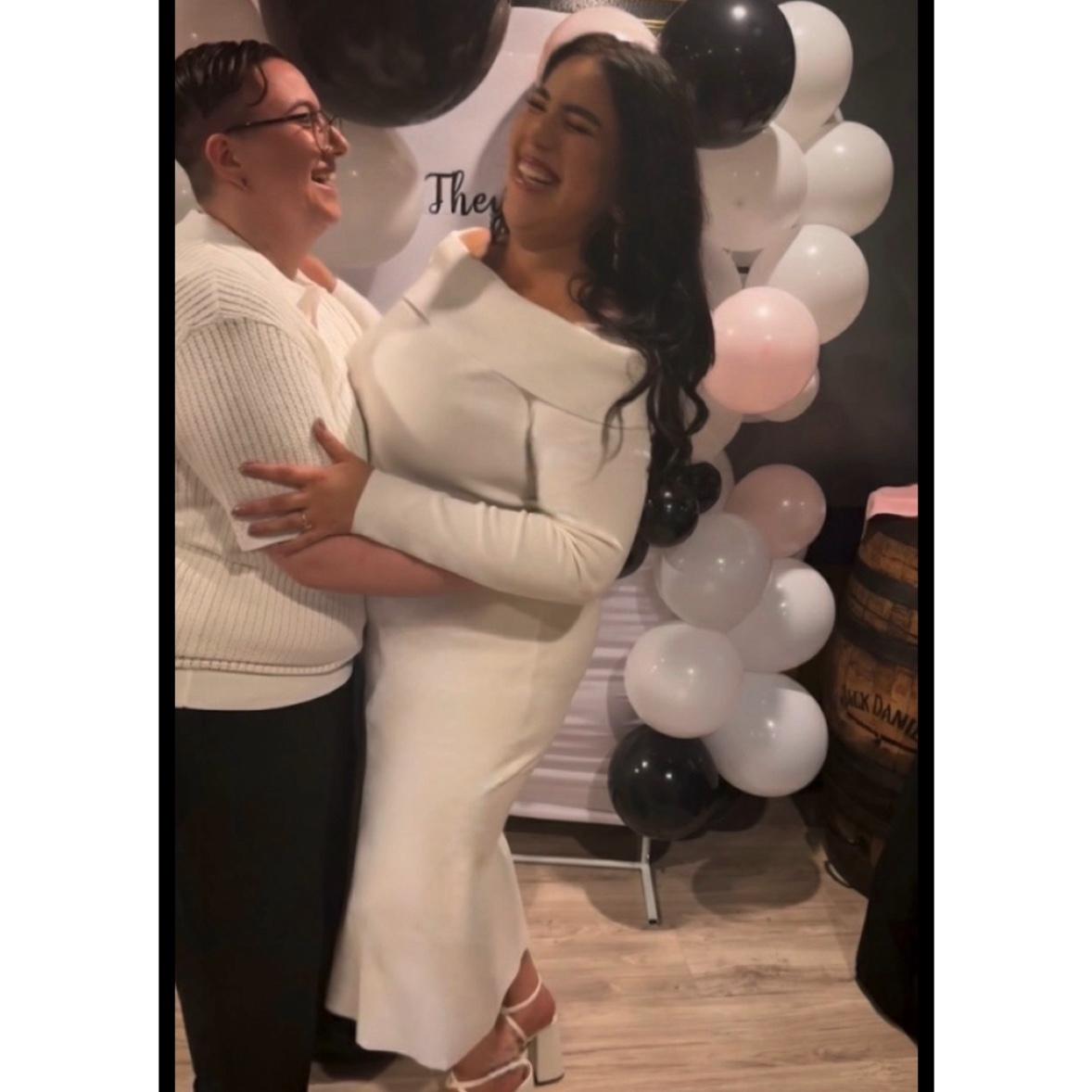 Like many modern love stories, ours began in the most romantic way possible: swiping right in pajamas, praying the other person wasn’t a catfish. Jessica was browsing profiles when she stumbled upon Kris’s bio: “Seeking someone to binge-watch Law & Order: SVU with.” This caught Jessica’s eye, as it was too her favorite series to indulge in. Intrigued by this common interest, Jessica took a chance and swiped right. Luckily, Kris did too—otherwise, this would be a very awkward wedding website. Their initial exchanges were filled with warmth and humor, leading to several FaceTime calls that solidified their connection and where they were able to confirm neither was using a decade-old profile picture. Eager to meet in person, they decided on a casual first date at D’Amore’s in Brooklyn. From the first moment Kris arrived to pick up Jessica, it felt easy—like they’d known each other forever. No awkward silences, no emergency exit strategies—just good food, laughter, and the start of something special. Things really took off from there. One beach day at Riis Park, Jessica blurted out the big “I love you,” and thankfully Kris didn’t run into the ocean. Embracing their deepening connection, Kris and Jessica decided to take the next step by moving in together. They found a charming apartment in Butler’s Manor, Staten Island, a neighborhood known for its serene ambiance and proximity to natural beauty. Here, Kris joyfully embraced the esteemed role of “step-dog mother” to Jessica’s beloved chihuahua, Canela, adding another layer of warmth to their shared life. Adjusting to life with a tiny but mighty four-legged overlord was no small feat, but Kris handled it with grace (and plenty of treats). Fast forward to Christmas Day nearly a year later: Kris pulled off the ultimate holiday surprise. She whisked Jessica away to a charming Christmas village in New Jersey, a place that seemed to have leaped from the pages of a fairy tale. The village was adorned with twinkling lights, quaint boutiques, and festive cheer. As they strolled hand in hand, they arrived at a riverside light show, where fireworks painted the night sky. It was there, surrounded by magic and holiday cheer, that Kris proposed. Overwhelmed with joy, Jessica eagerly accepted, sealing their commitment to a lifetime together. And now, here we are—proof that sometimes swiping right leads to the best adventure of all.