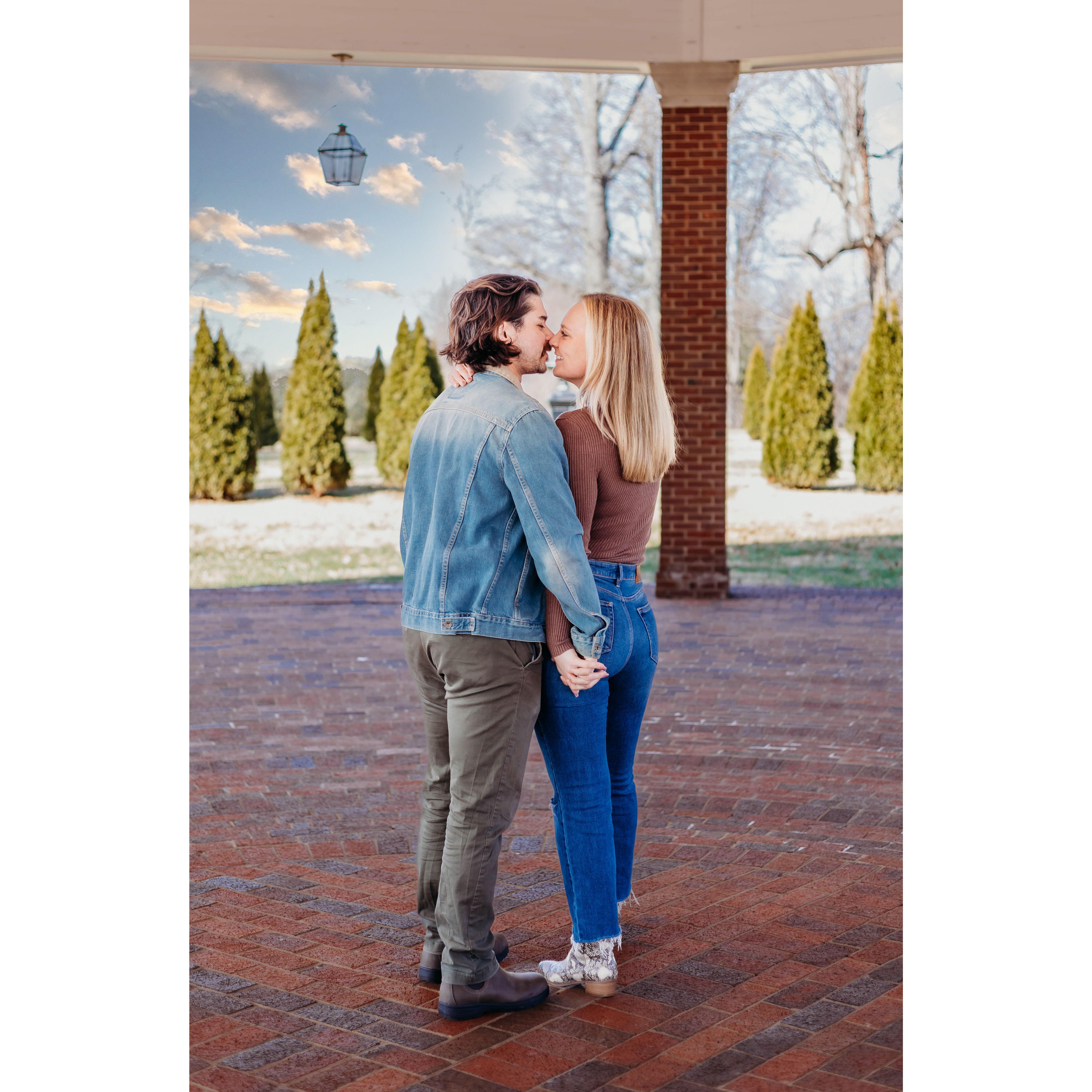 Our first photo together after the special engagement on New Year's Day 2025! Out for a hike with our doggies!