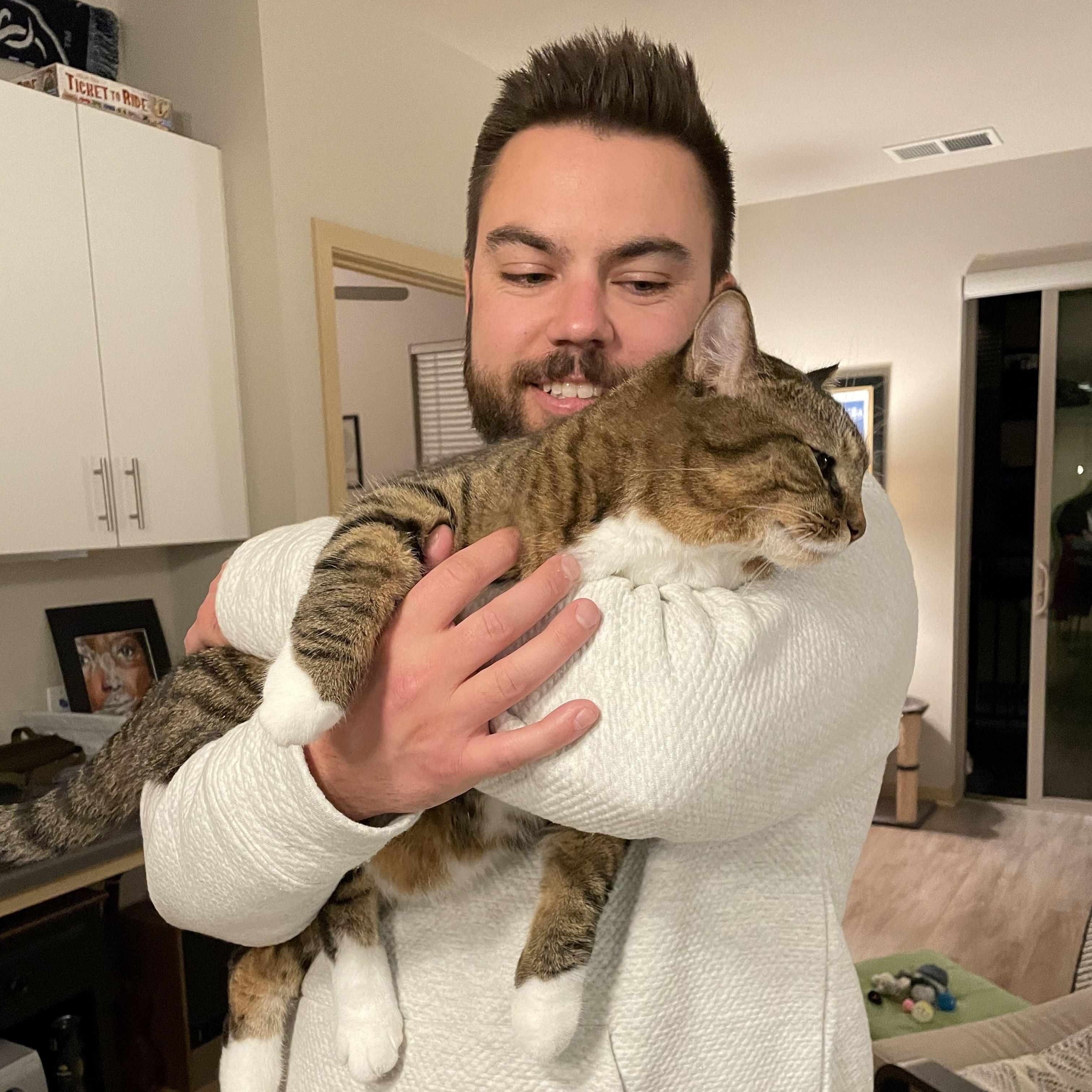 Katie is an extrovert working from home as a graphic designer, she is lucky enough to have an associate (their cat Lunar) that barely tolerates her when Grant is at work. Her passions include Wisconsin beers and cheeses, cat videos, SPORTS, and dressing up like famous men from the 80s for Halloween.