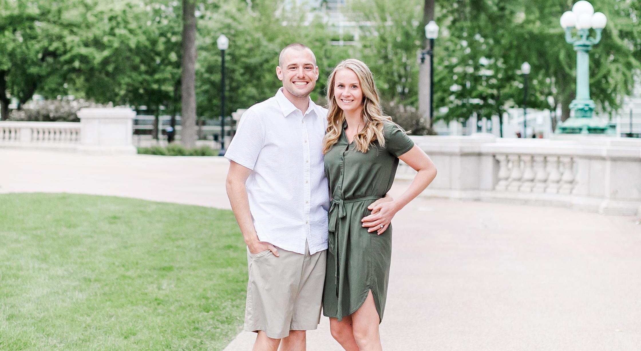 Taco Bell dumpster... It was our freshman year at UWL and coincidentally, Tyler and I had decided to go out to house parties with our friends. At some point during the night, my girlfriends and I needed to use the bathroom. We came to the conclusion that Taco Bell's bathroom sounded cleaner than a college party house. After cramming into a tiny one stall bathroom, we all emerged, ready to go to more parties. But out of the apple of my eye...I mean corner of my eye, I saw a guy... sitting on top of a dumpster! Intrigued, I walked over and as I got closer, I noticed how attractive this guy was. I had never seen him before, but I was feeling confident. I walked straight up to him and said, "Hey, what are you doing sitting on a dumpster?" And Tyler said, "I am waiting for my friend, Andy to meet up with me." Normally, I would have said something like, "Ok, have a good night!" But I knew there was something special about him. So instead, I responded saying, "No you're not! You're coming with us." To my surprise, he jumped down off the dumpster and started walking with me to the next party. We spent all night together and the rest is history! We have been together, ever since that infamous night on the Taco bell dumpster and I can't imagine life without him. I love you so much, Tyler! And I cannot wait to marry you!!