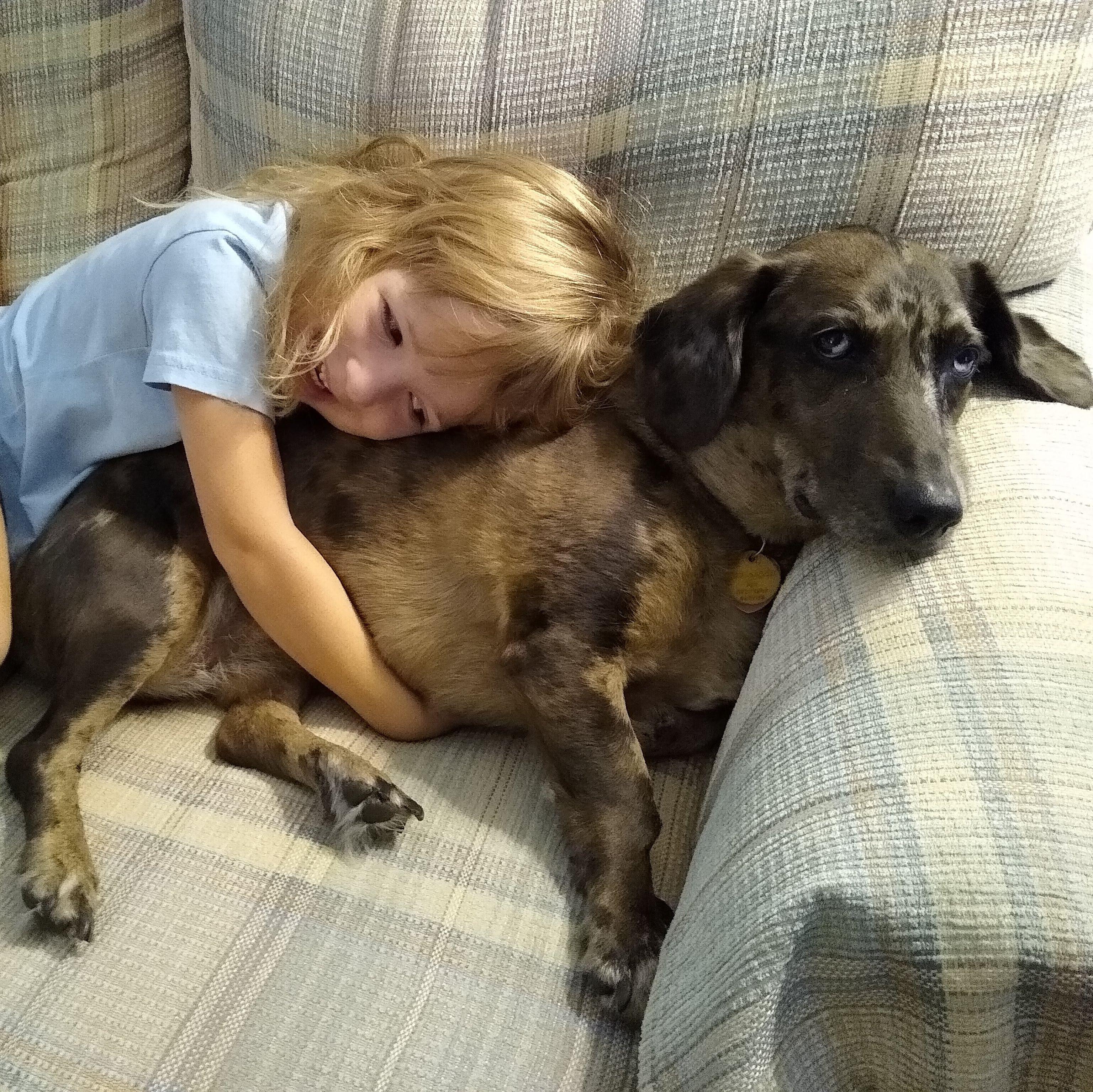 Oura is our beloved 13 year old beagle-basset-Dalmation-German shepherd-Lab-cocker spaniel-chow-chow-mystery mix dog. She was Kyla's 1 year old dog when she met Eric, and quickly became Eric's dog as well. We love her.