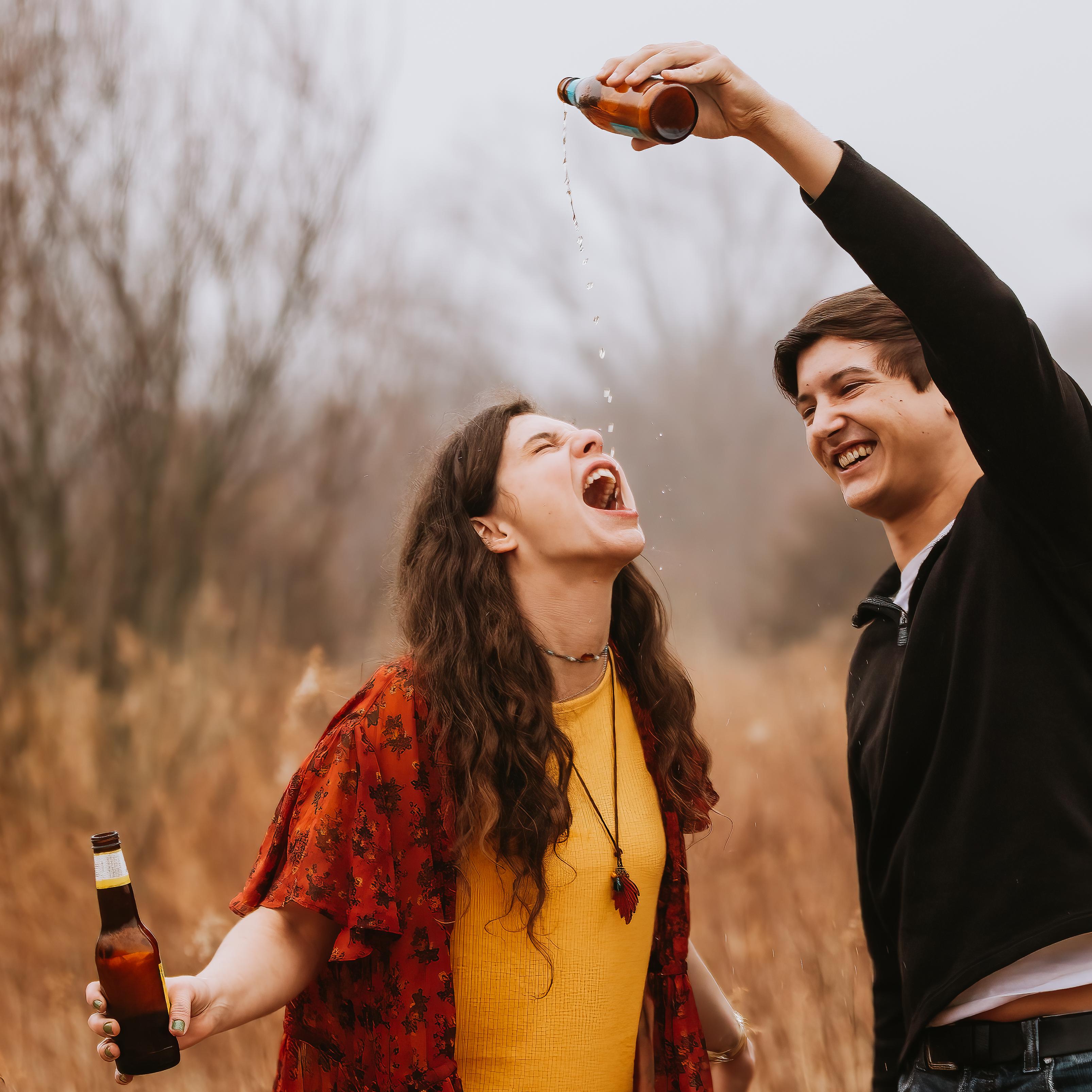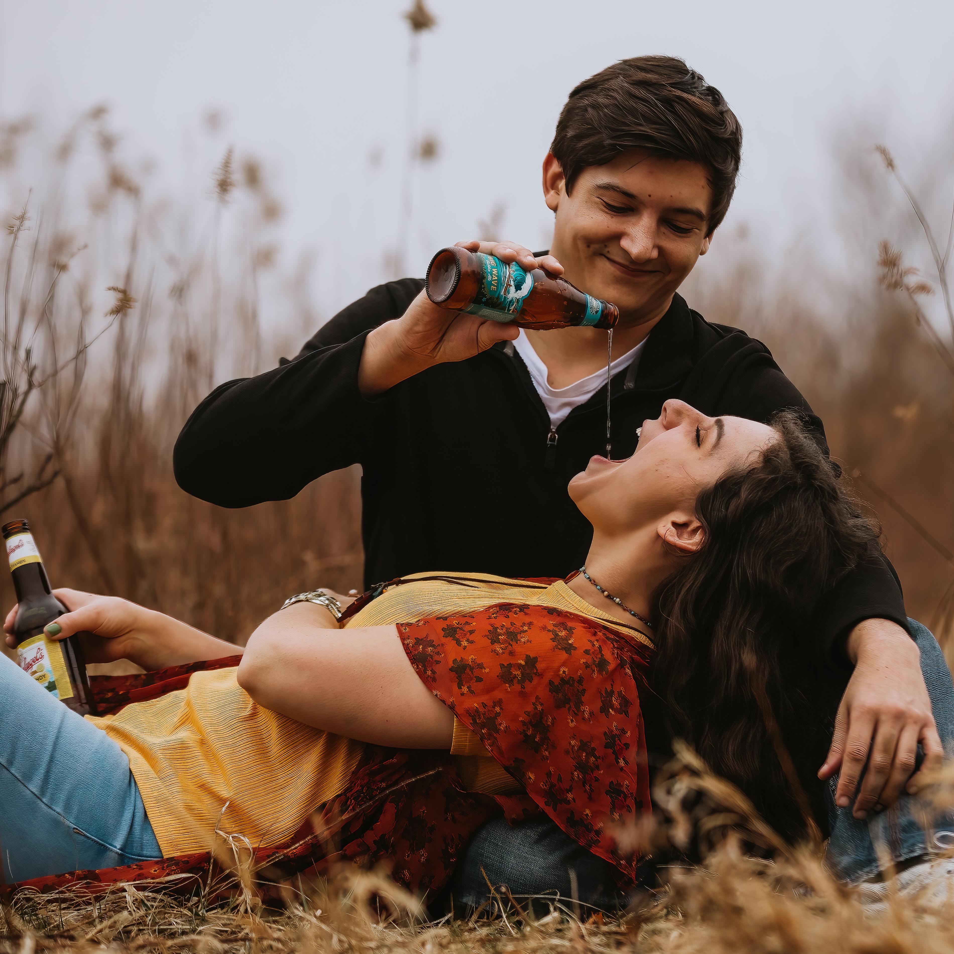 Our photographer, Shana, told me to jump on his back and pour the beer into his mouth...
