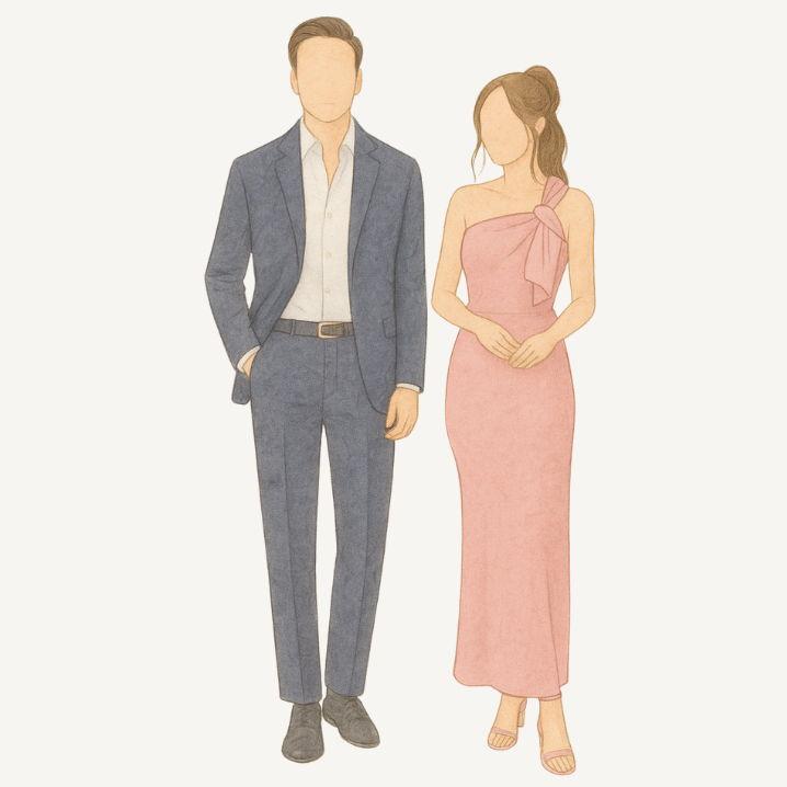 For women, we kindly ask that attire be elegant, such as maxi, midi, or sophisticated cocktail dresses. Soft spring tones such as pastels, apricot, mint, or teal are especially beautiful, and darker tones such as black and brown are also very welcome. Florals and patterns are welcome, but casual everyday styles should be avoided.