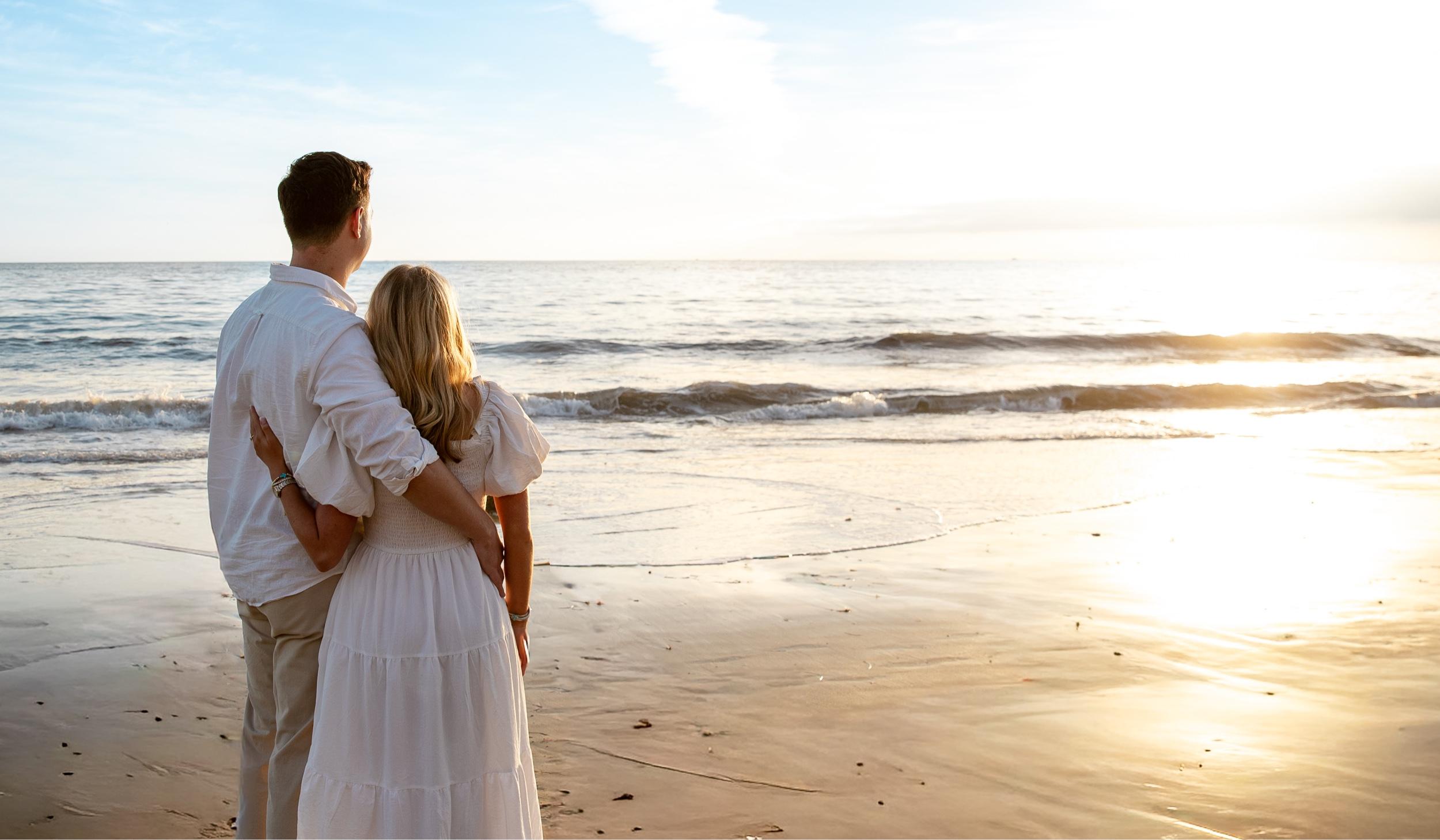 His I first met Sarah Rose in 2022 in San Clemente through mutual friends. We went out to dinner as a group and I remember thinking she was beautiful, kind and carried herself with a sweetness and maturity that stood out. At the time, we were in completely different seasons of life and other relationships, so the timing wasn’t right. Looking back now, I can see God was already weaving our paths together. Everything changed Memorial Day Weekend last year. It was the first time we saw each other while both single and something instantly clicked. Our first date was at Windansea Beach in La Jolla, where we sat on a rock for hours talking, laughing and getting knocked around by the waves. It felt effortless, like we’d known each other forever. Somewhere during that date, watching her laugh and smile on the beach, I knew I was going to marry her. From the start, our relationship felt aligned in all the ways that mattered. We share the same faith, values and vision for the future. Though we’ve been long distance our entire relationship, it’s only made me love and appreciate her more. Some of my favorite memories are the simplest ones—sitting on the Fergusons’ couch for hours talking about life, childhoods and dreams. The Fergusons’ house became especially meaningful to us. It’s where we had our first kiss, where I asked her to be my girlfriend and where we first said “I love you.” So when it came time to propose, I knew there was no better place. Surrounded by our closest friends and family, I asked her to marry me right where so many milestones had already happened. Even now, we make time every day to stay connected despite the distance. We fit together perfectly, always laughing, supporting one another and loving each other’s quirks. I’m most excited to build a family with her and a life rooted in faith, love and purpose. If our story were a movie, it would be a rom-com about two people who were always meant to end up together—they just had to wait for God’s timing. And now, that time is here. Hers Our story began 3 years ago in California during a visit to see my best friend and honorary sister, Shelby, who had just married one of Mike’s best friends from the Marines. What started as a simple trip quickly became the beginning of our forever story. From the start I always thought highly of Mike, even before anything romantic began I could just tell he was a good person. We stayed connected from afar through Shelby and her husband, Chris, unaware of what the Lord had planned. About a year ago, everything changed and we saw each other in a new way. Our first real date is one I’ll never forget—Mike gave me a stick-shift lesson in his Jeep (bold choice), followed by a spontaneous polar plunge at my favorite beach. We spent hours talking and laughing by the coast, and I realized I could fully be myself with him. When I flew home that trip I had a feeling like I forgot something, now I see I had left a piece of my heart with him. In November 2025, Mike proposed at the Fergusons’ house—the place where we shared our first kiss, first “I love you” and so many special moments. With help from Shelby, my mom and others, he planned a proposal that was sweet, simple and perfectly us. I was completely surprised and said yes without hesitation! My favorite part of being engaged is knowing we’re officially on the road to our forever. I’m most excited to share life’s little moments, grow in love and one day start a family together. After being long distance our entire relationship, I can’t wait to plant roots and build a life side by side. As we prepare for a day that will be timeless and romantic, we are deeply grateful for everyone who has loved and supported us. We can’t wait to celebrate this next chapter with you.
