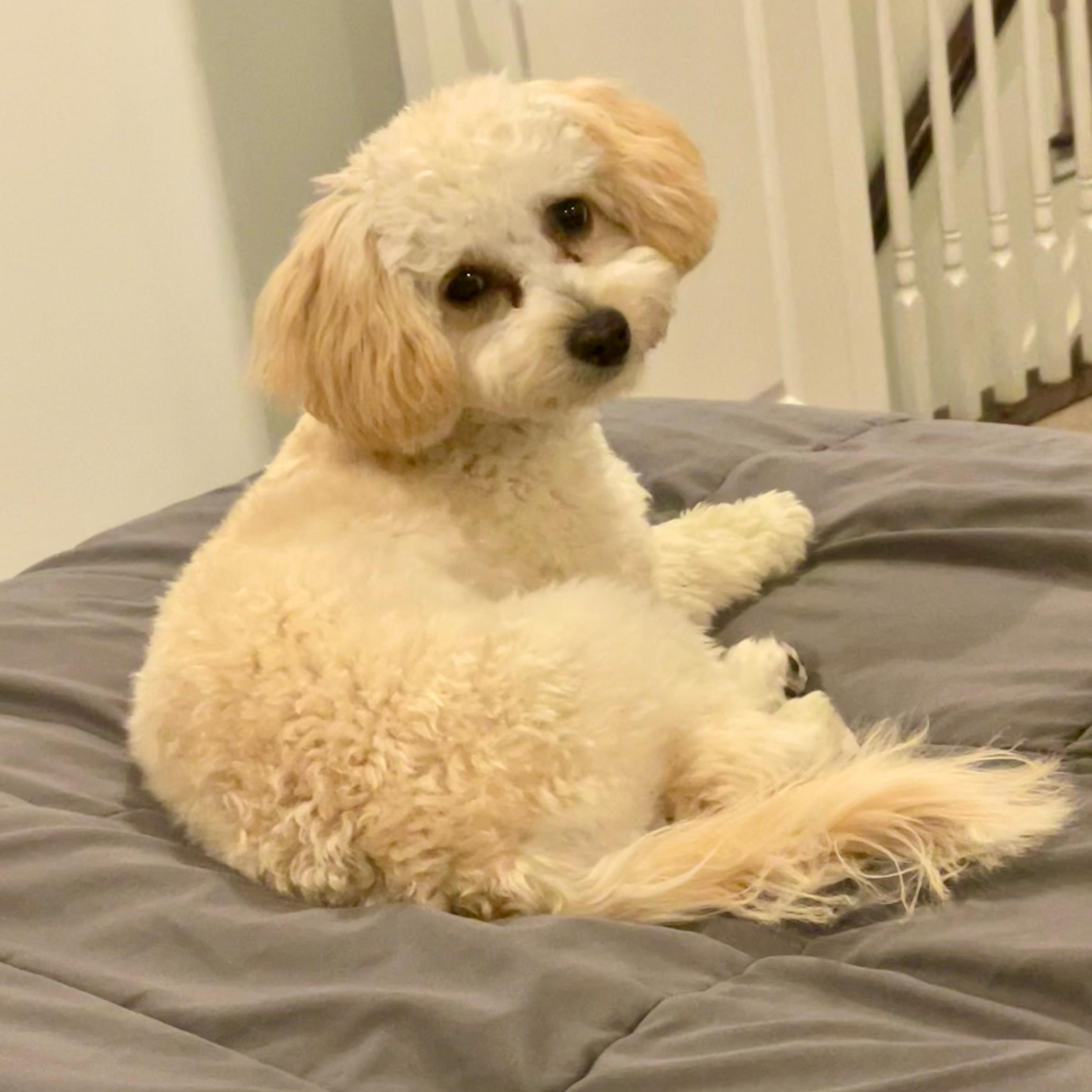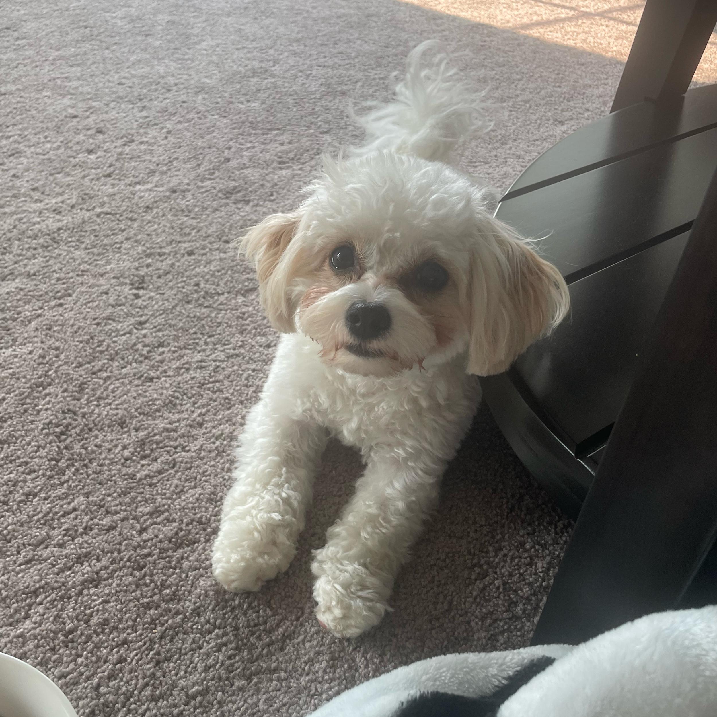 Mochi is mamas girl and the bestest dog. She makes everyone smile but is a little shy. We are just over a year old. Mochi is gentle, kind and patient, esp of her tail biting sister. Her favorite hobbies are her walks, chewing on her antlers, and playing ‘the food game’. Mochi sincerely dislikes the wet or cold and being yelled at. Her secret ability is to hold her pee when it is raining for extraordinary amounts of time. She lovessssss waking dada up in the middle of the night to pee by whining and smacking daddy’s face (she never wakes up her mama).