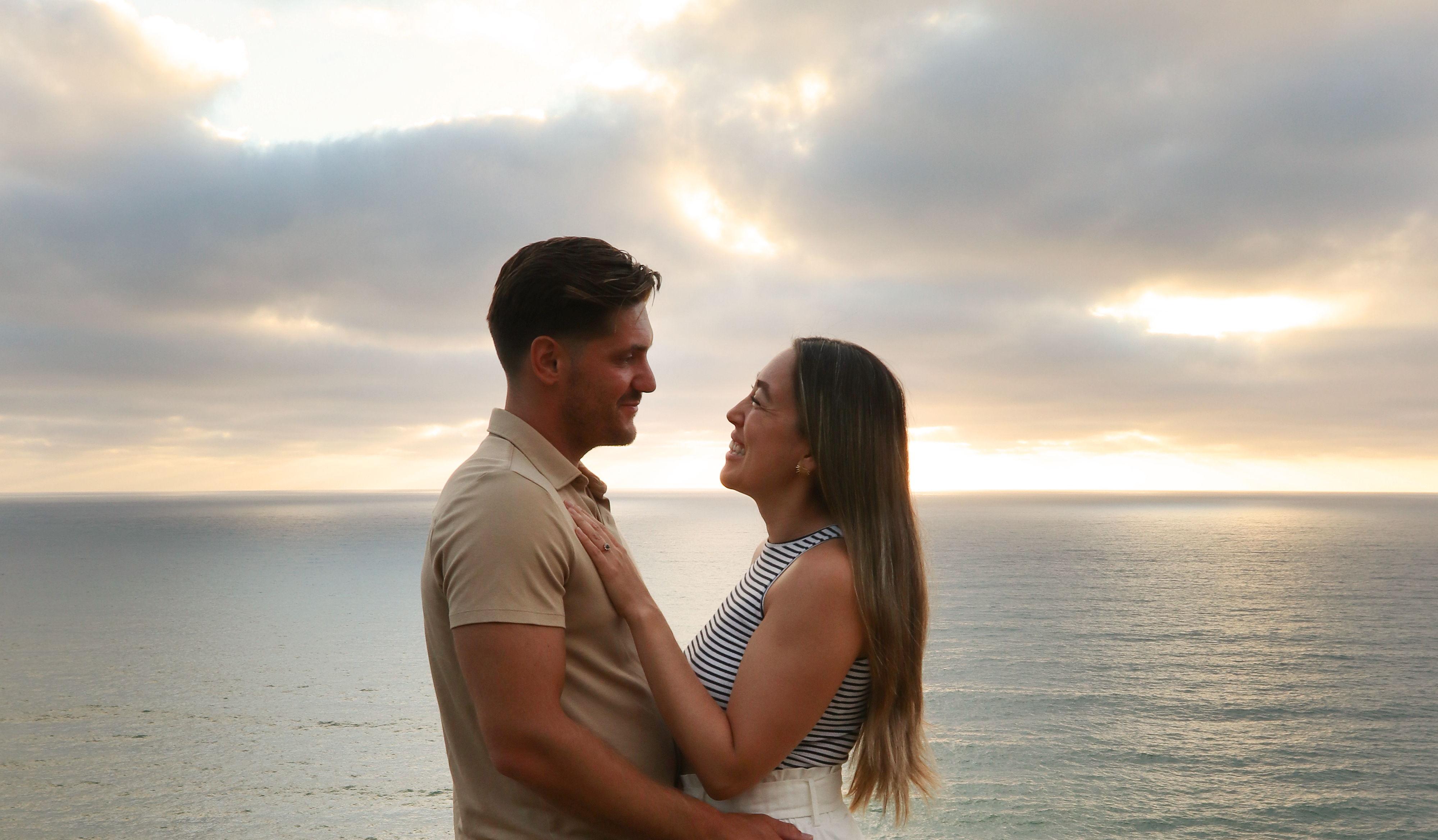 Levi and I met through my roommate and mutual friend. Levi would frequently come my house for dinners in 2021. In January 2022 we went to Ensenada, just the two of us and spent the whole day together. I started liking Levi during and after our Ensenada day trip, but did not want to bring it up or admit it. Over the next few months we kept hanging out as friends and getting to know each other, more on a one to one basis than in group hangouts as we commonly did previously. Fast forward to August 2022, I told Levi I liked him and asked if he was open to exploring more than just friendship. Levi listed off the pro's and con's of us dating and then asked me out on a date. Our first date was kind of awkward, going from friendship to dating over the course of a few days felt weird. After dinner we hung out more and decided to go on a second date, and the rest is history. The Proposal Levi lives near beautiful hill top views of Coronado, Tijuana, and downtown San Diego; and there is a short hike you can do around the hilltop. We hiked up and around his house one day in April. I thought Levi was acting strange as we hiked up the hill. I asked him "are you ok?" He said "I'm excited..." I asked, "for what?" in confusion. I hugged him, then he got down on knee and said "I'm excited to spend the rest of my life with you! Will you marry me?" I immediately said “Yes!" Then we went to Coronado, one of our favorite places to go on dates, and had a celebration dinner together.