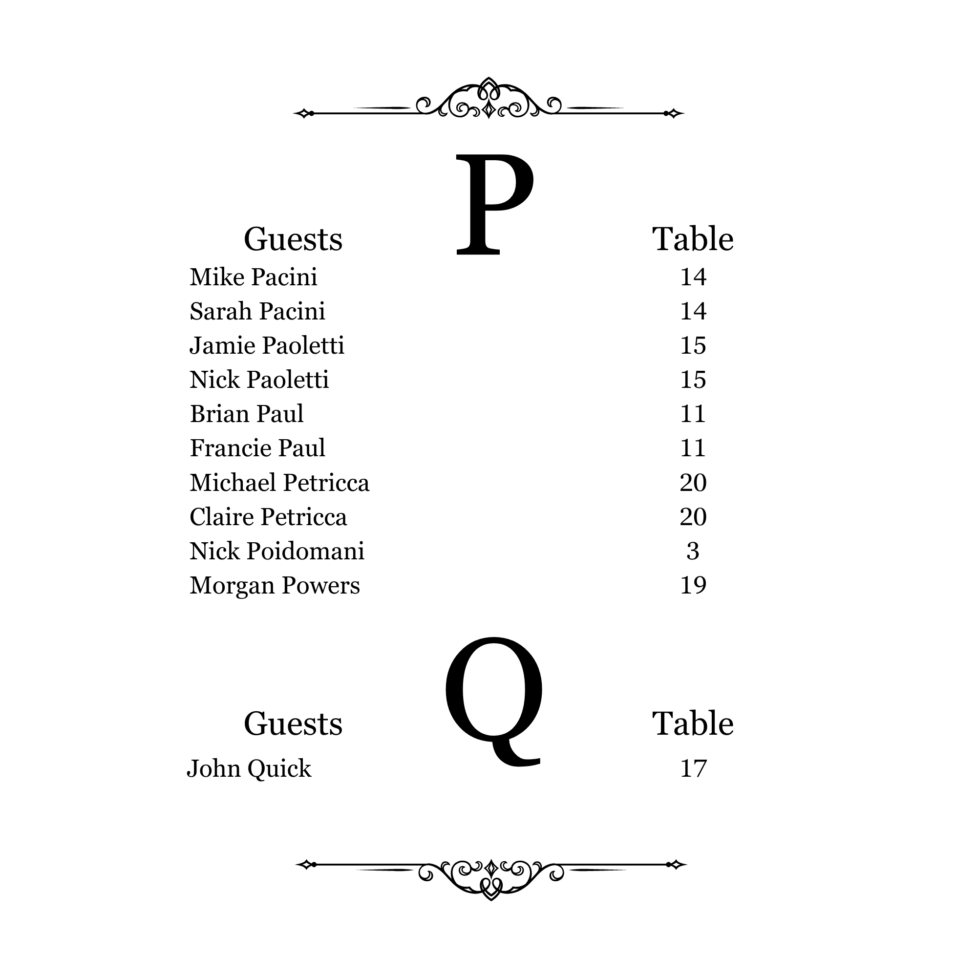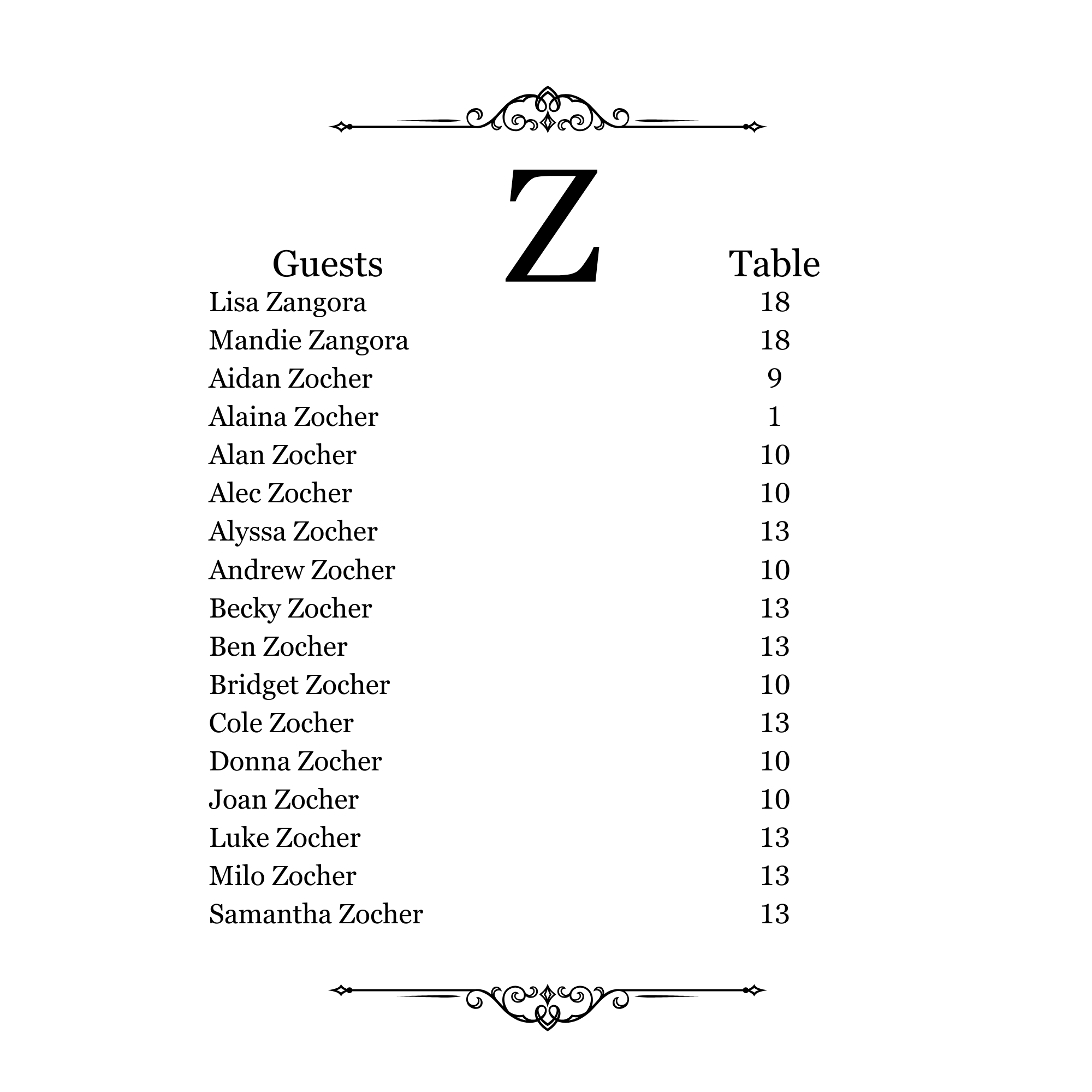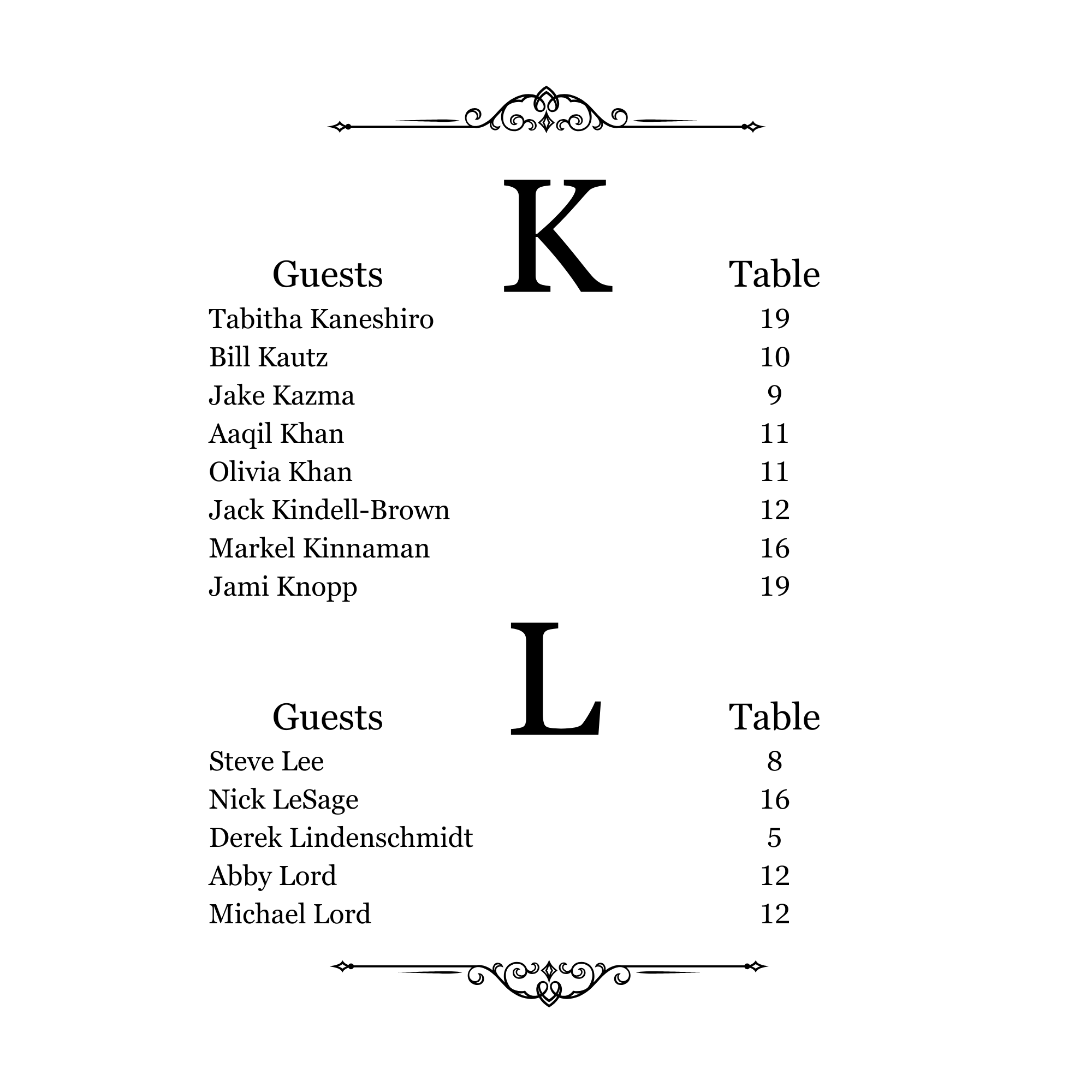 Seating Chart