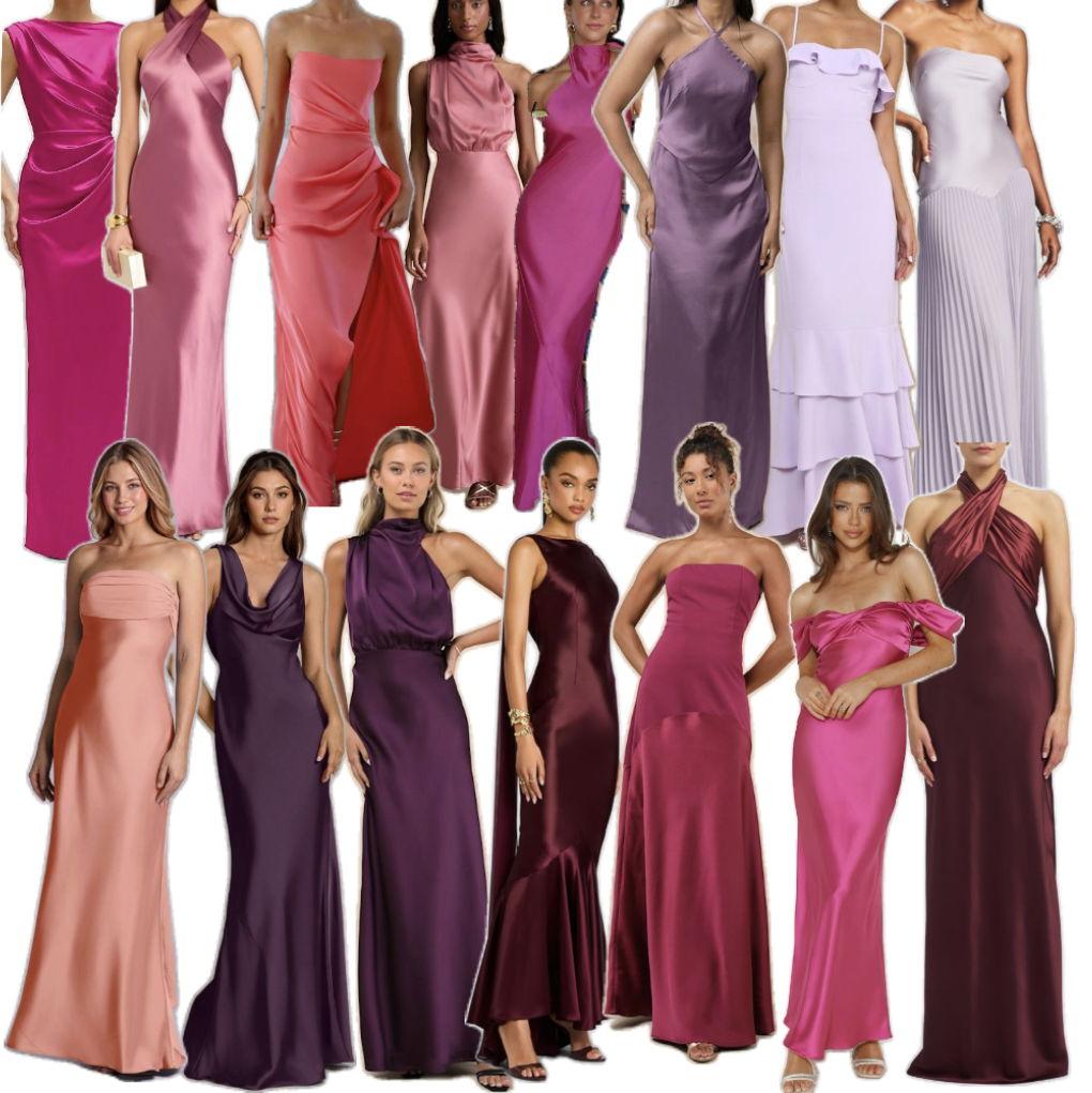 Women should wear a floor-length gown in a spring color. Please avoid patterns and light pink, as our bridesmaids will be in that shade. We can’t wait to see you looking your best!