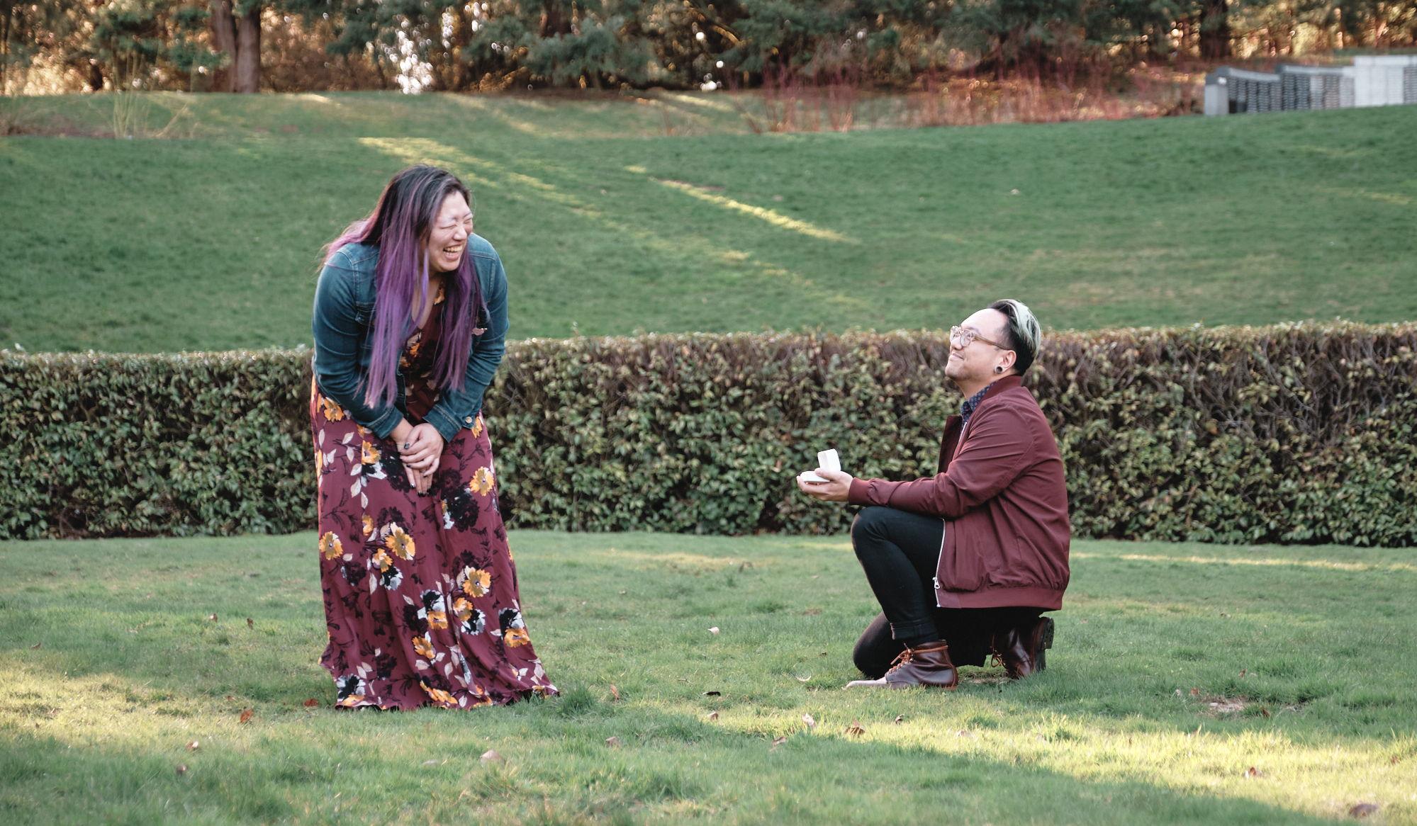 It all started with Erwin. As Bernie’s coworker and Jordan’s best friend, Erwin saw an opportunity when they both happened to be single. He tried to set them up—without telling them—but Bernie and Jordan didn’t think much of it. Instead, the three became close friends, spending years drinking coffee, going on photoshoots, and having late-night car talks. Over time, something shifted. What started as friendship naturally grew into something more. When they finally admitted their feelings, it just made sense. Being together felt easy—like it had been the right answer all along. Soon after, Bernie and Jordan moved to Portland, OR, adopted two cats named Basil and Panda, and built a life together.