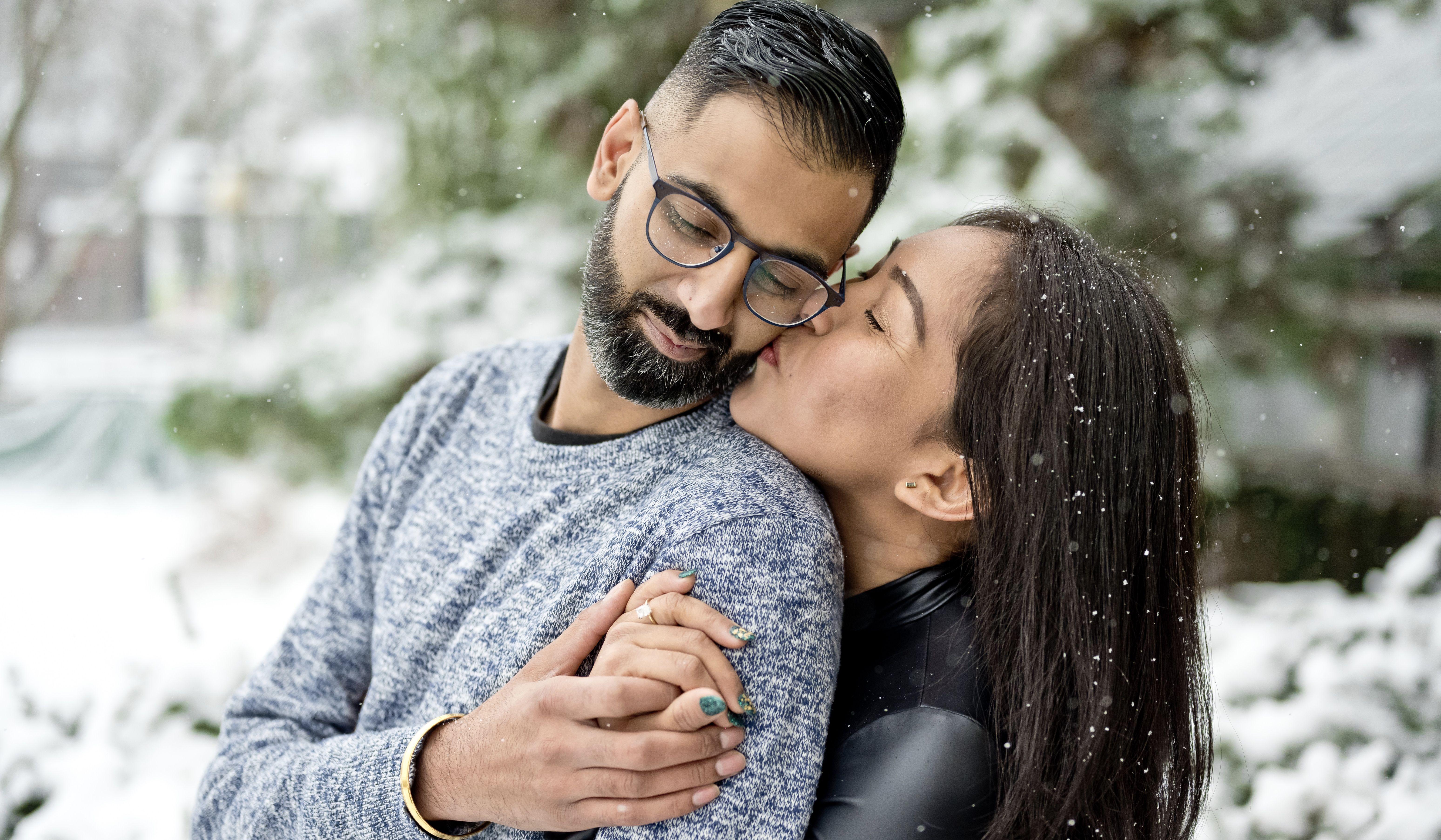 Vianca and Ravi were on their way to Canada to spend Christmas break with Ravi's family. A couple days after arriving Ravi took Vianca to get her nails done and told her they would be having a fancy date; which is one of their favorite dates. The day came, and they both got ready for their fancy date; even though it started snowing, Ravi headed to Botanical Garden in Toronto. When they got to the park, both had difficulties finding the entrance door. One of the employees was generous to let them in and check in from one of the side doors. While Ravi and Vianca headed to the main entrance, the gentleman who let them in from one of the side doors approached Ravi and asked him, "Is that your professional photographer?" Ravi looked confused and said "No", while Vianca still didn't have a clue because in her mind if she had a fancy camera, she would be taking pictures of plants as well. They started their walk to the botanical garden and saw the different plants in the greenhouse. Then Ravi said, "Vianca," she turned around, and Ravi was on one knee and popped the question she has been waiting to be asked, "Will you marry me?" Without a moment of hesitation, Vianca said YES, of course!!!! After Vianca said yes, the gentlemen who let them inside the botanical garden from one of the side entrance doors approached them and the photographer and said, "You lied to me; that is your photographer. You know what? I'm giving you five minutes to take pictures, and then you must leave from where I let you in." Ravi and the photographer explained to the guy that Ravi was going to propose, and he didn't want to ruin the proposal by saying earlier that the photographer was there for Ravi. After taking their pictures for 5 minutes, they enjoyed the snow and took many more photos outside the Botanical Garden. Later Ravi and Vianca went home, where Harpreet; Ravi's sister, had planned a celebration with their close family and friends to celebrate their engagement.