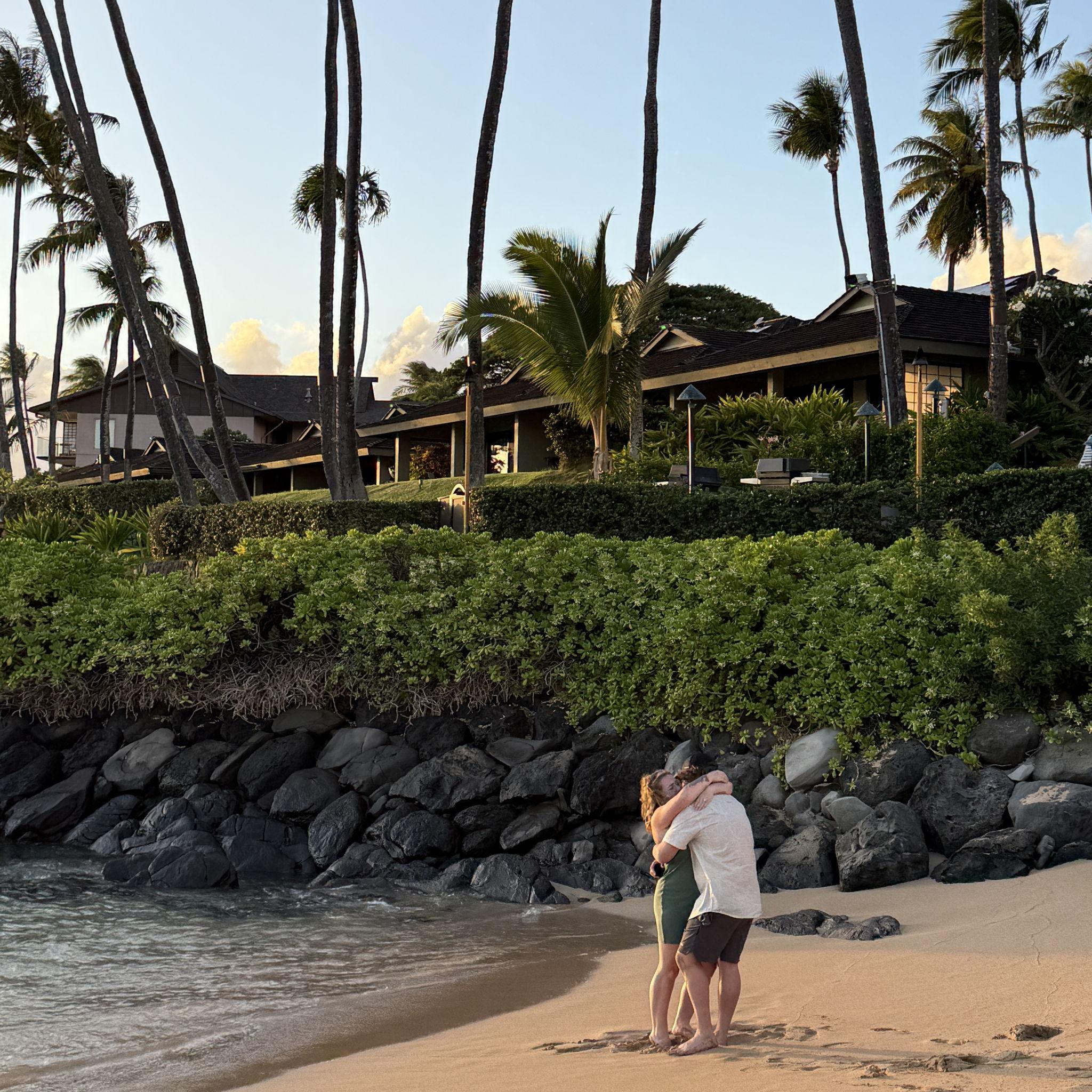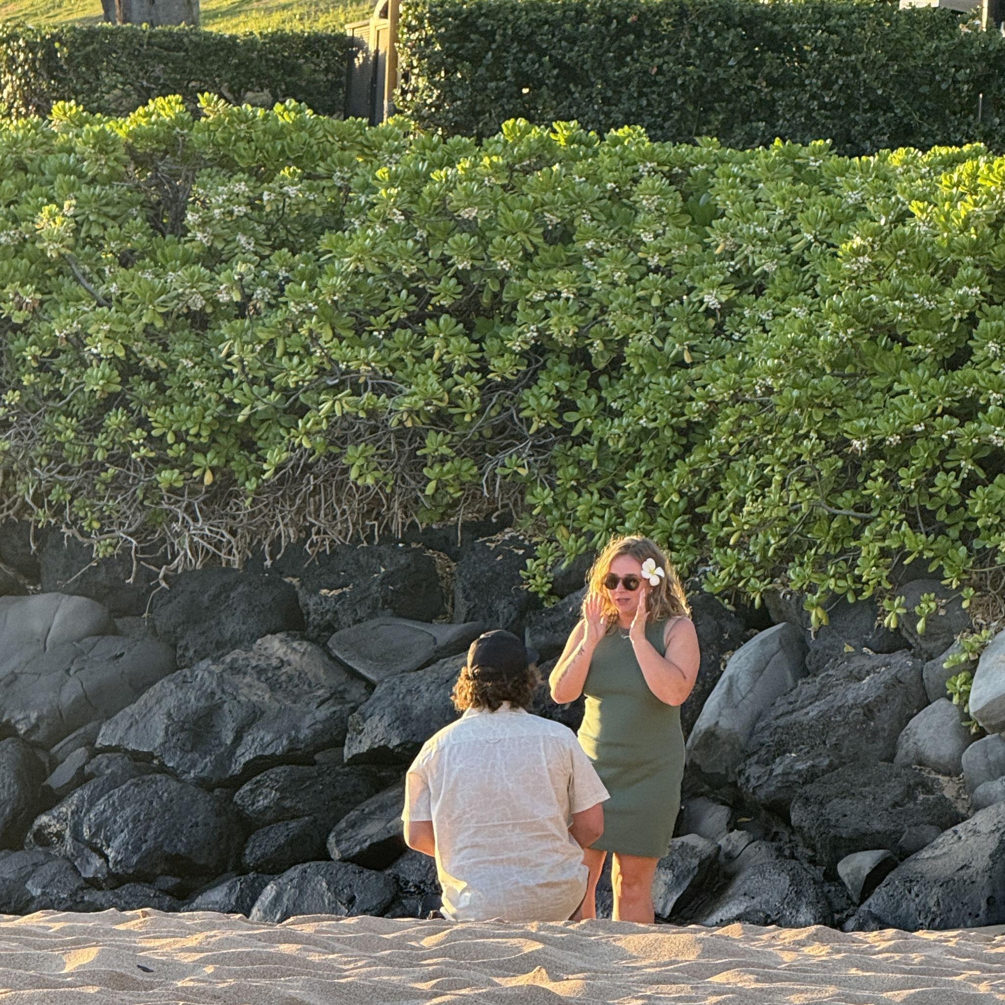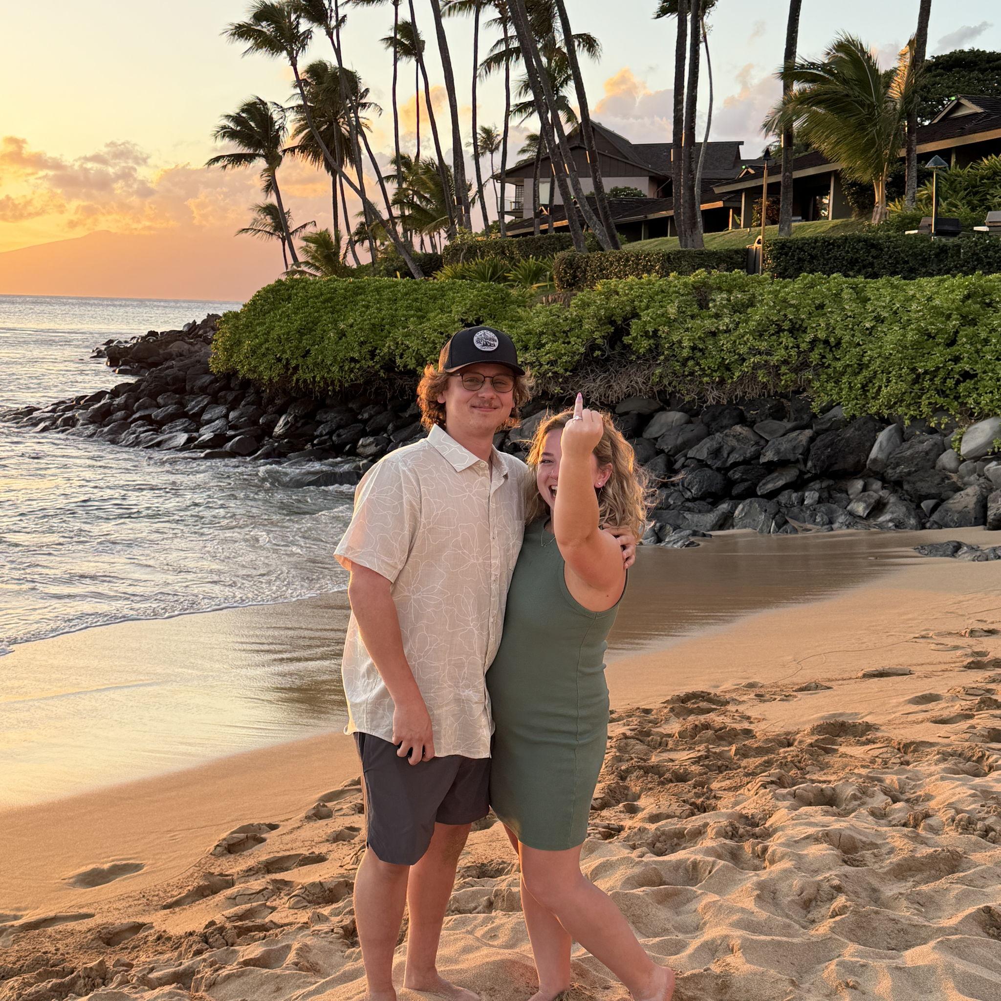 Spencer proposed to Liz in Maui, Hawaii. They were surrounded by family, it was the perfect proposal.