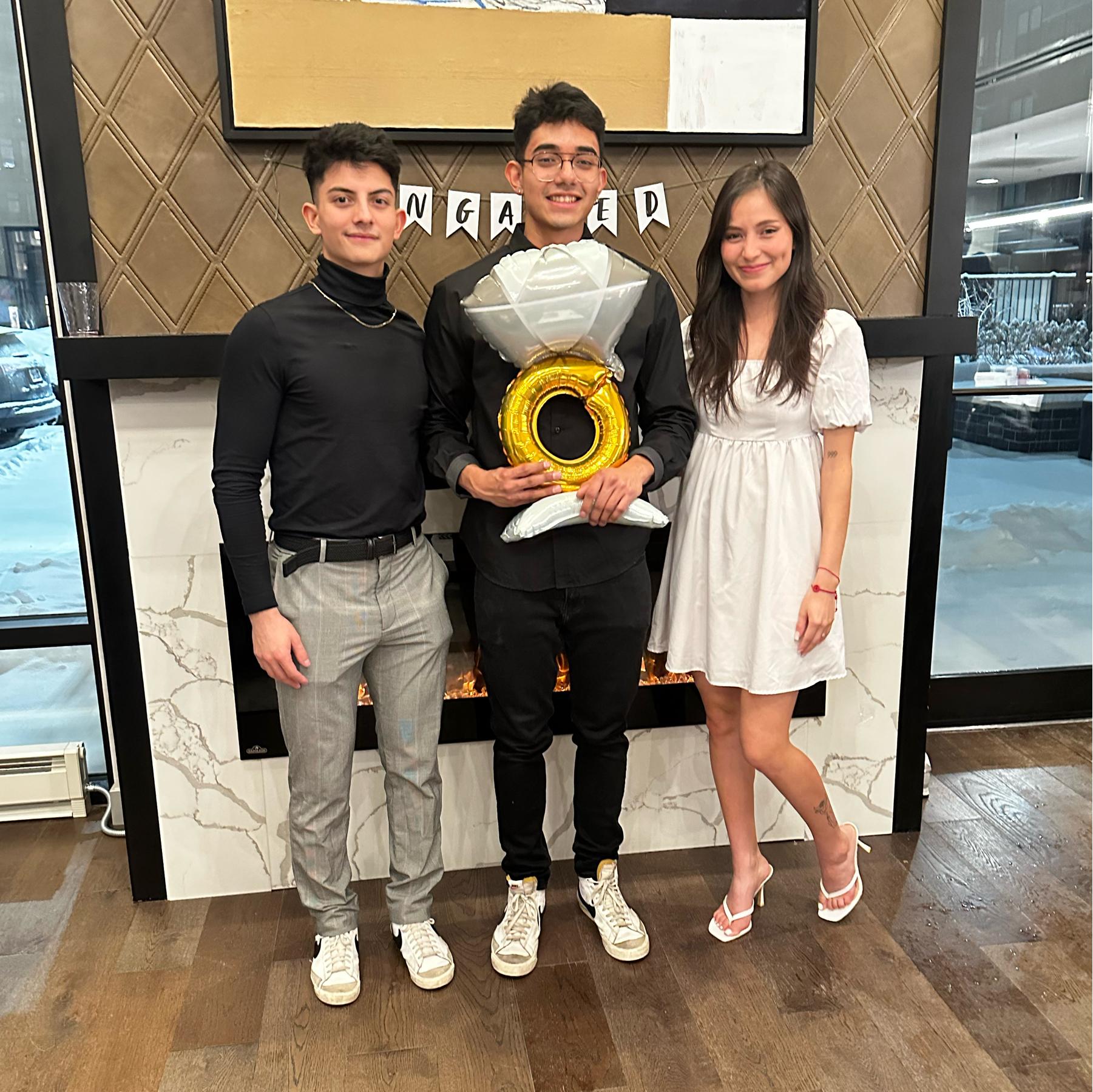 “It all began with my favorite number, nine. In the beginning of the summer of 2021, I had decided I would get a tattoo of my favorite number in angel number style, “999”. For me this means seeing the good in the bad, since 999 upside down 666. So, I did, in August 7th after playing a big beach volleyball tournament I went to get my tattoo. Little did I know what would happen the following day. In August 8th, a friend invited me to sub for his league. We played two matches that day and the second one was the one that changed my life. While we were playing I noticed a tattoo on one of the guys from the other team, “999”. My team won the match and after it I decided I would go up to this guy since we both had the same tattoo, and ask what those numbers meant to him. “Seeing the good in the bad” he said. I showed him my tattoo and explained it also meant that to me and that I had gotten it the day before. We both were surprised. After that I was invited to another gym to play volleyball and when I walked in, there he was. The “999” guy from the league. We played and I won’t lie, I flirted a little bit. I noticed Emily already knew him so I convinced her to invite him to an open gym Mandy and I ran on Tuesdays. We then began to hang out and talked until I eventually asked him to go to a Friendsgiving with me. The rest is history lol.”