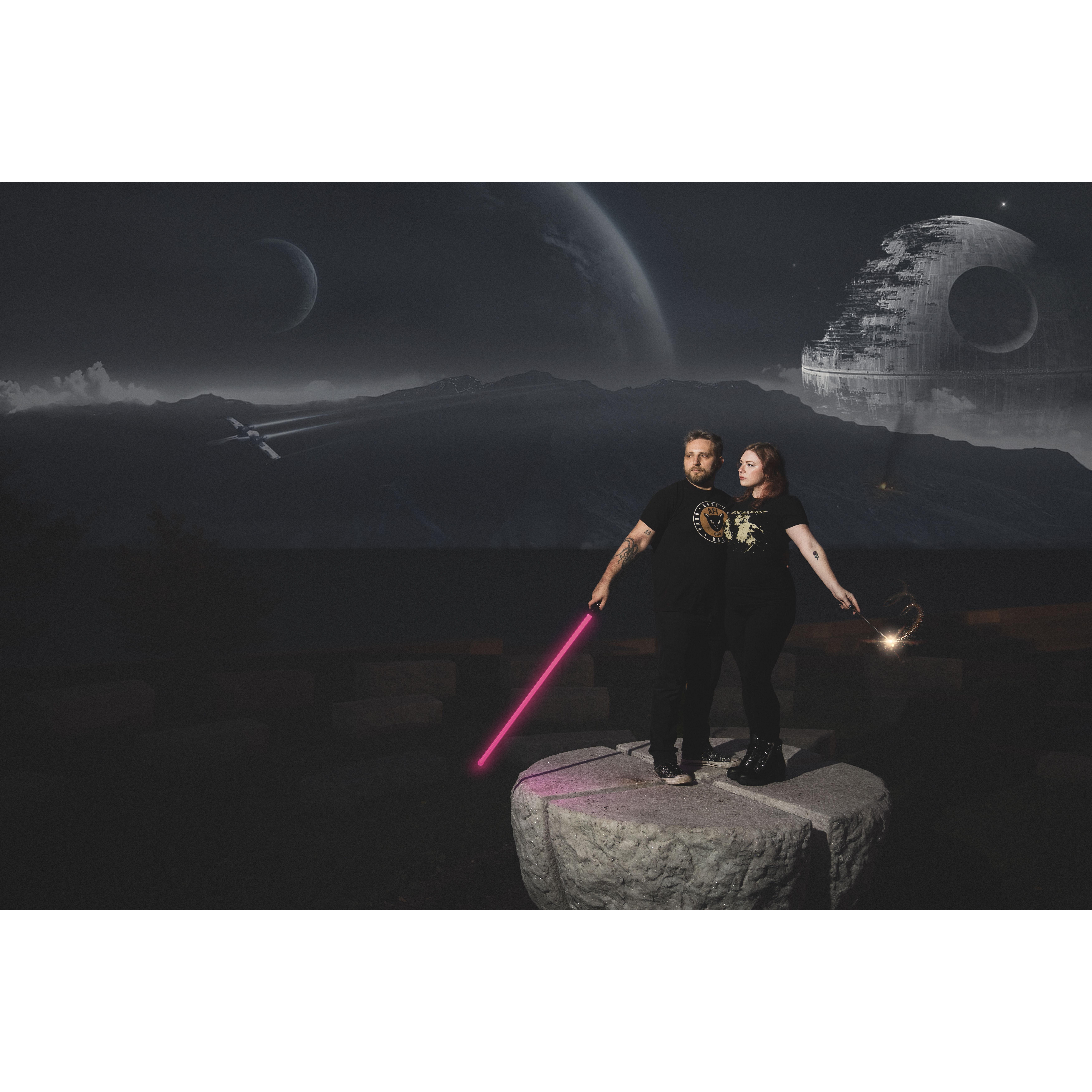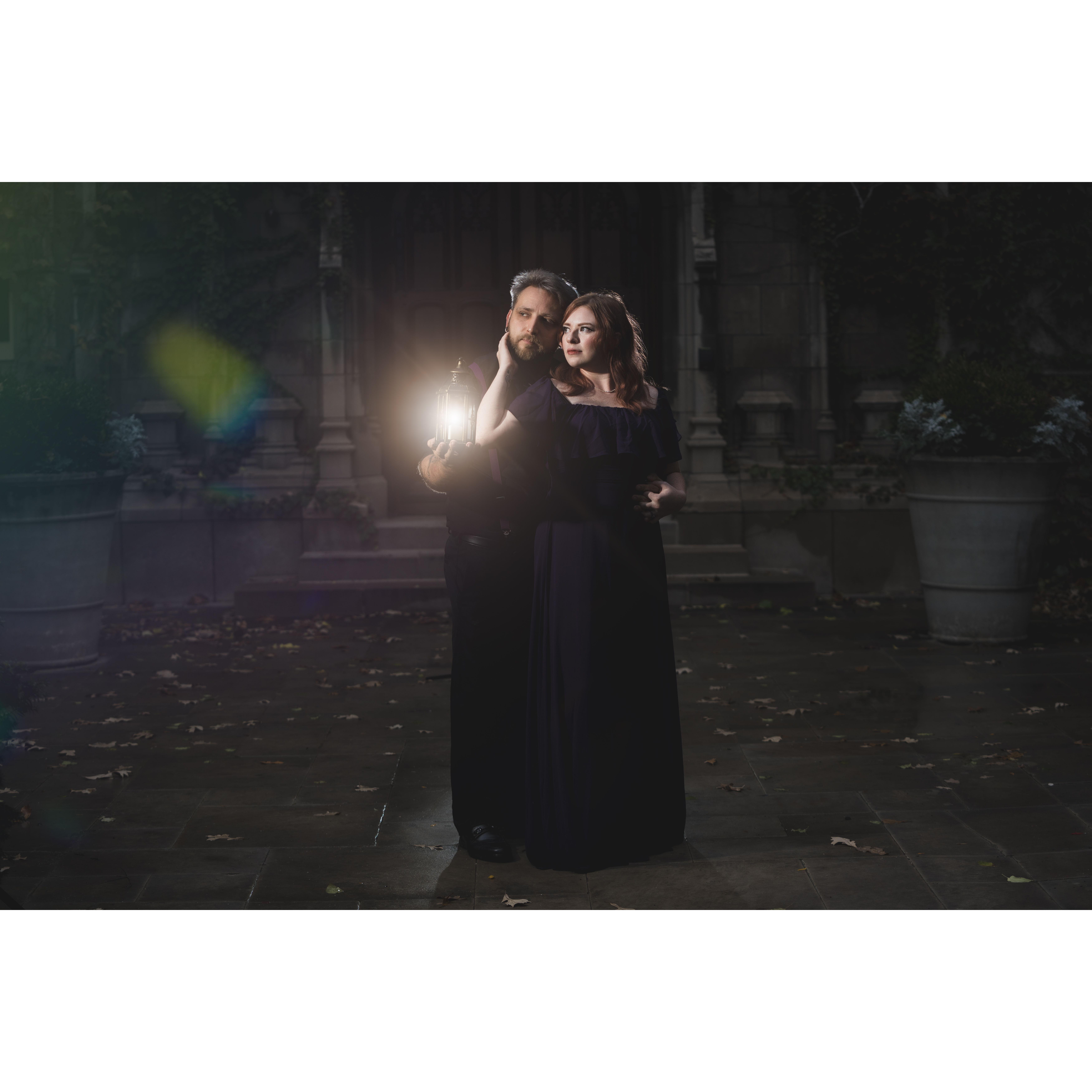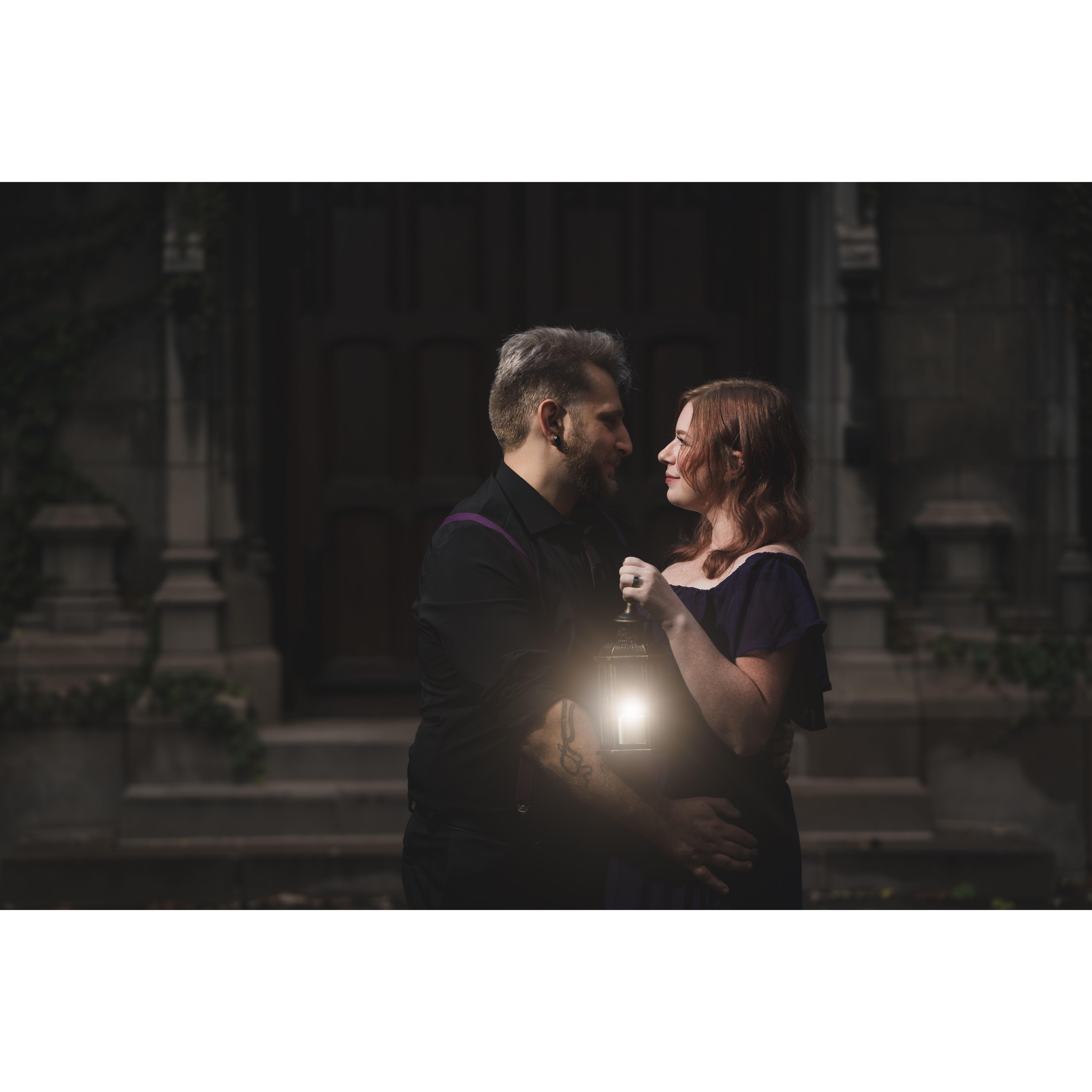 Our 10th anniversary was approaching, and we had planned on doing a staycation to celebrate. Lisa’s favorite band, Rise Against was playing at the Metro on Saturday. We would go to C2E2 on Sunday. We booked a nice hotel in the loop, and planned on just giving ourselves a nice little weekend. That Saturday was cold and rainy, but we didn’t let that stop us. We spent most of the day walking around the city seeing the sights and taking pictures together. That night we went to the Metro. Nick had made arrangements with the photographer shooting the show that night. In front of the venue the photographer asked for a photo of us in front of the marquee. Nick dropped to one knee and popped the question. Lisa said yes and the crowd cheered!