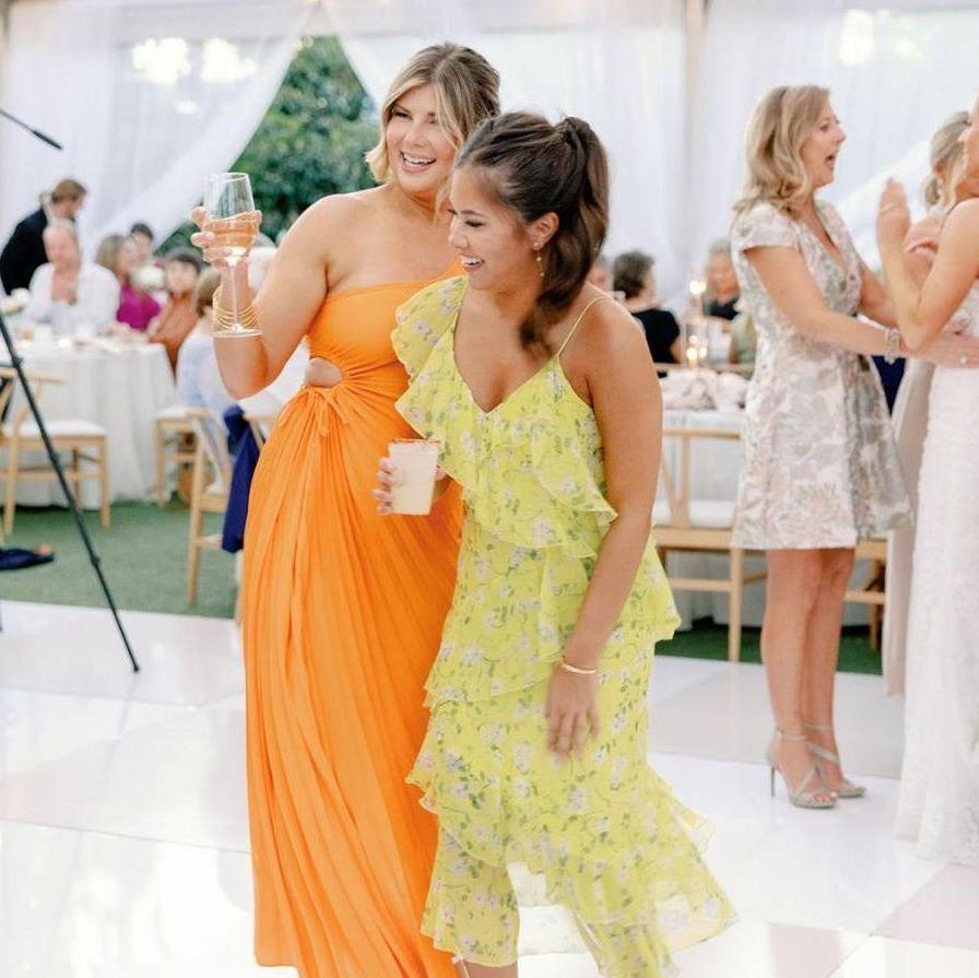 For the ladies, think midi to floor-length dresses in vibrant, seasonal colors. We kindly ask that you avoid wearing white and light neutrals.