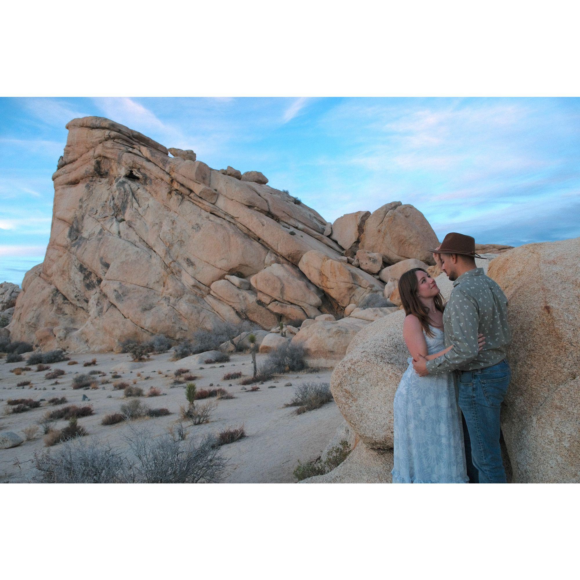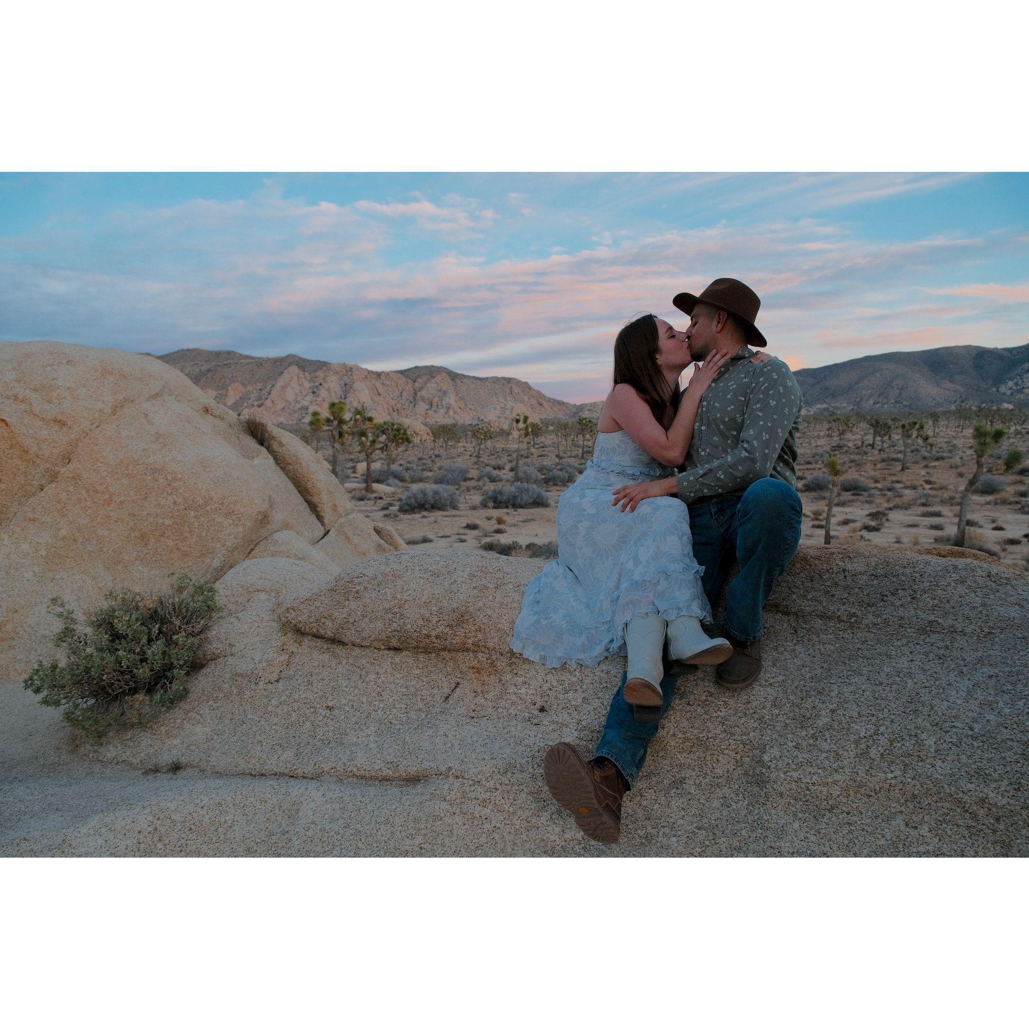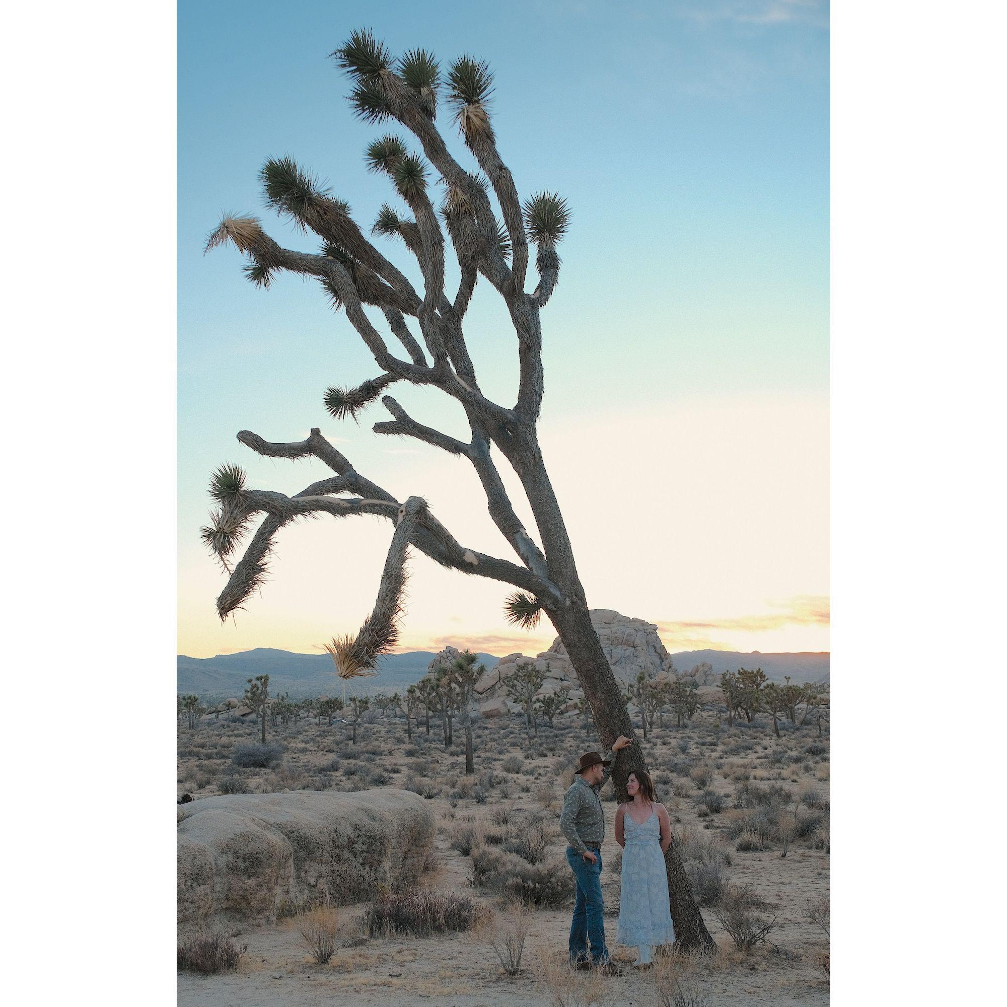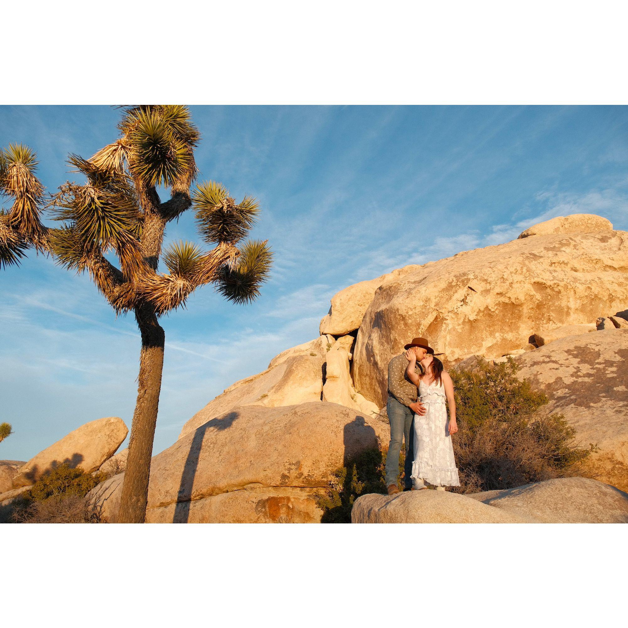 Fotos de un paseo elegante al atardecer en el Parque Nacional Joshua Tree. ¡Gracias a nuestro amigo, Ian Murphy, por hacernos lucir tan bien!