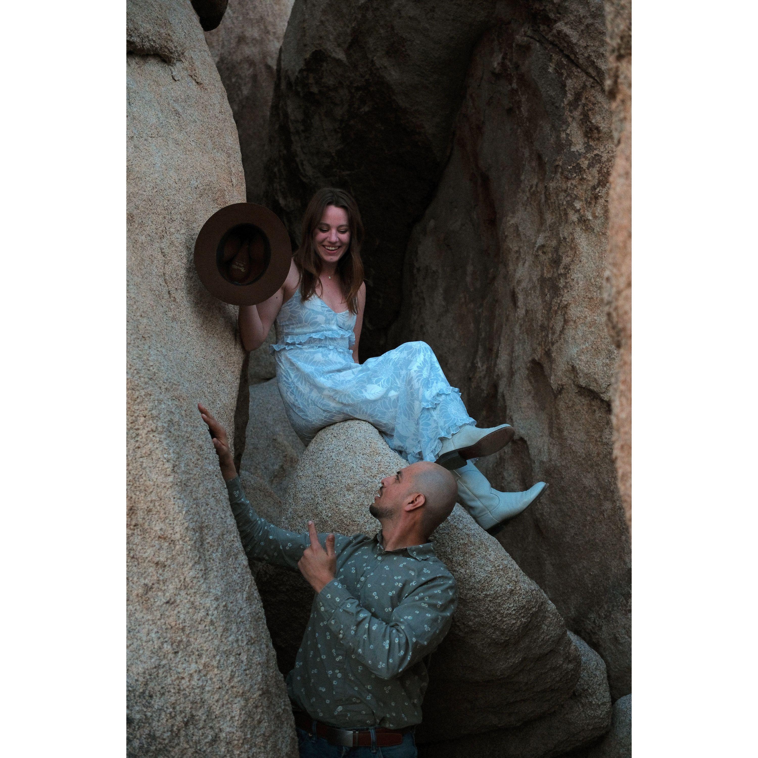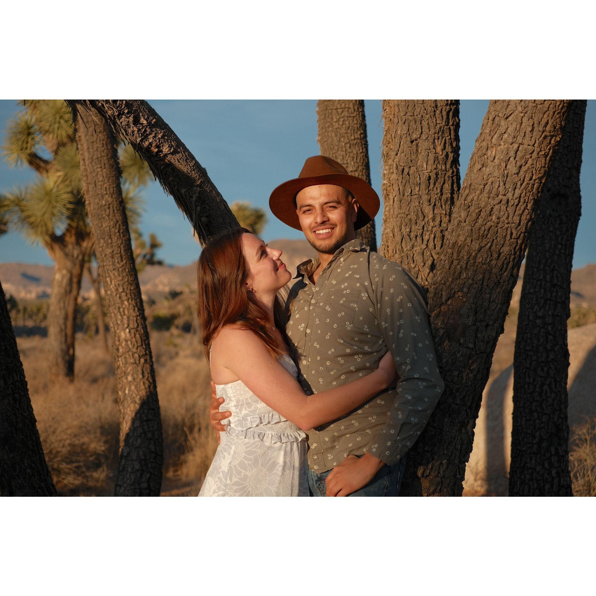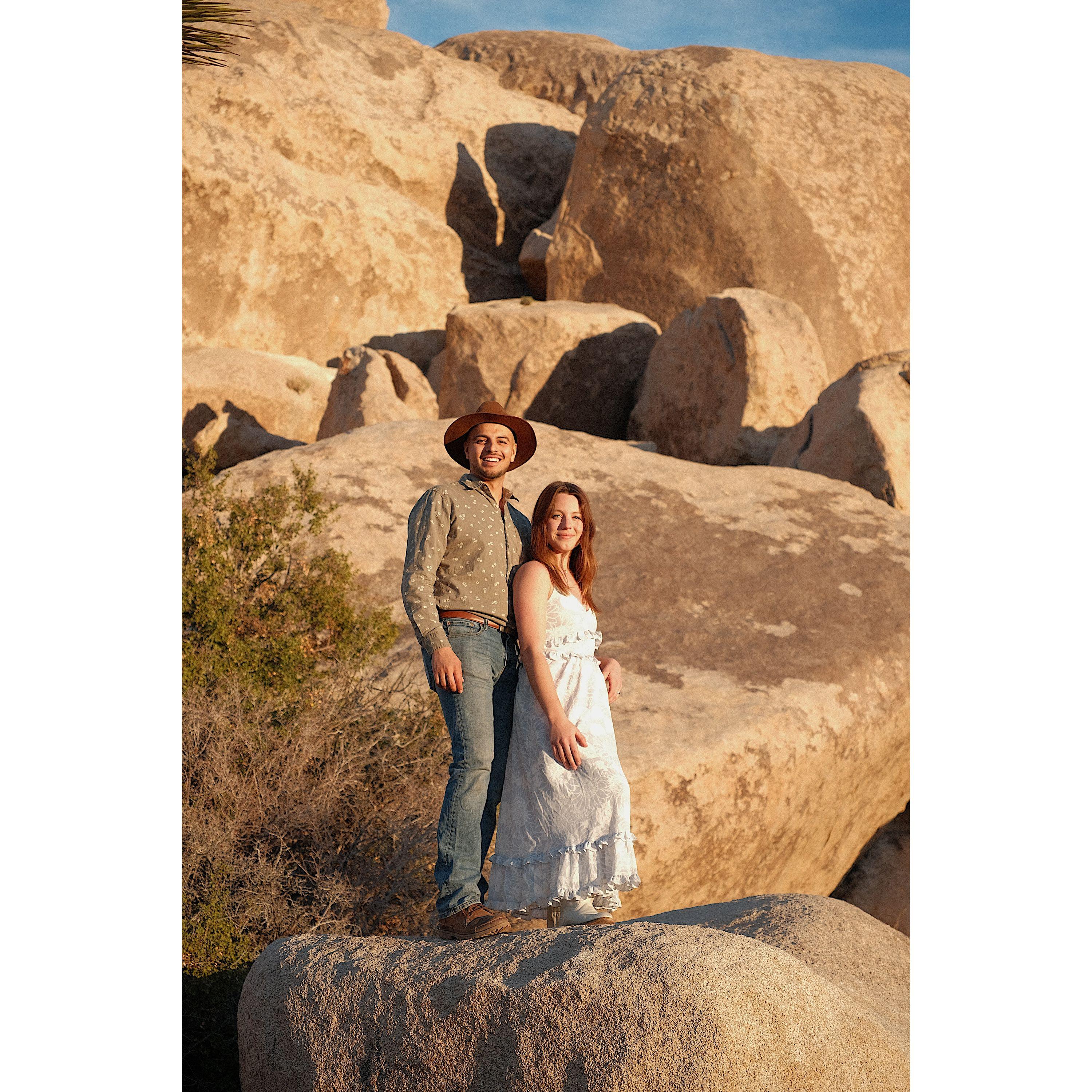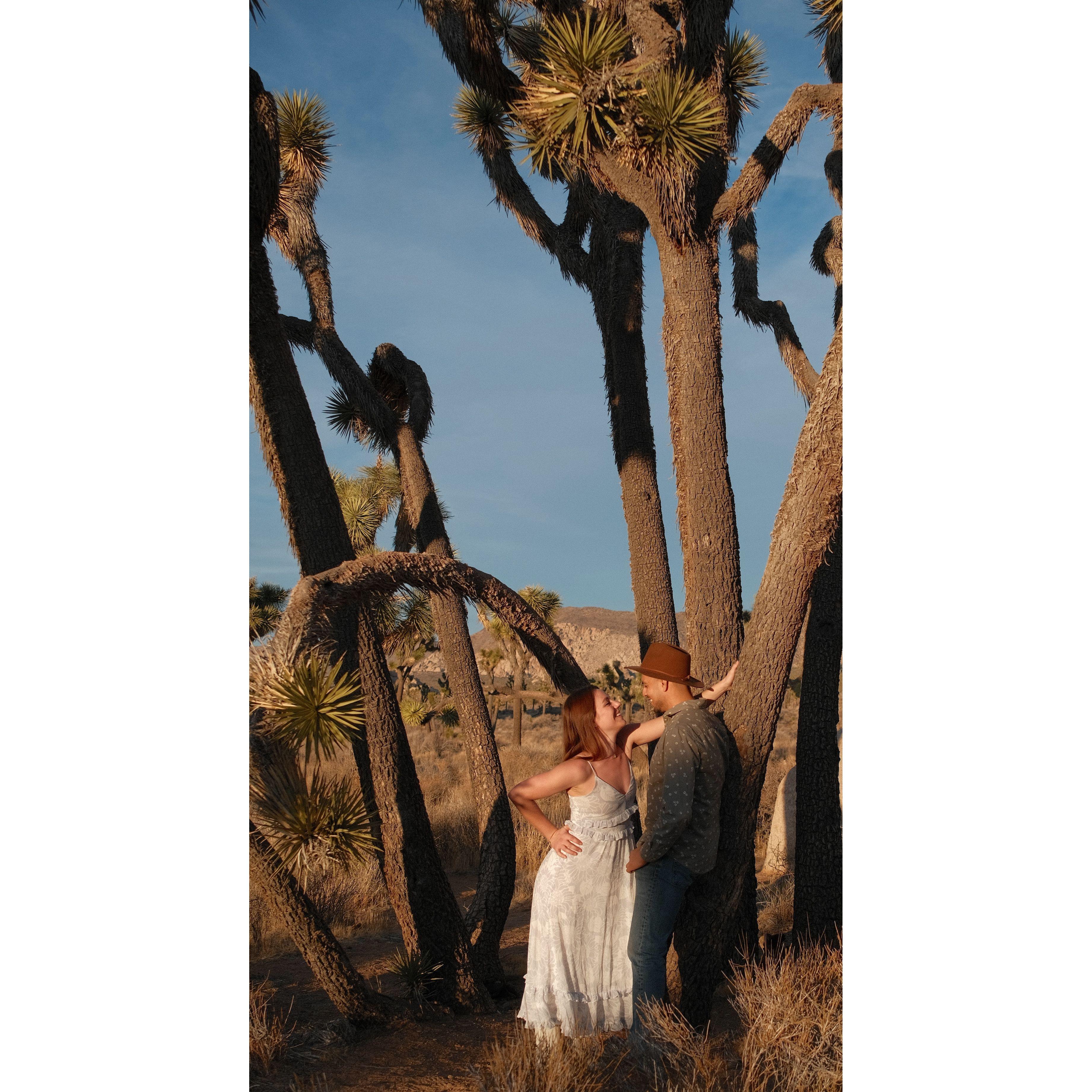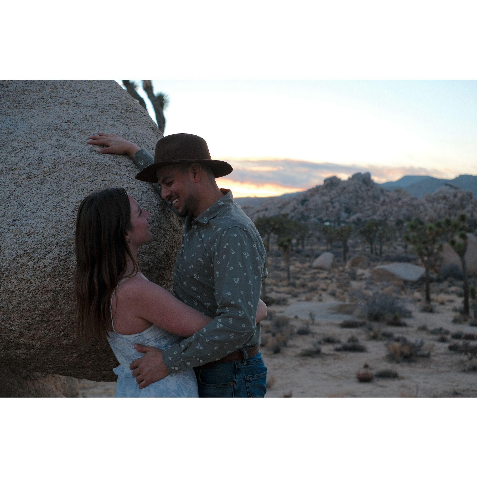 Fotos de un paseo elegante al atardecer en el Parque Nacional Joshua Tree. ¡Gracias a nuestro amigo, Ian Murphy, por hacernos lucir tan bien!