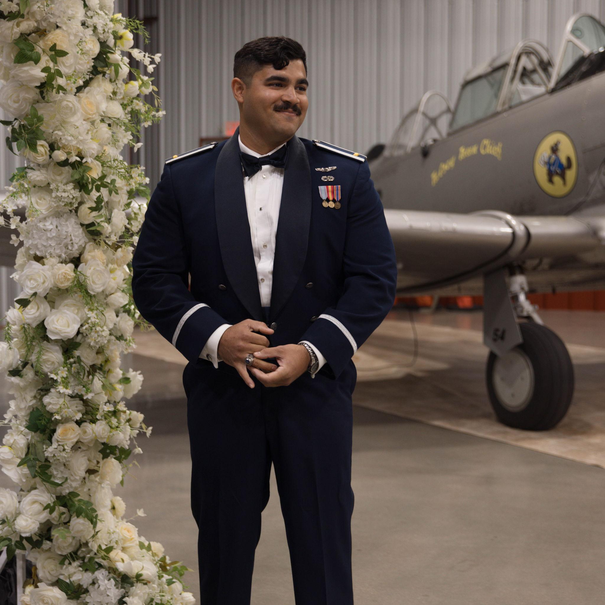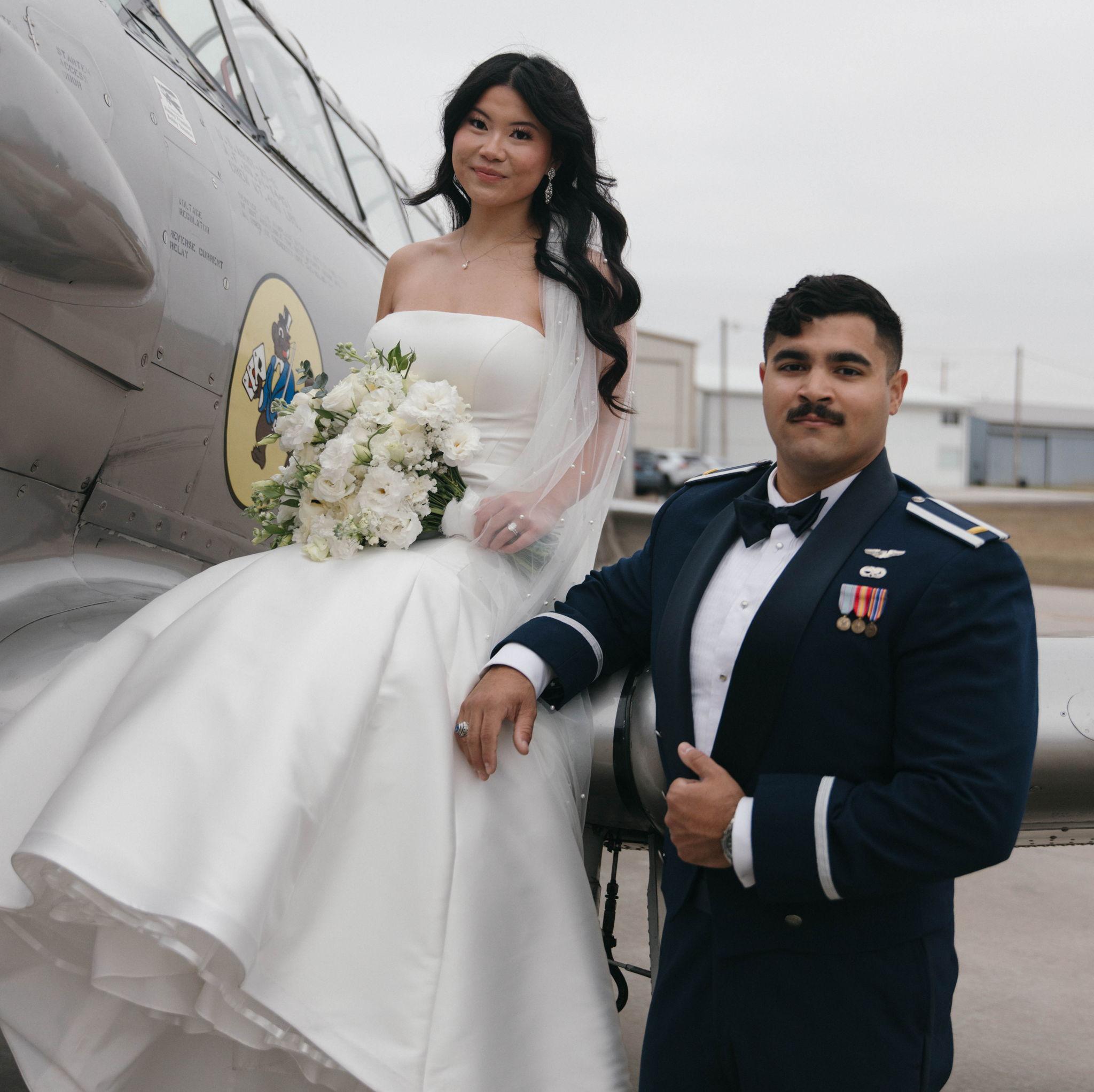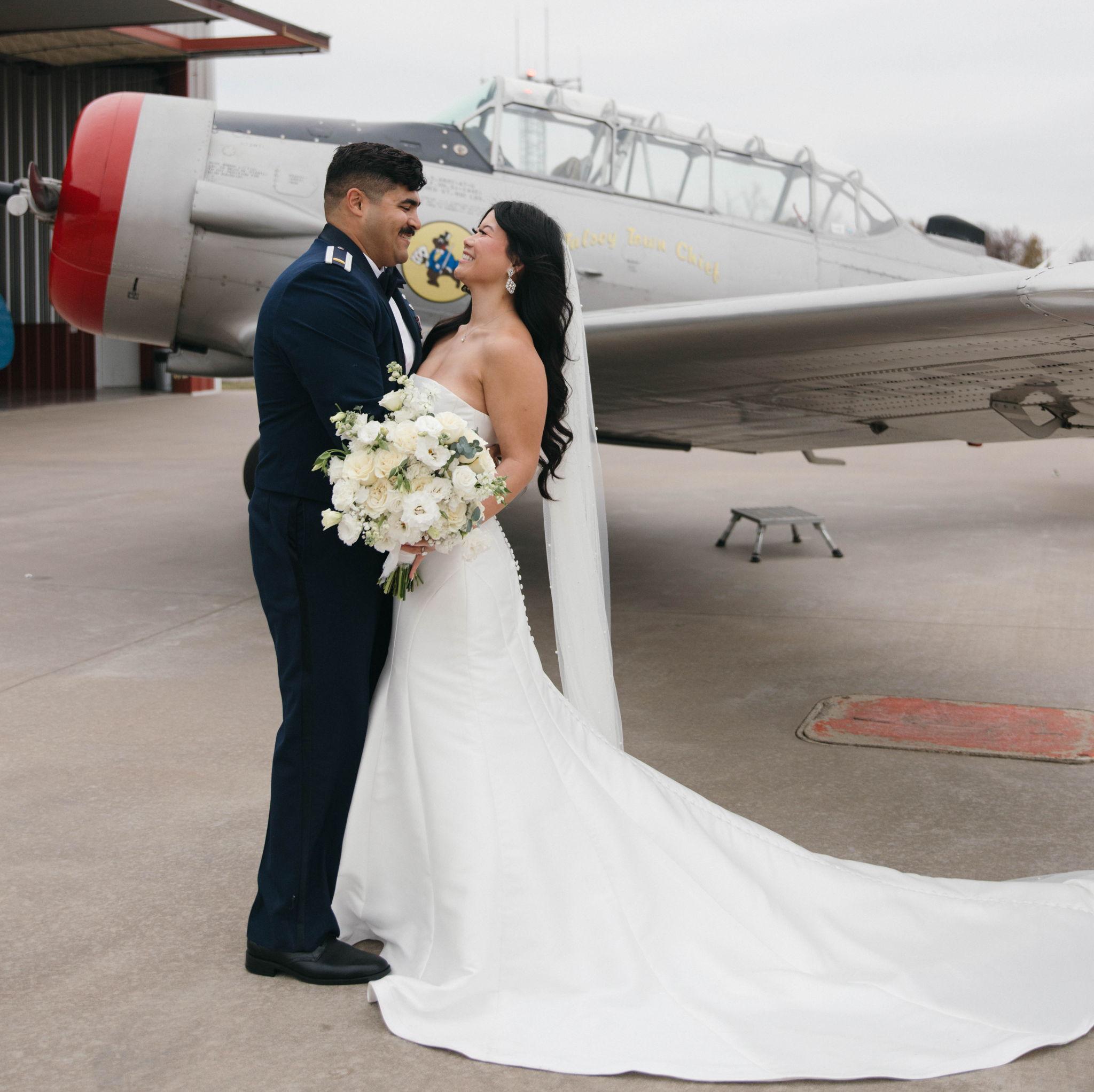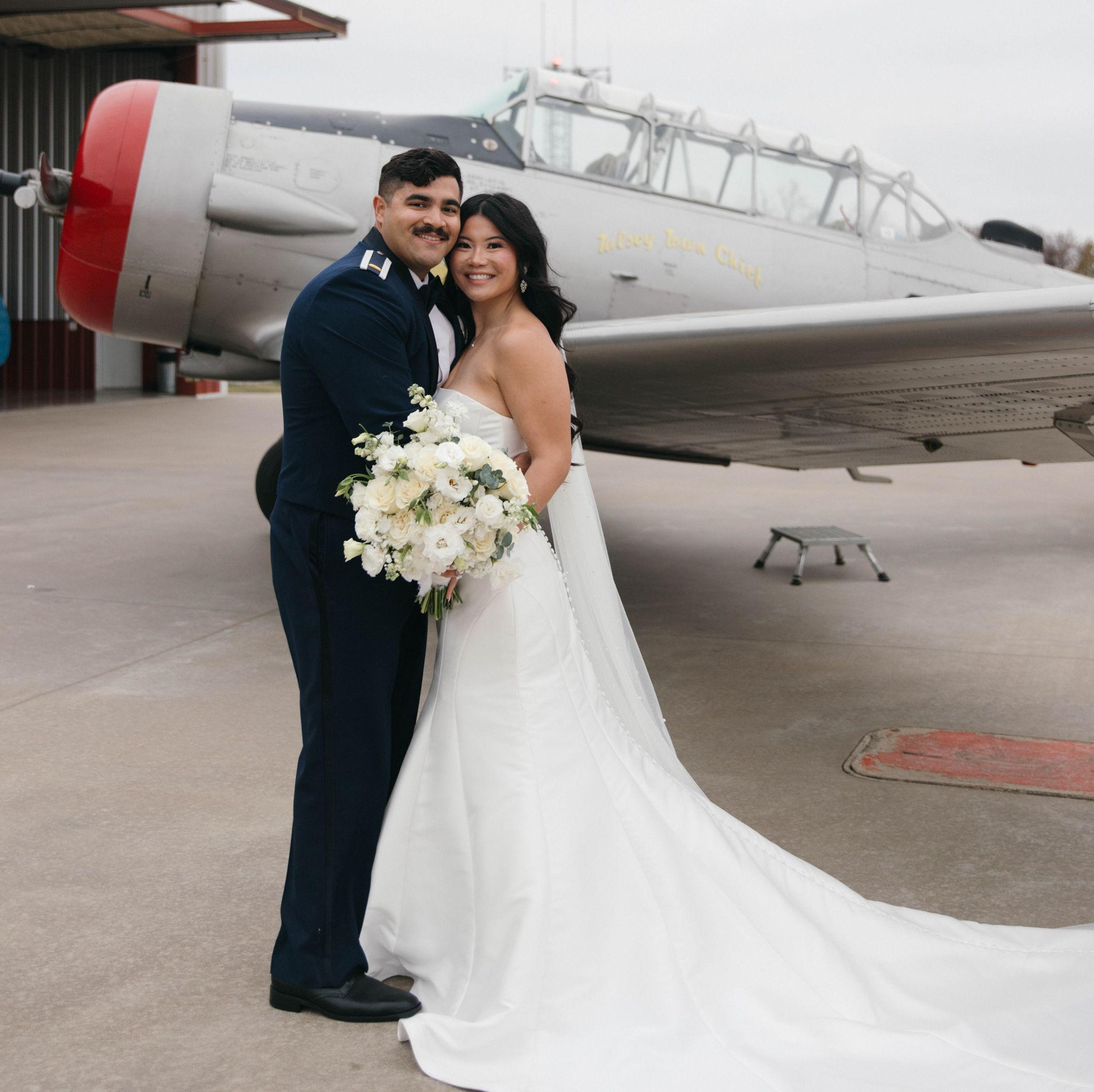 On 11/22/2025, we said ‘I do’ in front of our parents, grandparents, and godparents on our anniversary. We got married inside the airplane hangar where Addison took his very first flight. It was such a special moment in the middle of a busy season as we get ready for Addison’s next assignment and the start of our next chapter together. Now we’re ready to celebrate with all of our family and friends! We feel so blessed to have each of you in our lives, and we can’t wait to share this celebration with our favorite people.