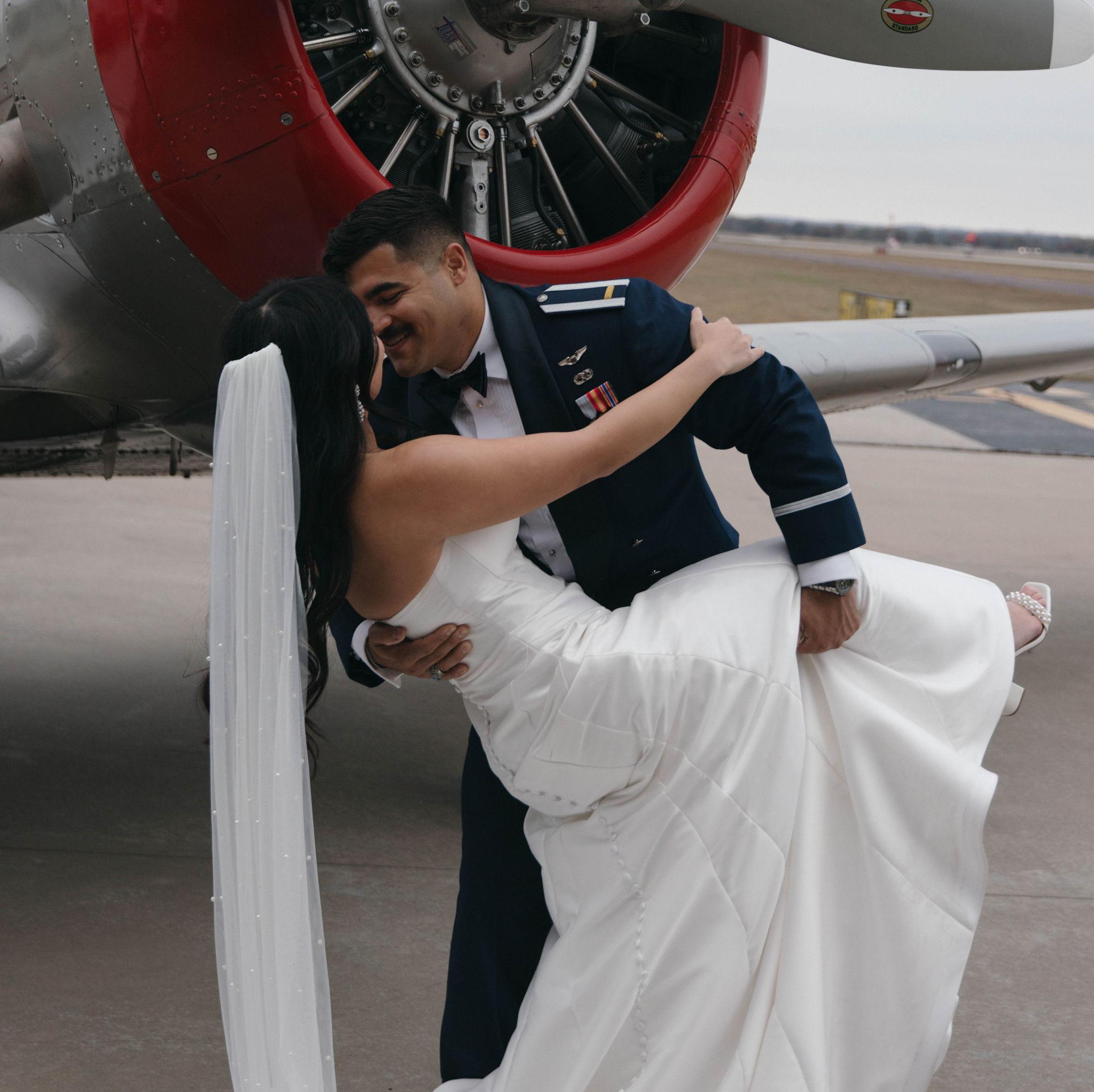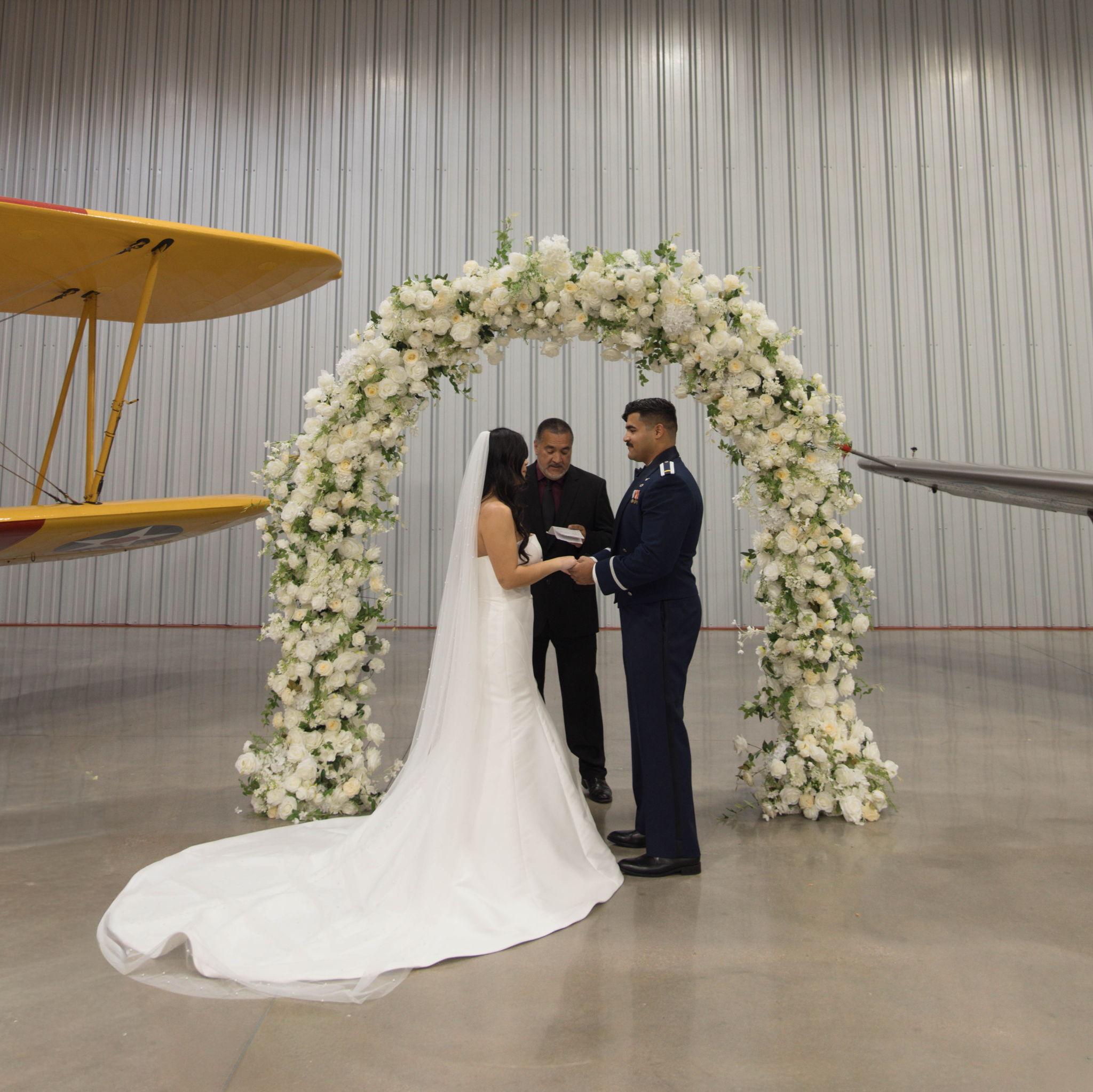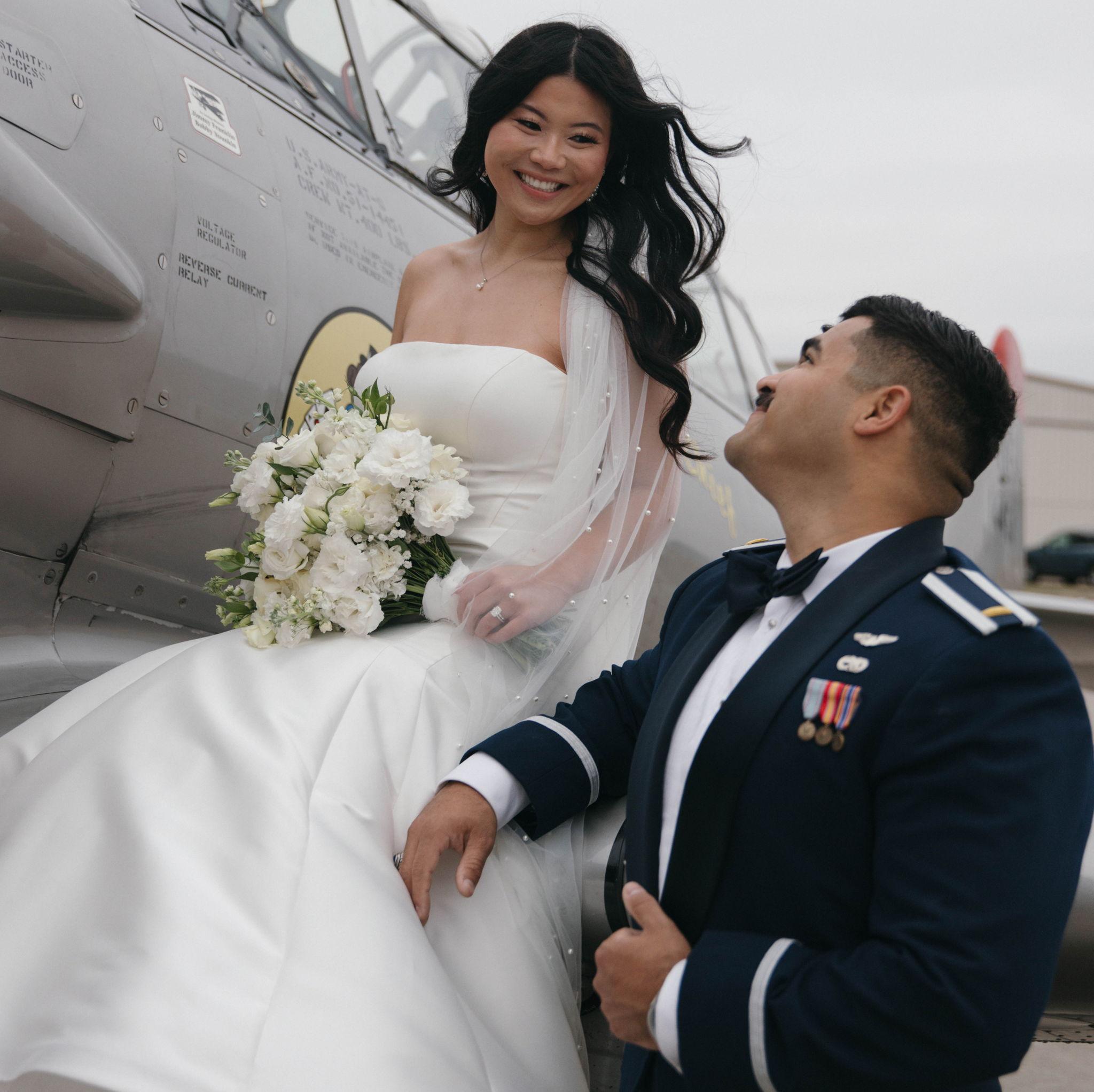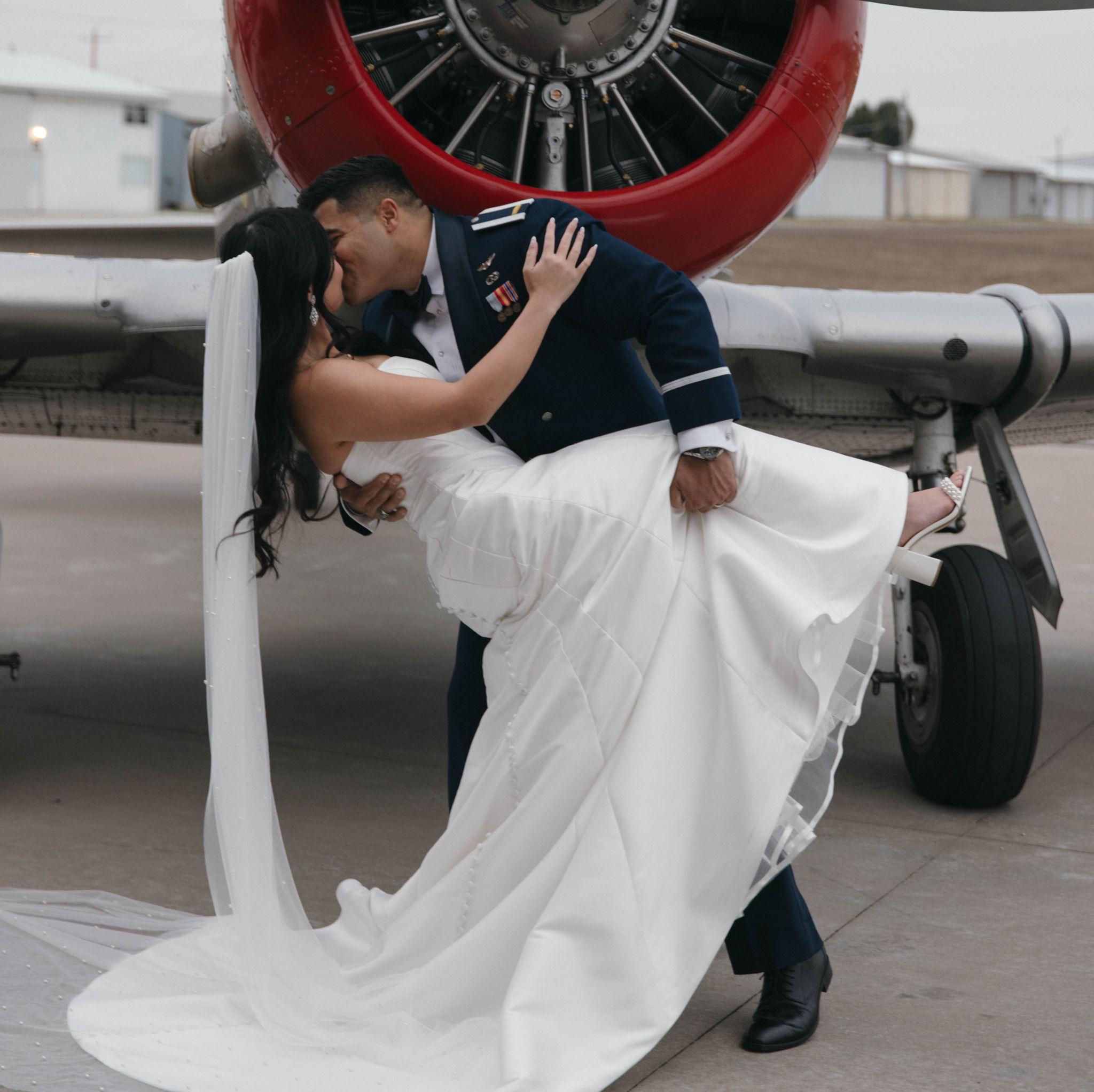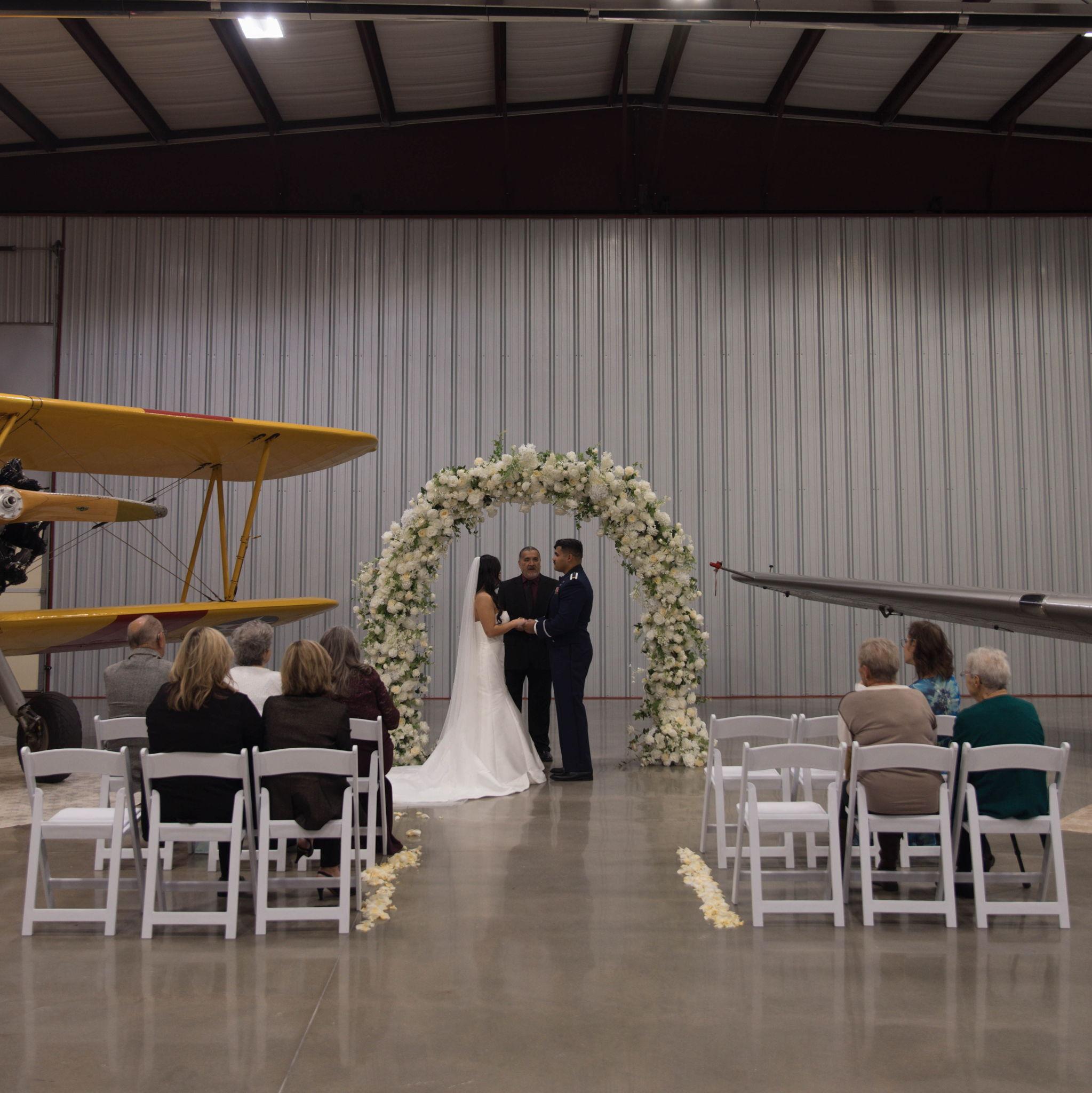 On 11/22/2025, we said ‘I do’ in front of our parents, grandparents, and godparents on our anniversary. We got married inside the airplane hangar where Addison took his very first flight. It was such a special moment in the middle of a busy season as we get ready for Addison’s next assignment and the start of our next chapter together. Now we’re ready to celebrate with all of our family and friends! We feel so blessed to have each of you in our lives, and we can’t wait to share this celebration with our favorite people.