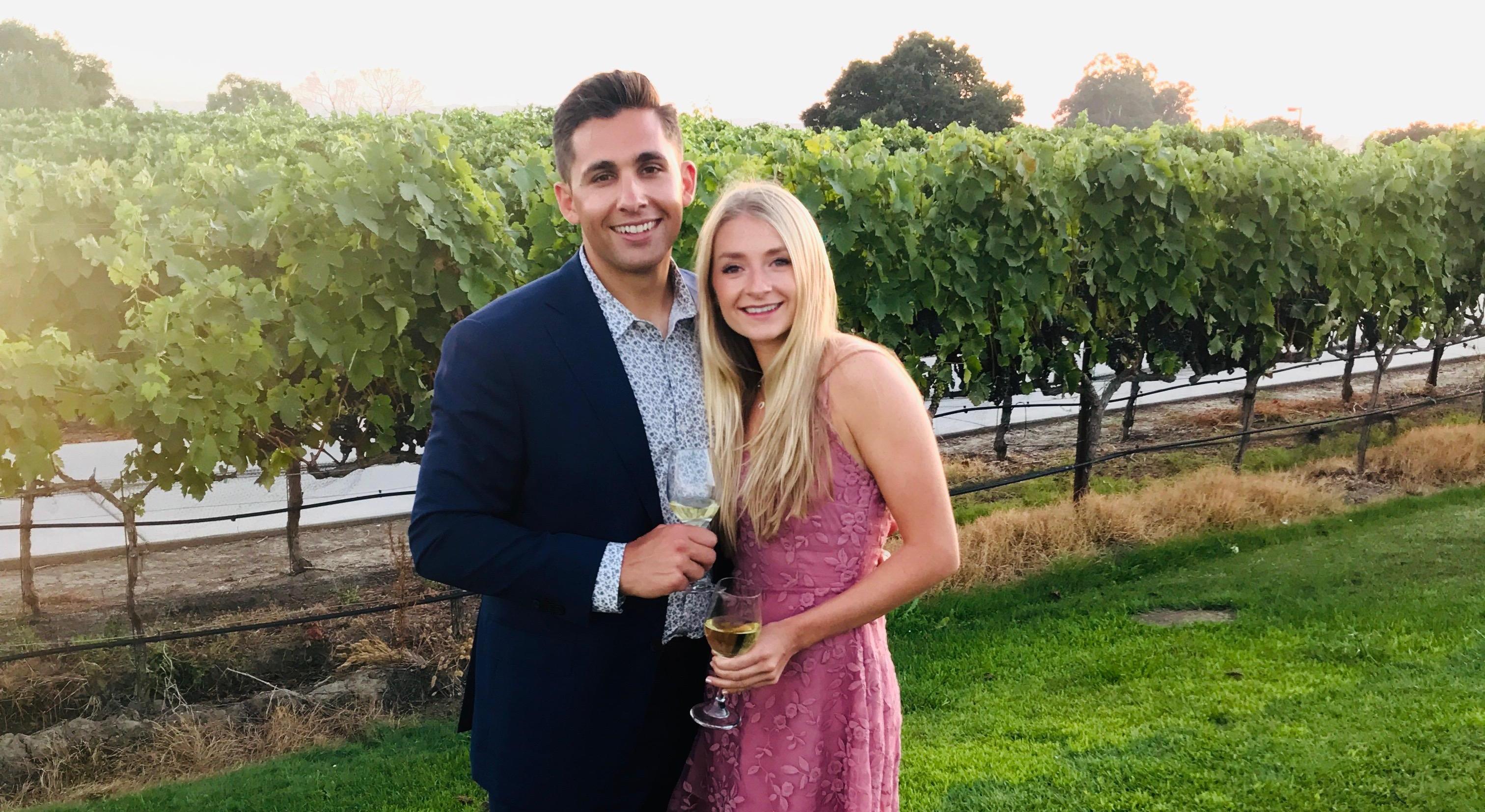 The morning of 9/19/20, Joe woke me up and asked me to go to a bougie brunch at one of his favorite golf courses in Livermore. Having been deprived of social activity and any chance to dress up in the midst of COVID it was an easy yes from me. We got ready and hopped in the car, excited for this rare outing but when we reached our destination we hadn't arrived at a golf course but at a winery. Joe told me to take his hand and led me down one of the vineyard aisles to a private brunch for two he had set up in the vines complete with breakfast burritos, Sunny D mimosas, and some our favorite mood music. Before we even sat down, Joe dropped a knee and popped the question. Spoiler alert: I said yes!