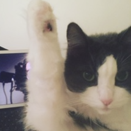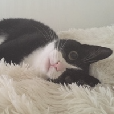 3 years ago, Madeline hounded Derrick for months (and months) before he relented and she adopted Bug. A Tuxedo kitten with a ton of spunk, Bug will eat anything. Two years ago she ingested a large round eraser. Several thousand dollars later, a 12 inch scar and a few medications later she still has not learned her lesson. Cords, shoe laces, chargers, string, plastic and the list goes on and on. She spends most of her days chewing on something, chasing flies and terrorizing everyone in the home.