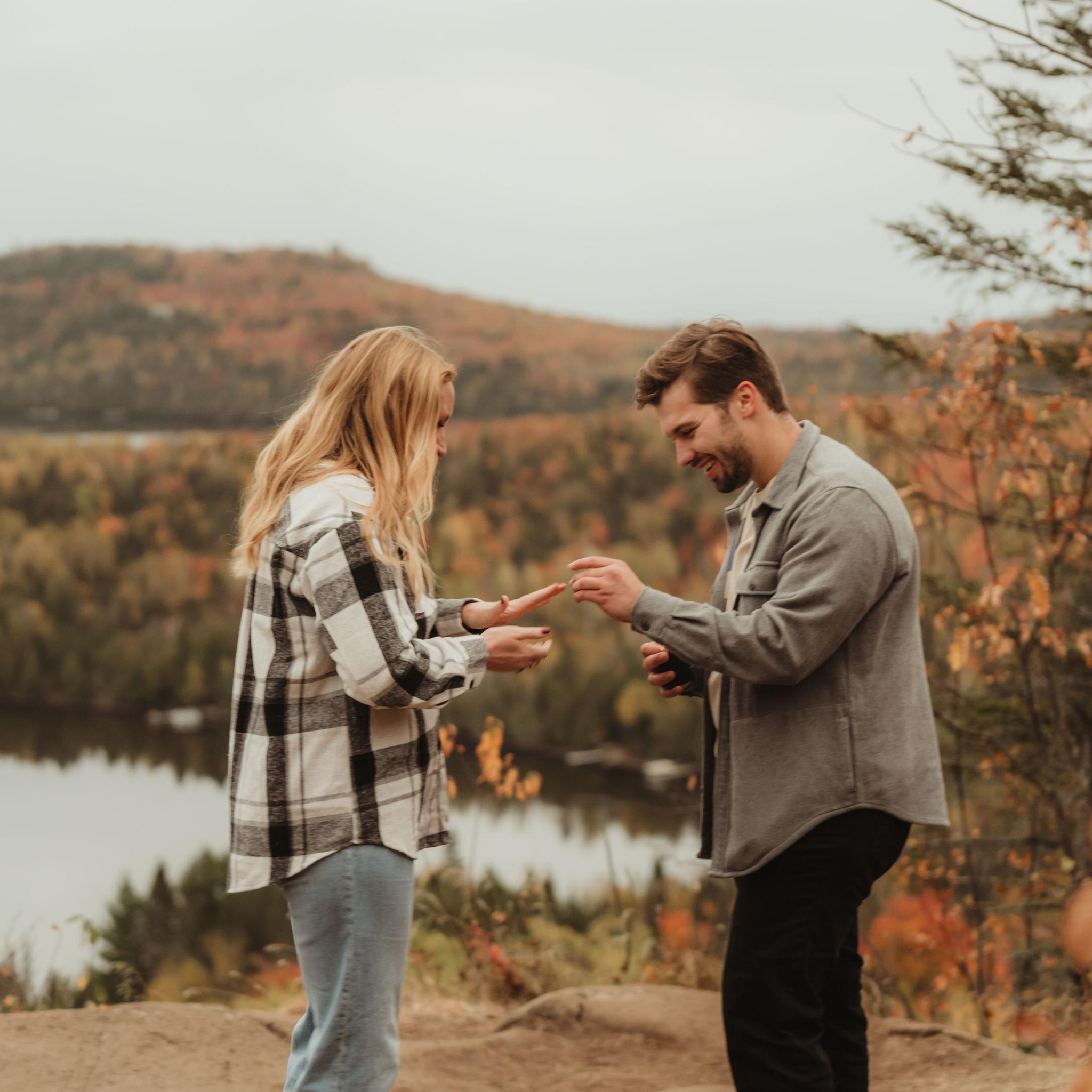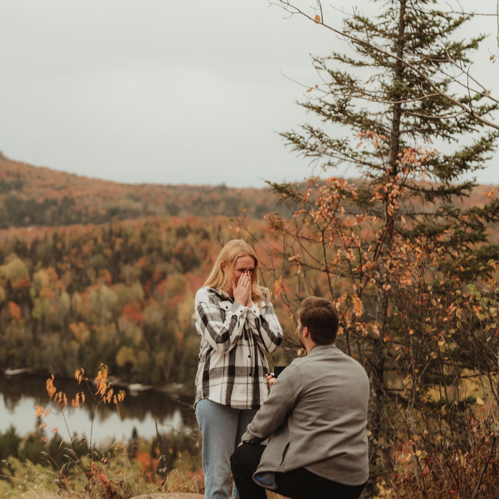 Proposal in Lutsen at White Sky Rock- Photos by Laura Muus Photography. Engagement photo shoot in Minneapolis at Lake Harriet & The Rose Garden-Photos by our amazing wedding photographer, Madelyn Grace Photography.
