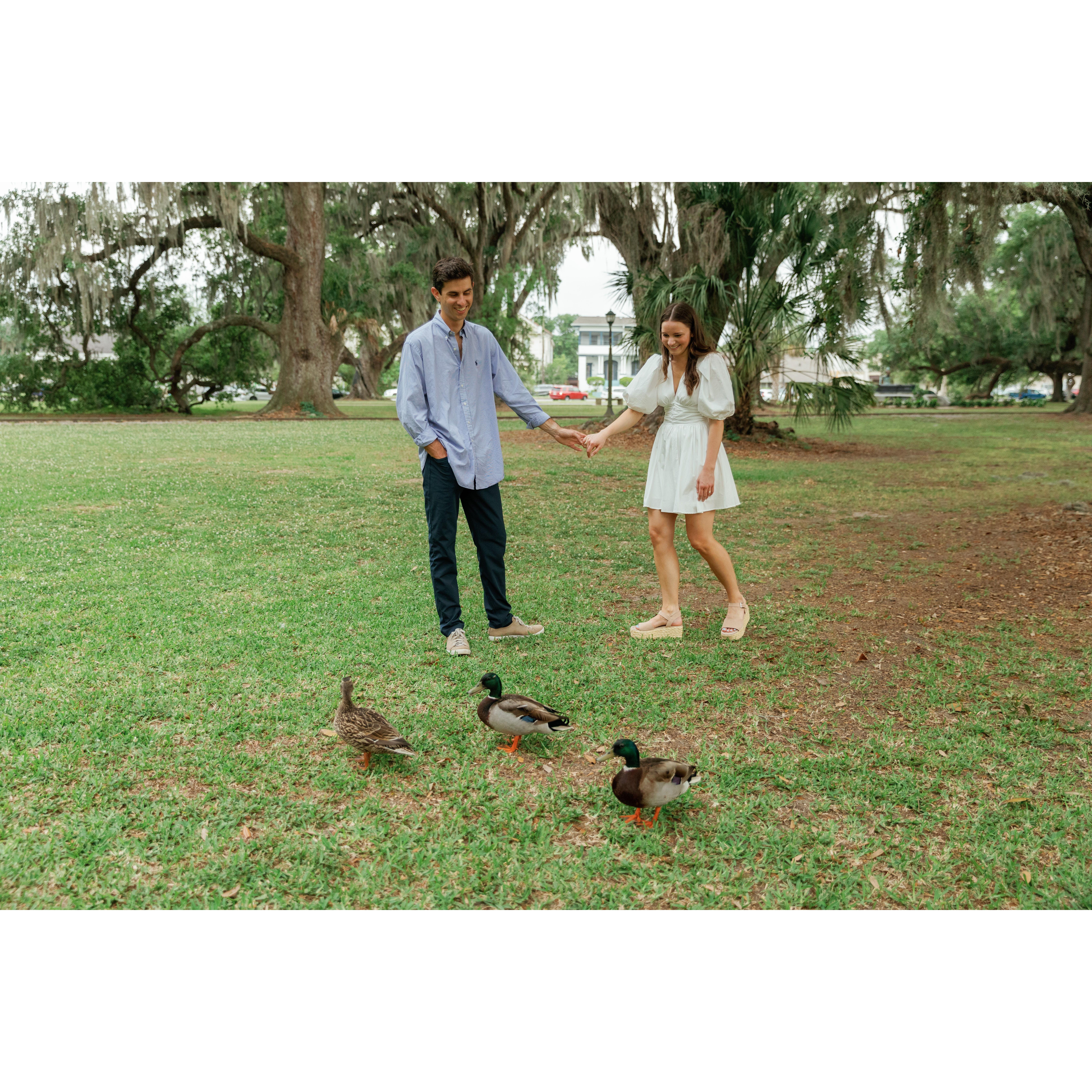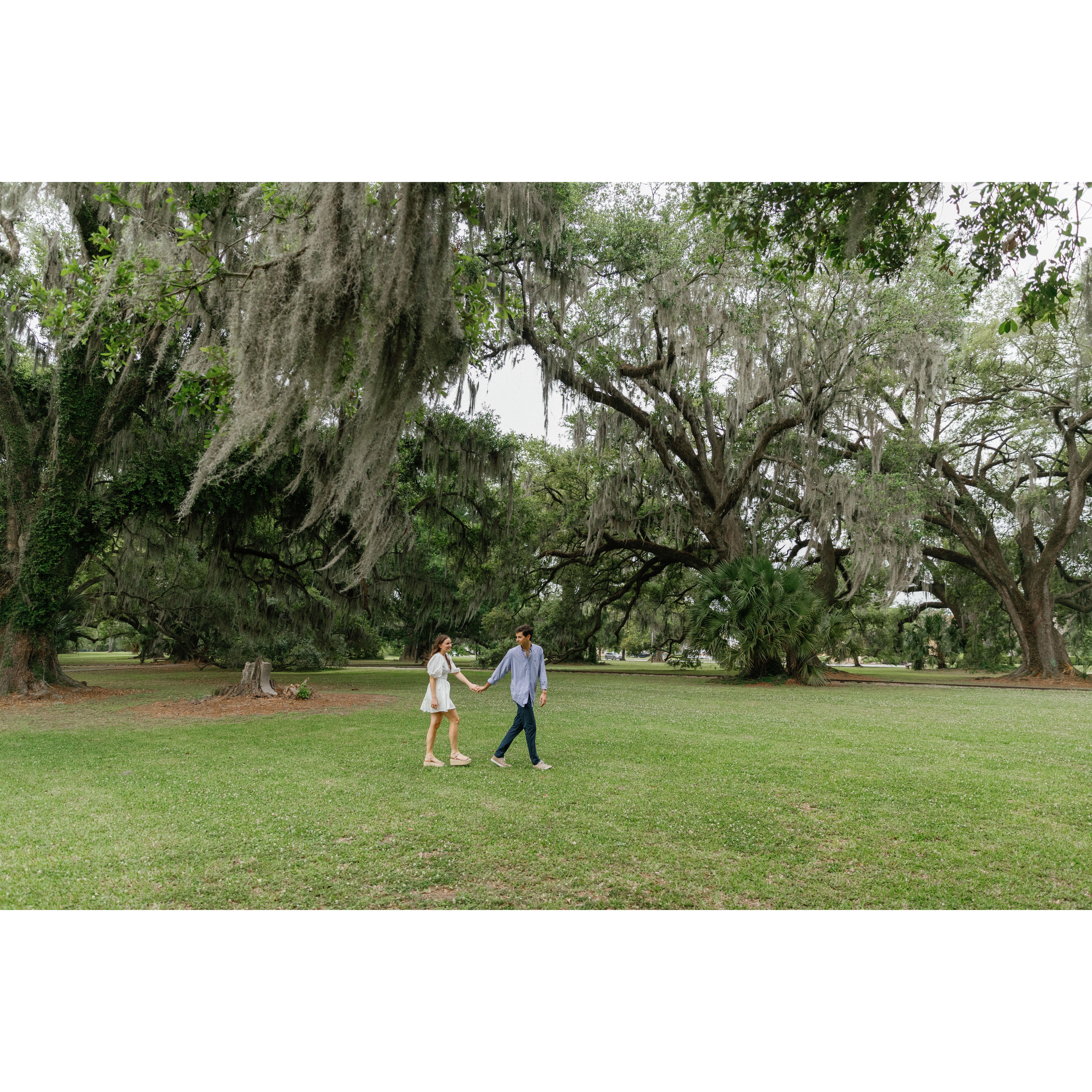 We took our engagement photos at City Park in New Orleans. A beautiful place to visit while you are there. It has its own Cafe du Monde!