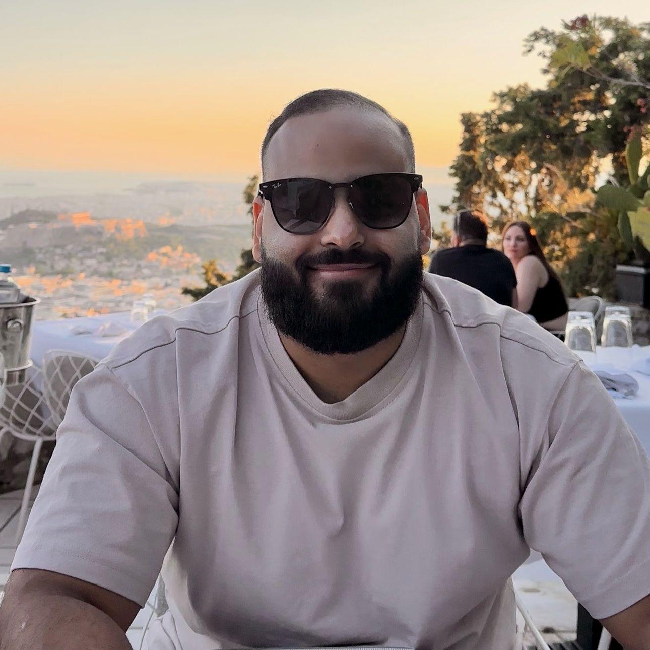 Nick and I met in college, and he’s been a character since day one. If he looks like a mad scientist, it’s because he is — the guy literally has an MD and a PhD to back it up. His background? Syrian, Jordanian, Palestinian… it honestly depends on the day you ask him. What doesn’t change is that he’s sharp, steady, and one of the most reliable friends you can have. We also forced him to learn our Arabic dialect, and to be fair, he speaks it better than most Egyptians. FUN FACT: Nick can explain organic chemistry, but still won’t give you a straight answer about where he’s actually from.