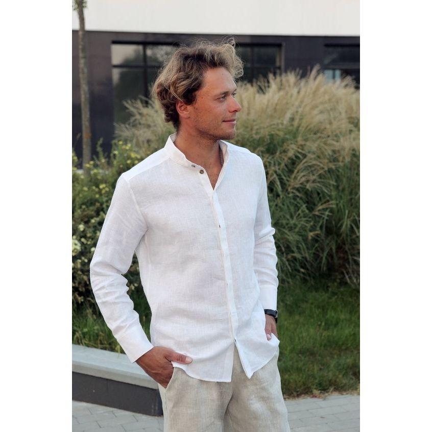 Hombres: Camisa Blanca de Lino, Pantalón Beige Lino o Algodón. Mujeres: Vestido Largo