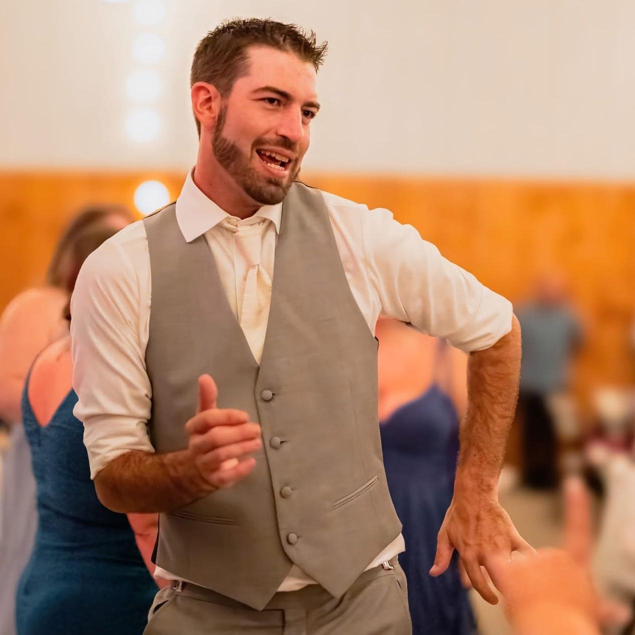 Ian is the groom’s cousin and always the first to belt out a good tune, no invitation needed. Whether it’s singing along or cracking open an ice-cold Busch Light, Ian brings good vibes and great energy wherever he goes. We’re so happy to have him celebrating with us on our big day.