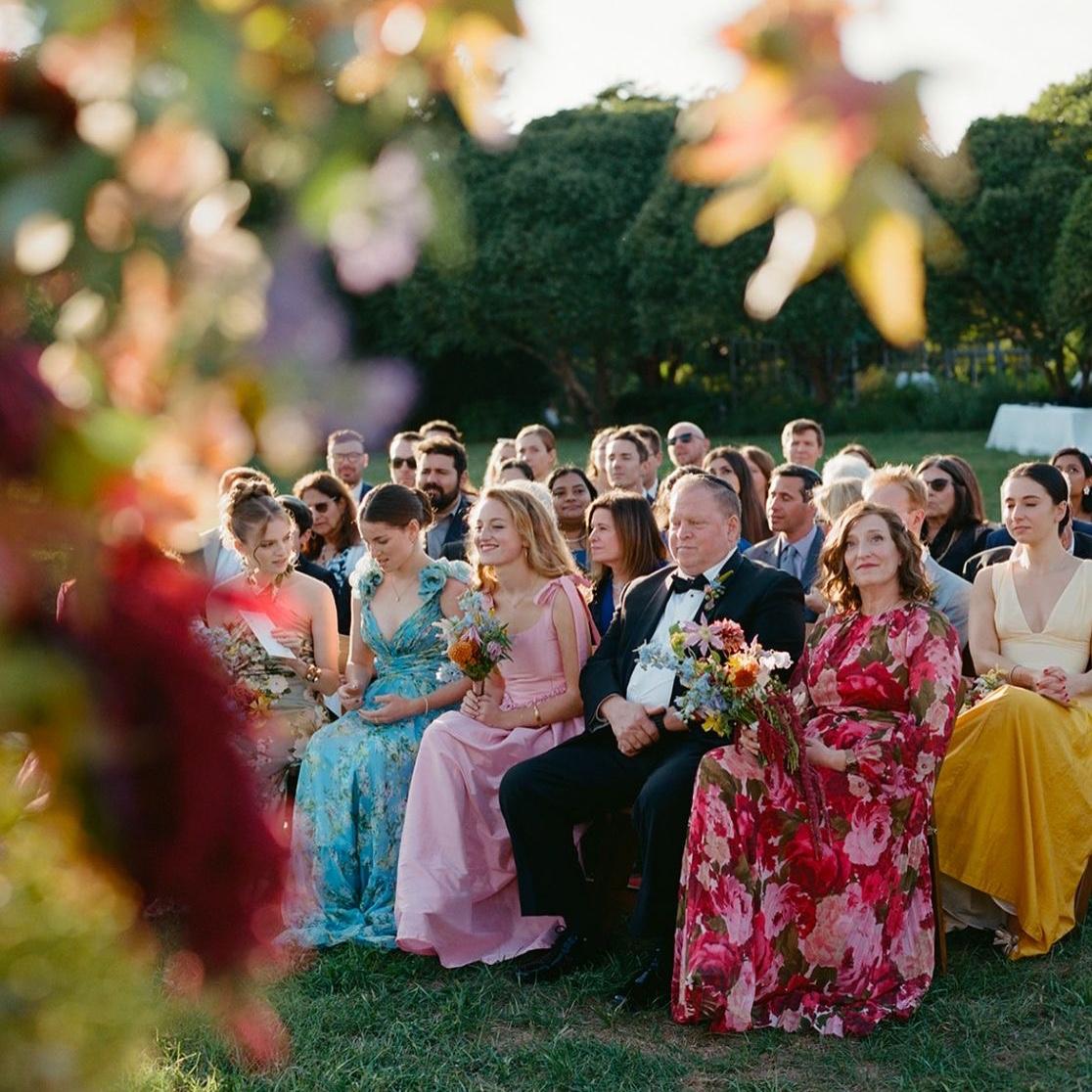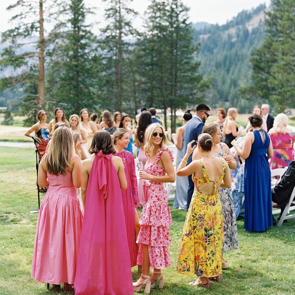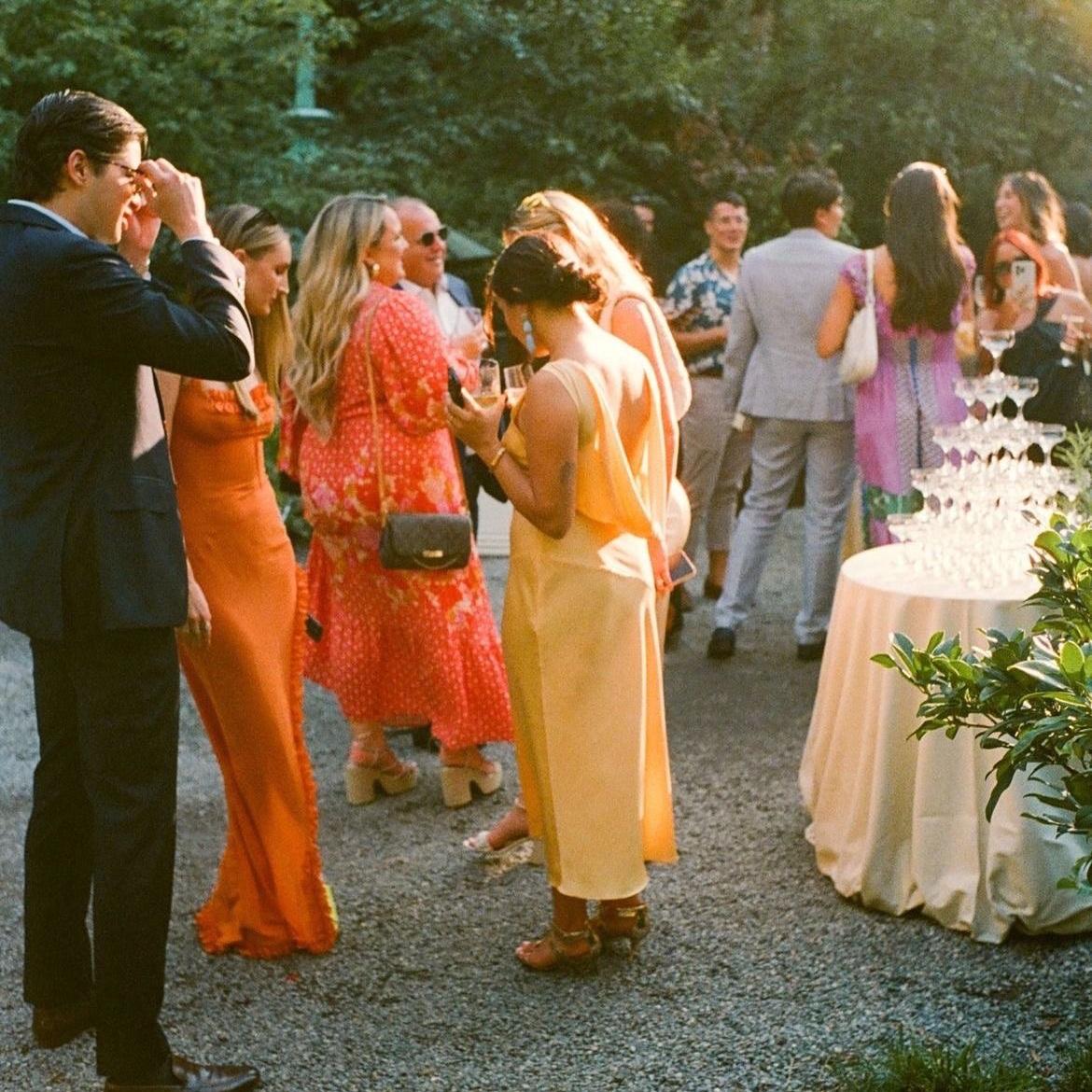 For women: We strongly encourage colorful gowns, prints, or romantic patterns - ideally no black dresses, please. Think elegant and joyful!