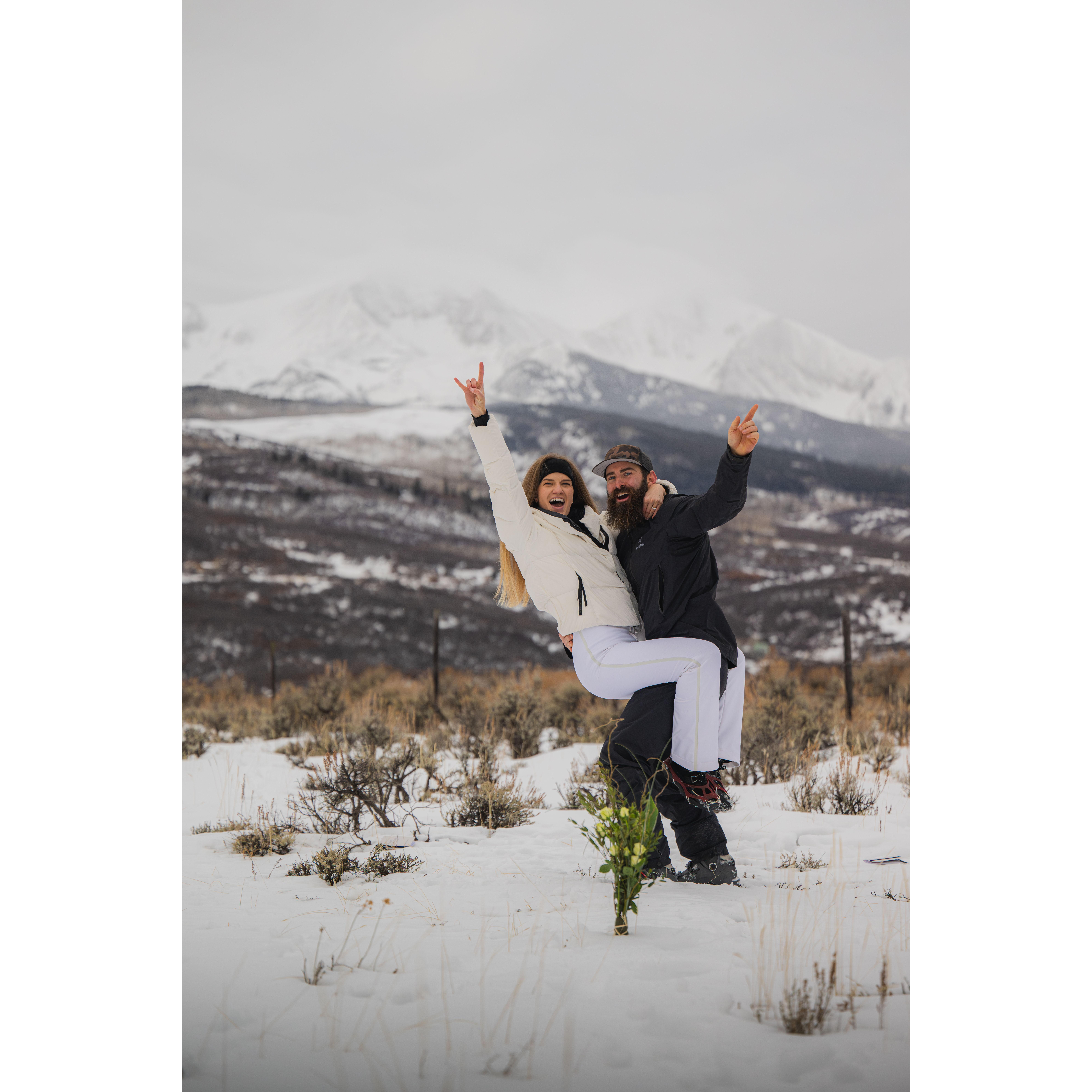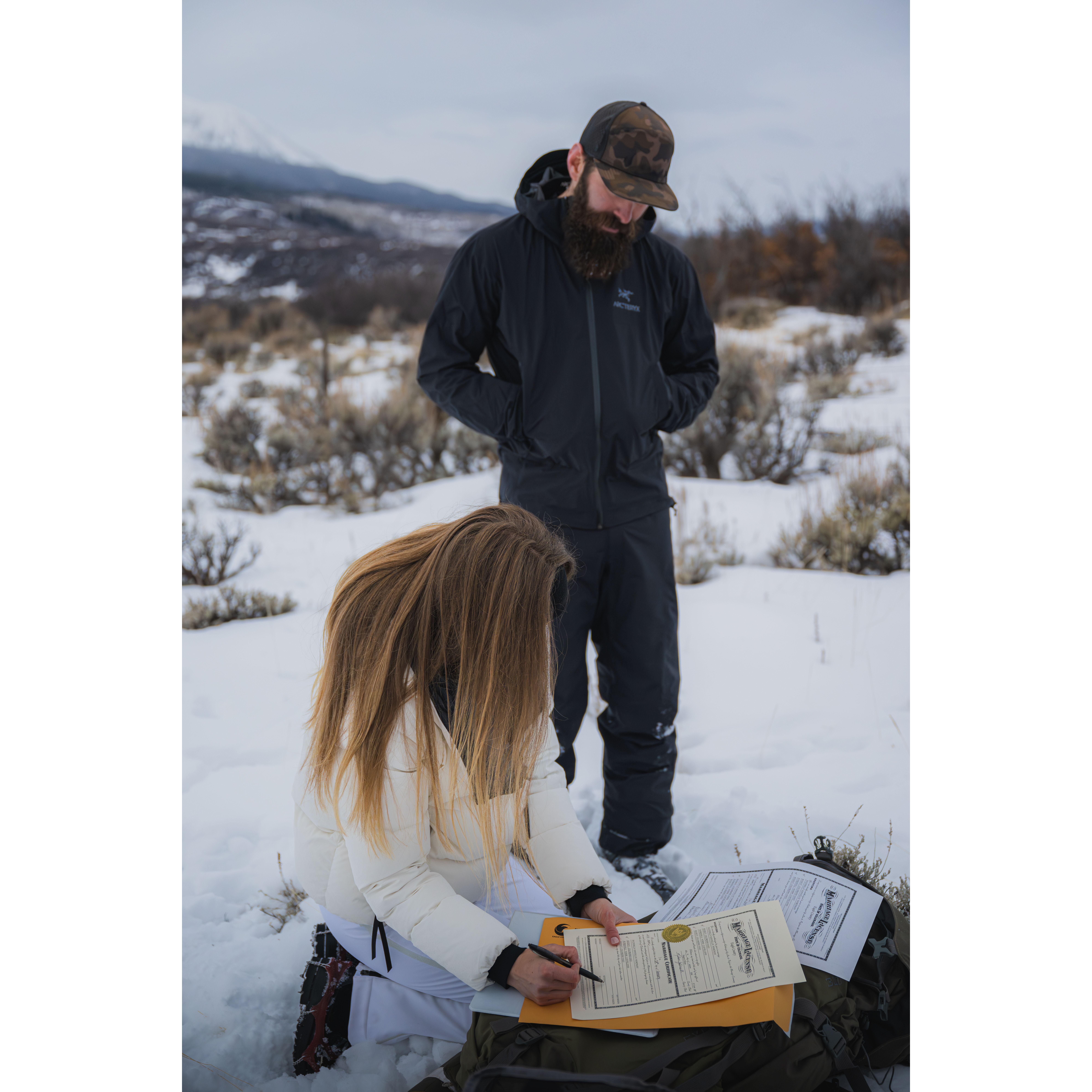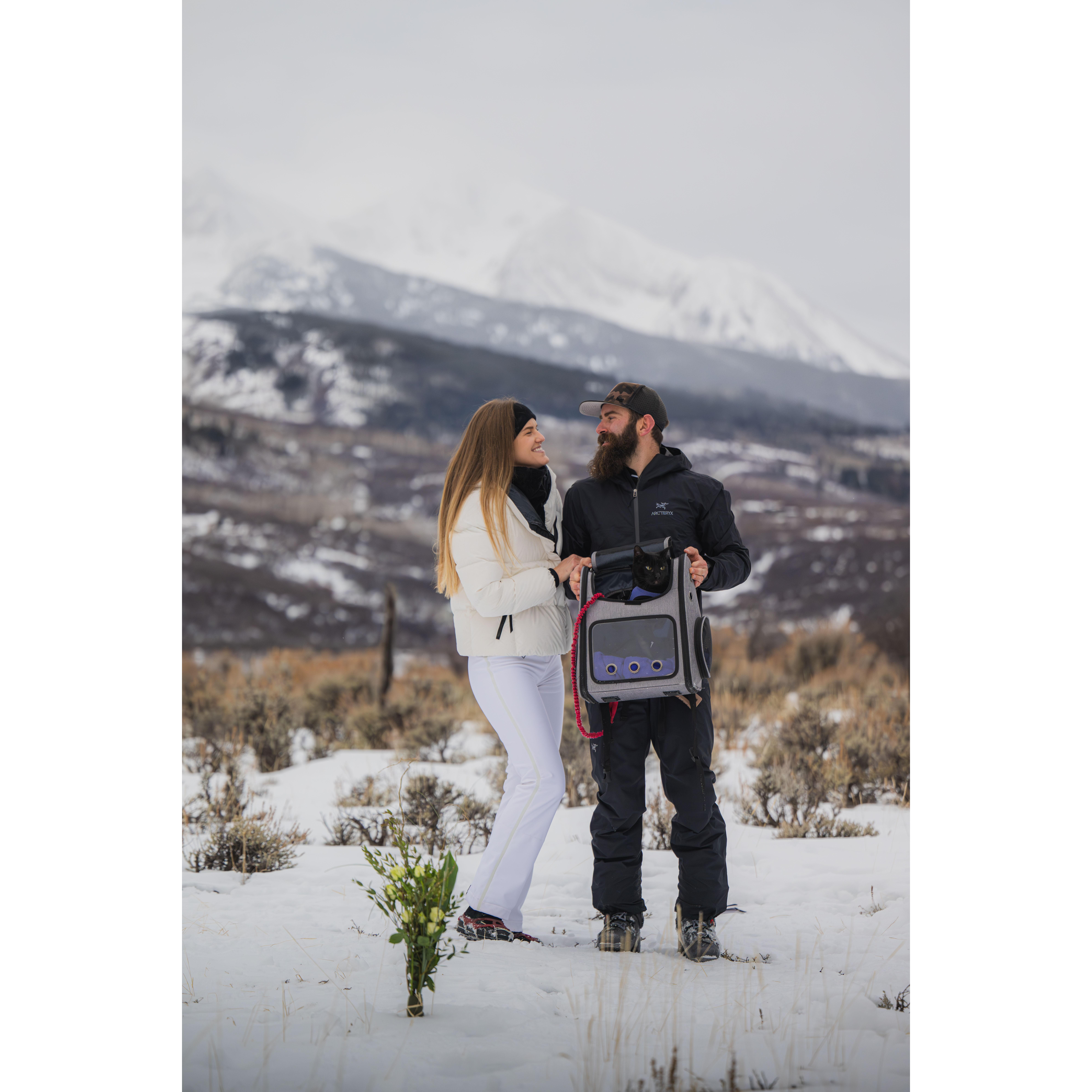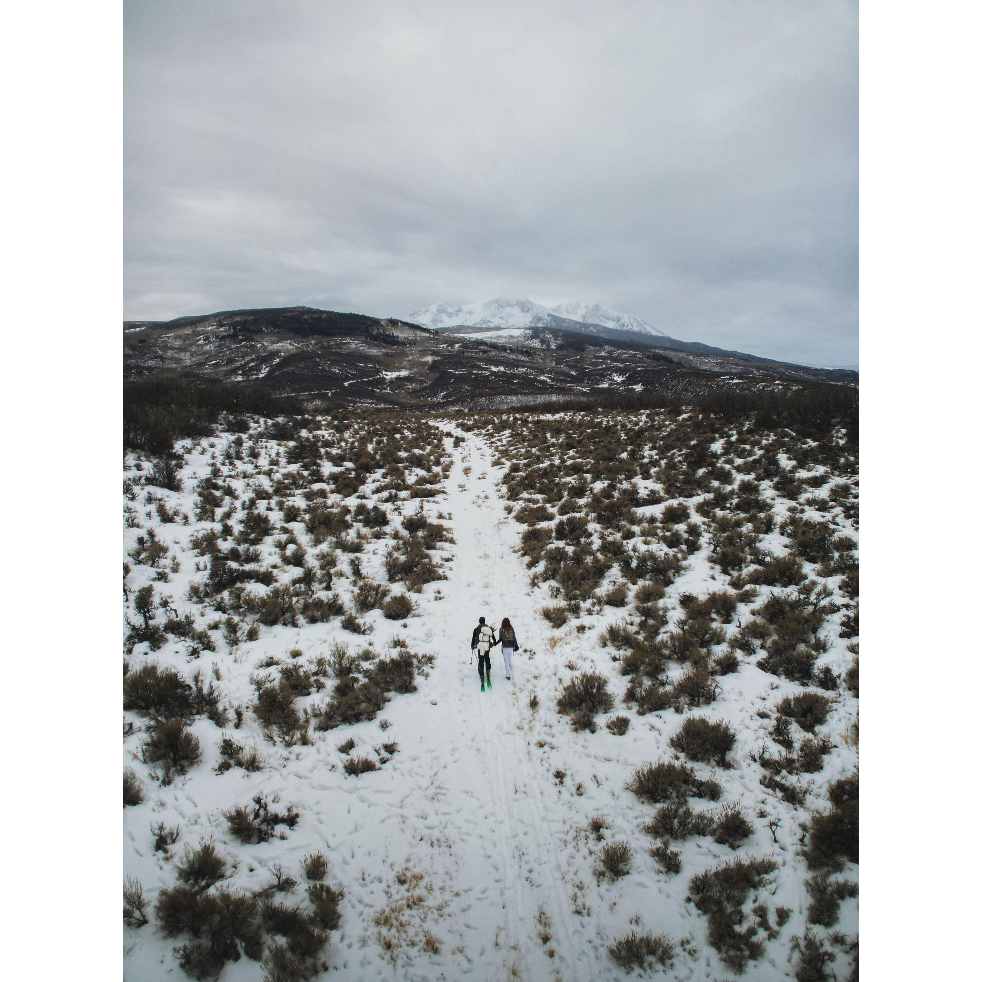 Snowshoeing and skinning up to our elopement spot!