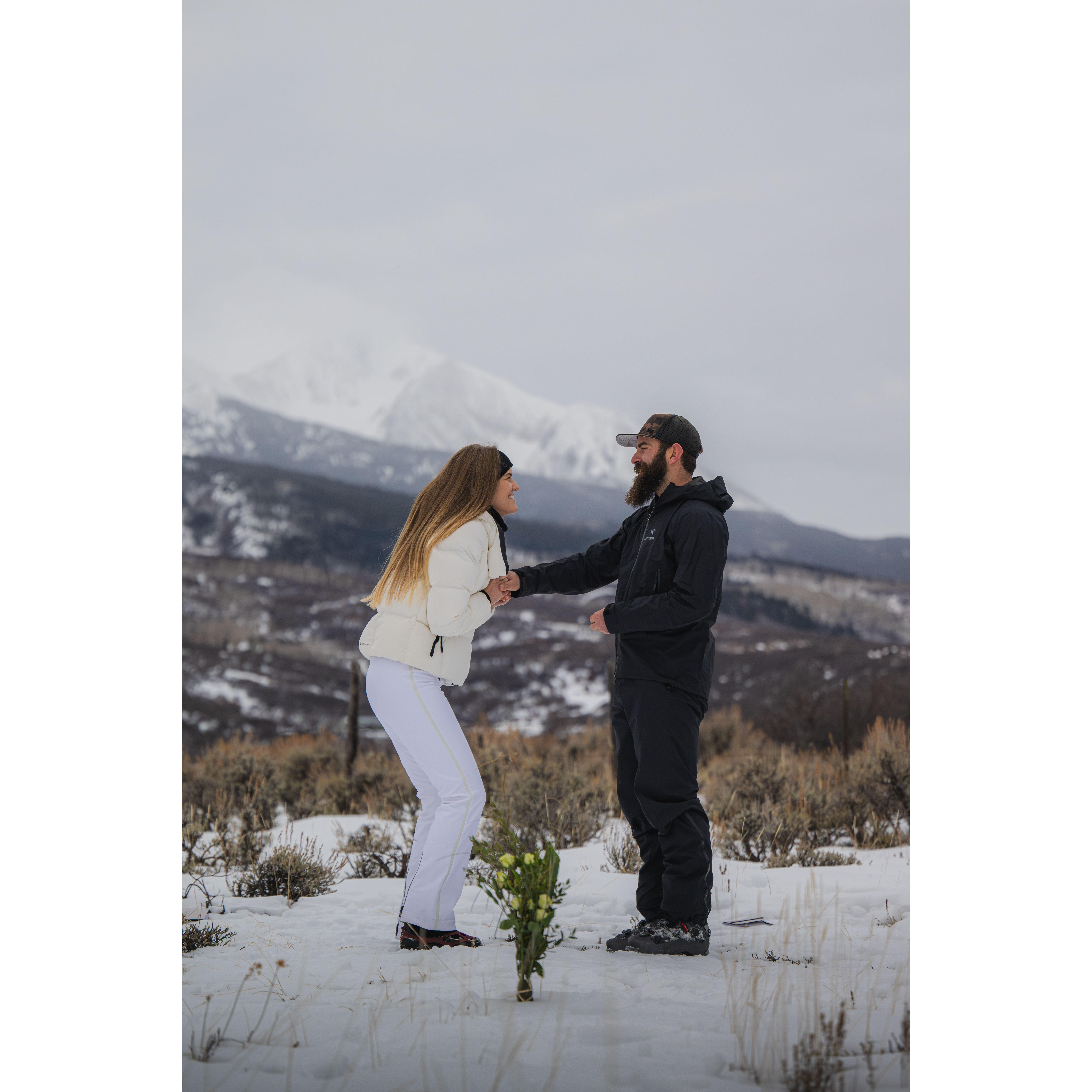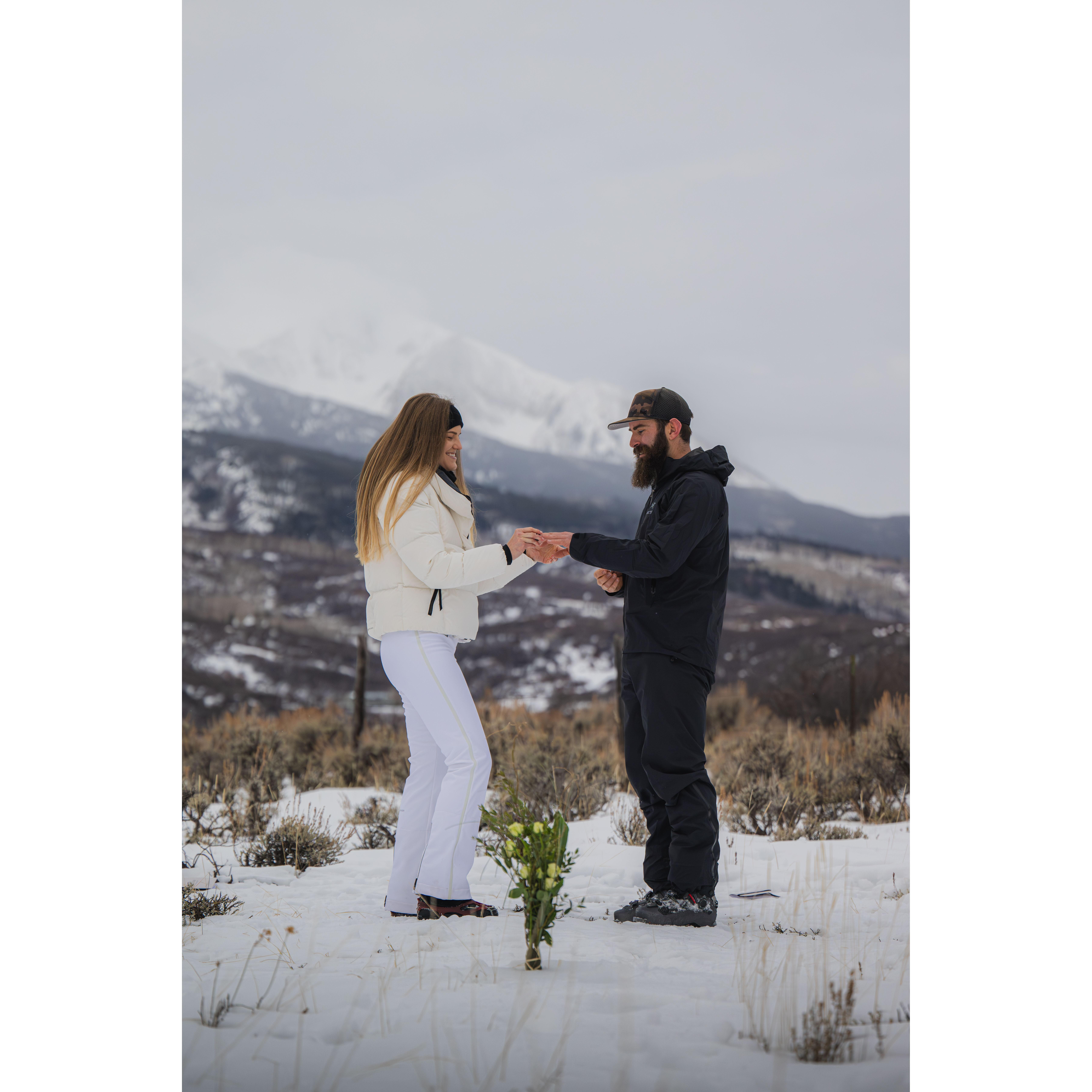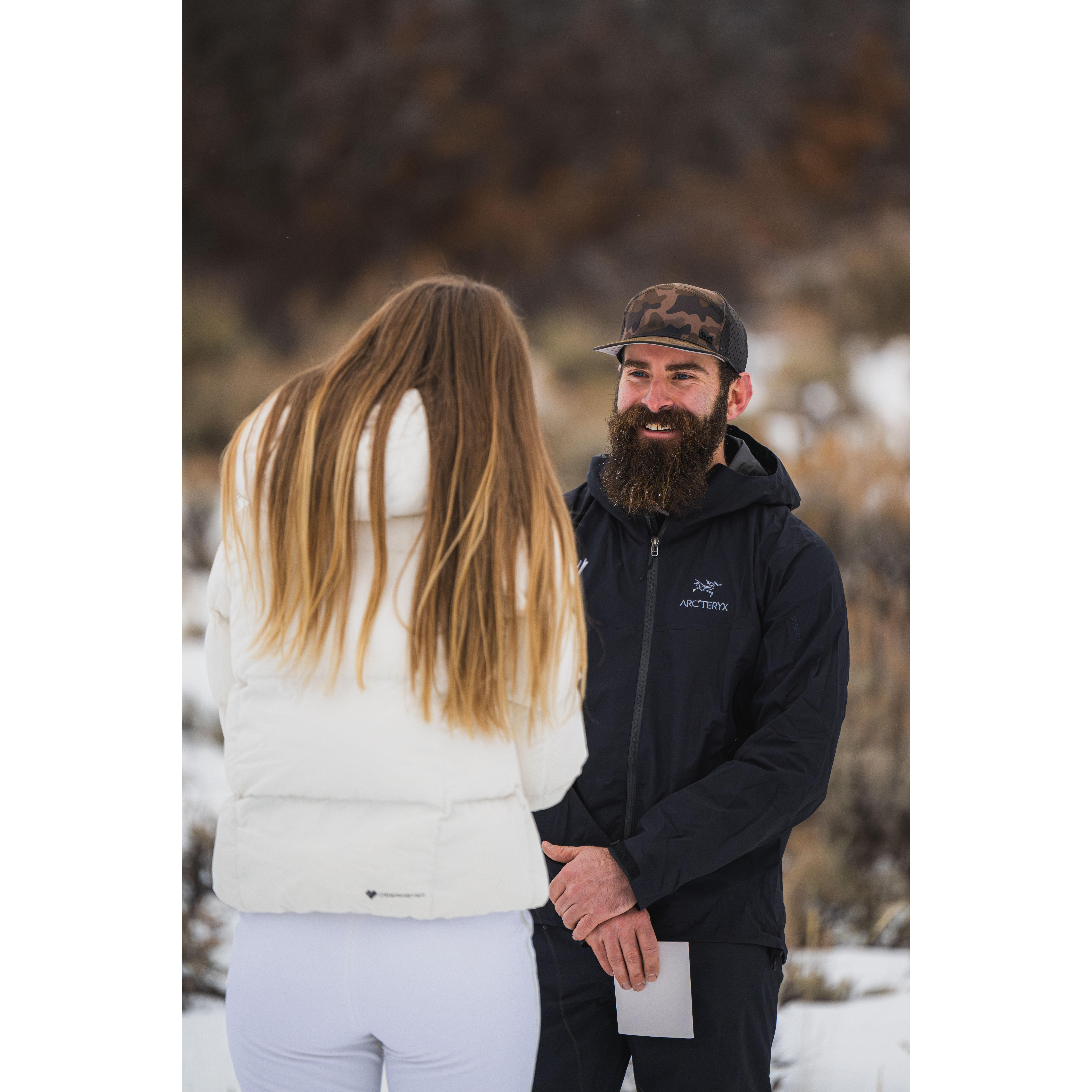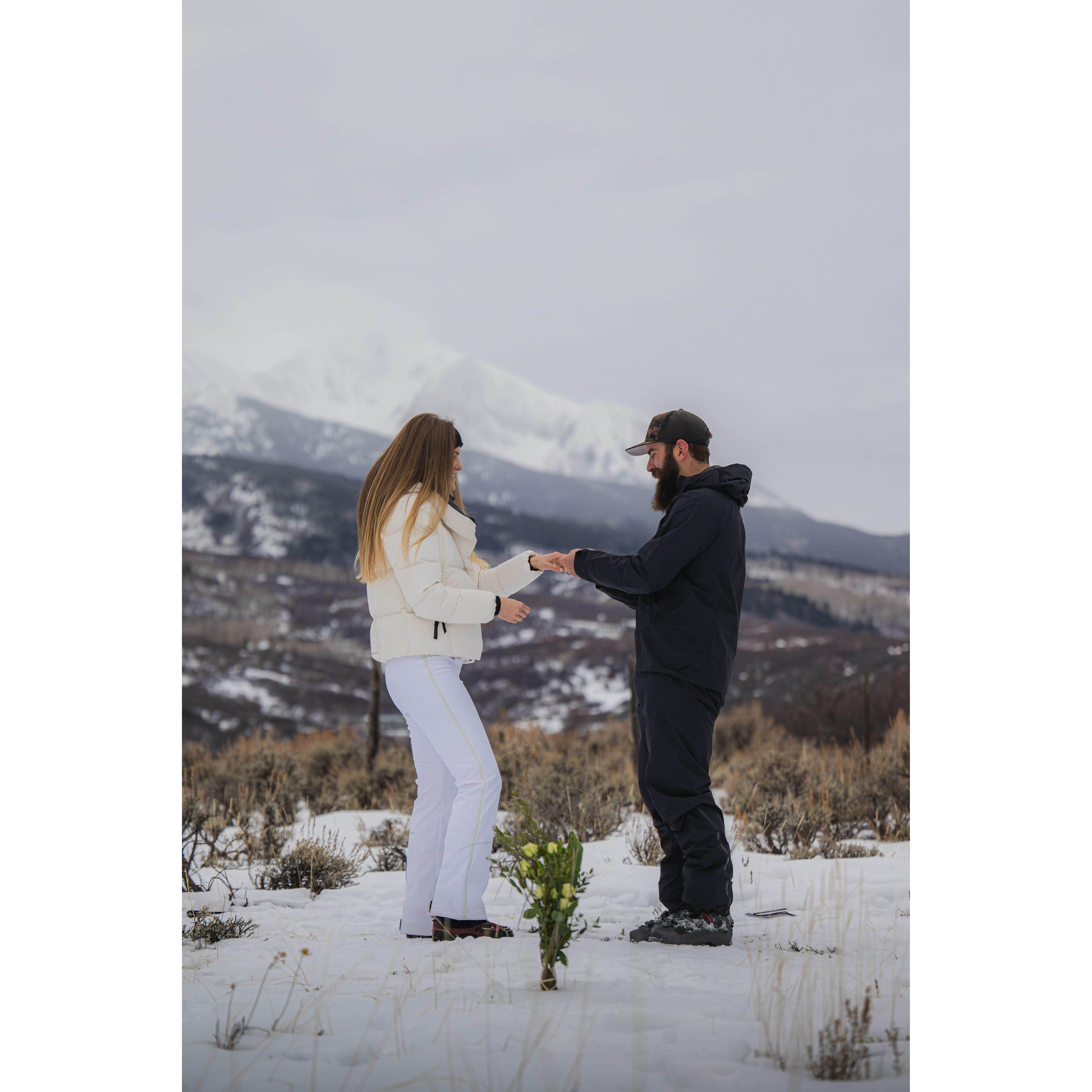 Snowshoeing and skinning up to our elopement spot!