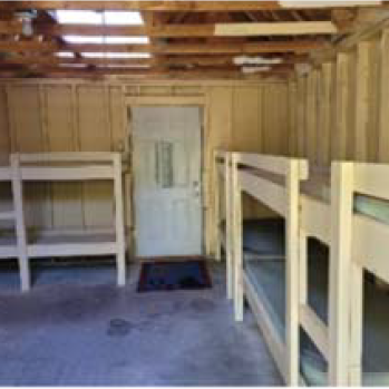 The cabins have electric lights and a few outlets. Each bunk is a twin sized bed with a basic mattress.