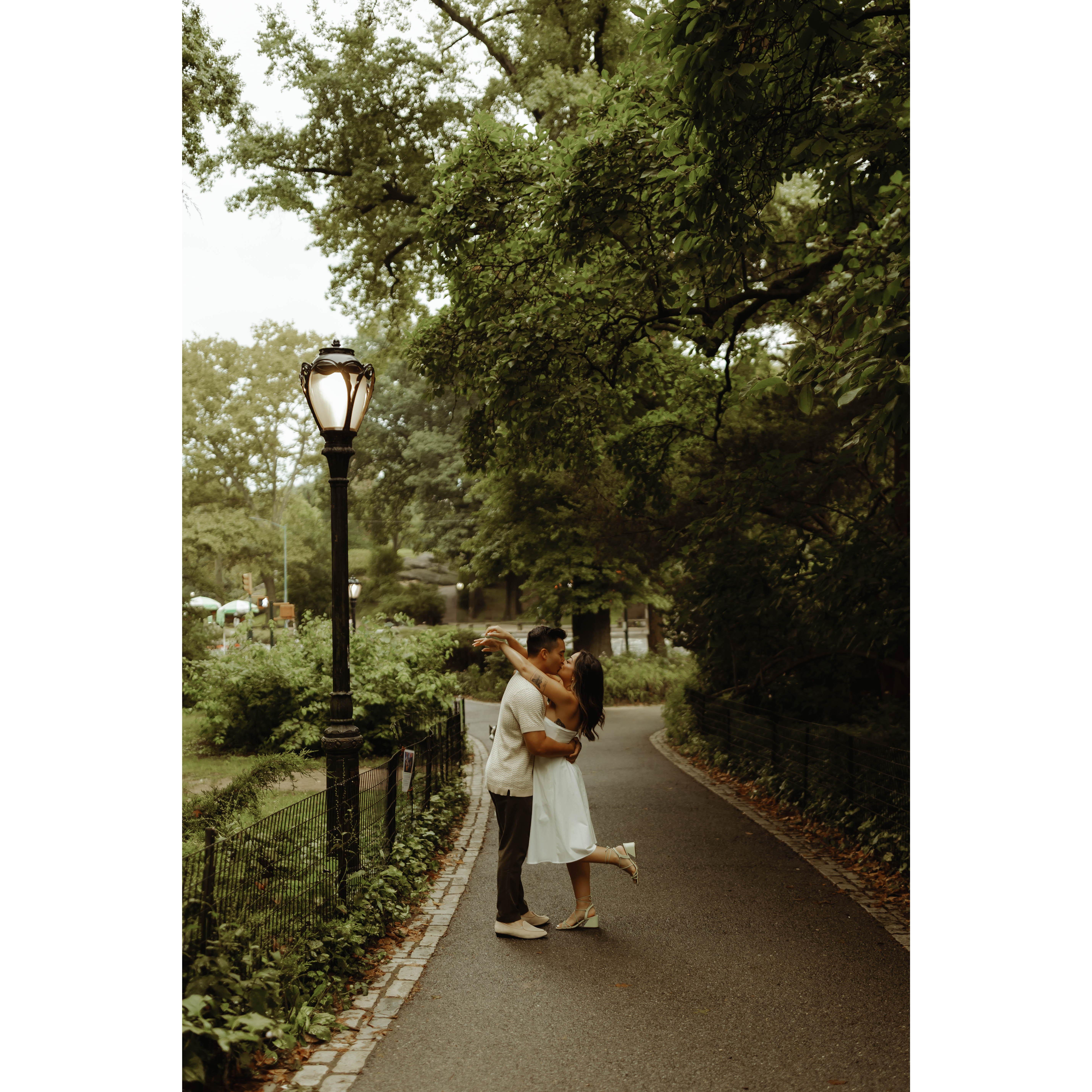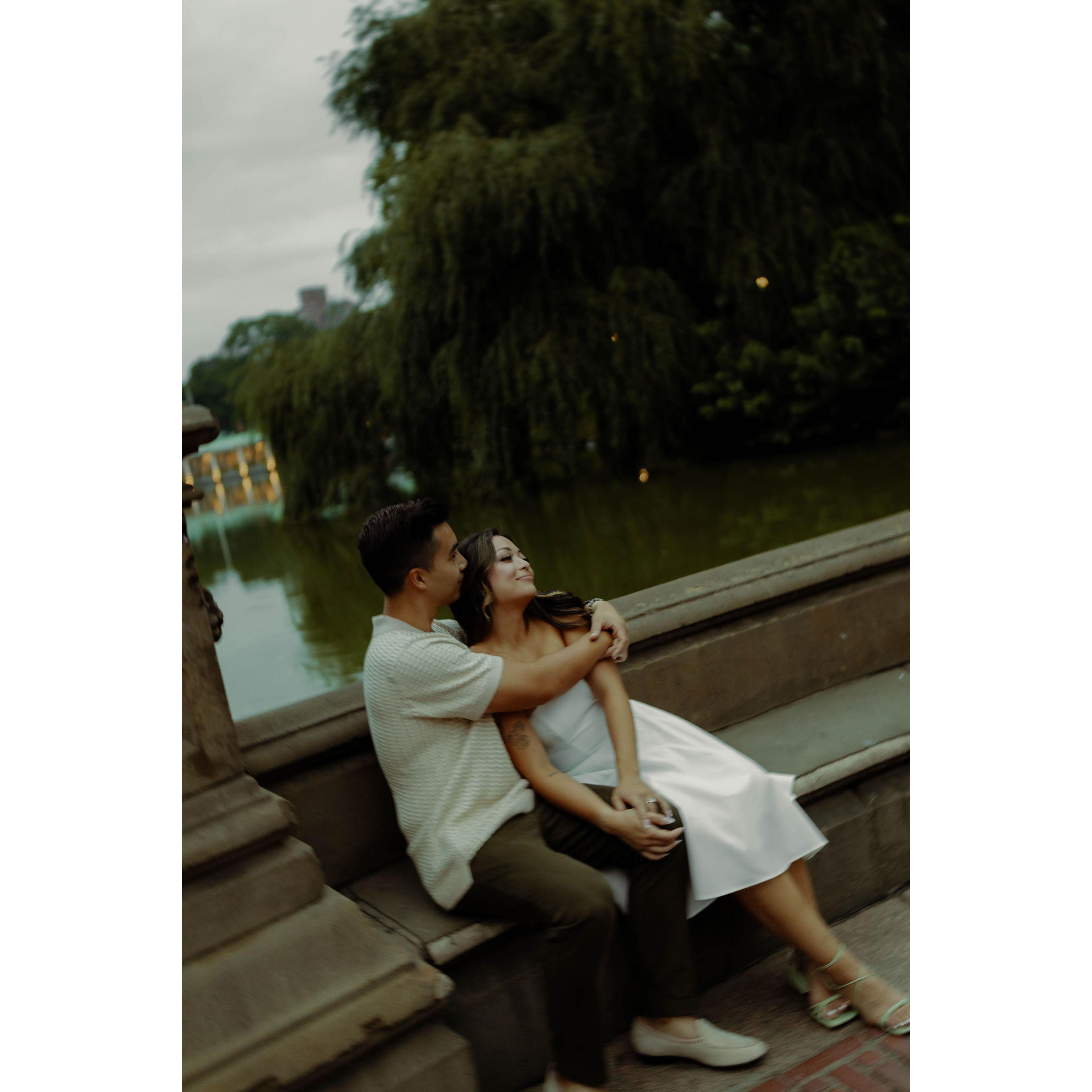 he proposed in St. James Park, London under a willow tree in the rain. immediately after, my friends popped out from behind a tree when they were supposed to be in Italy!