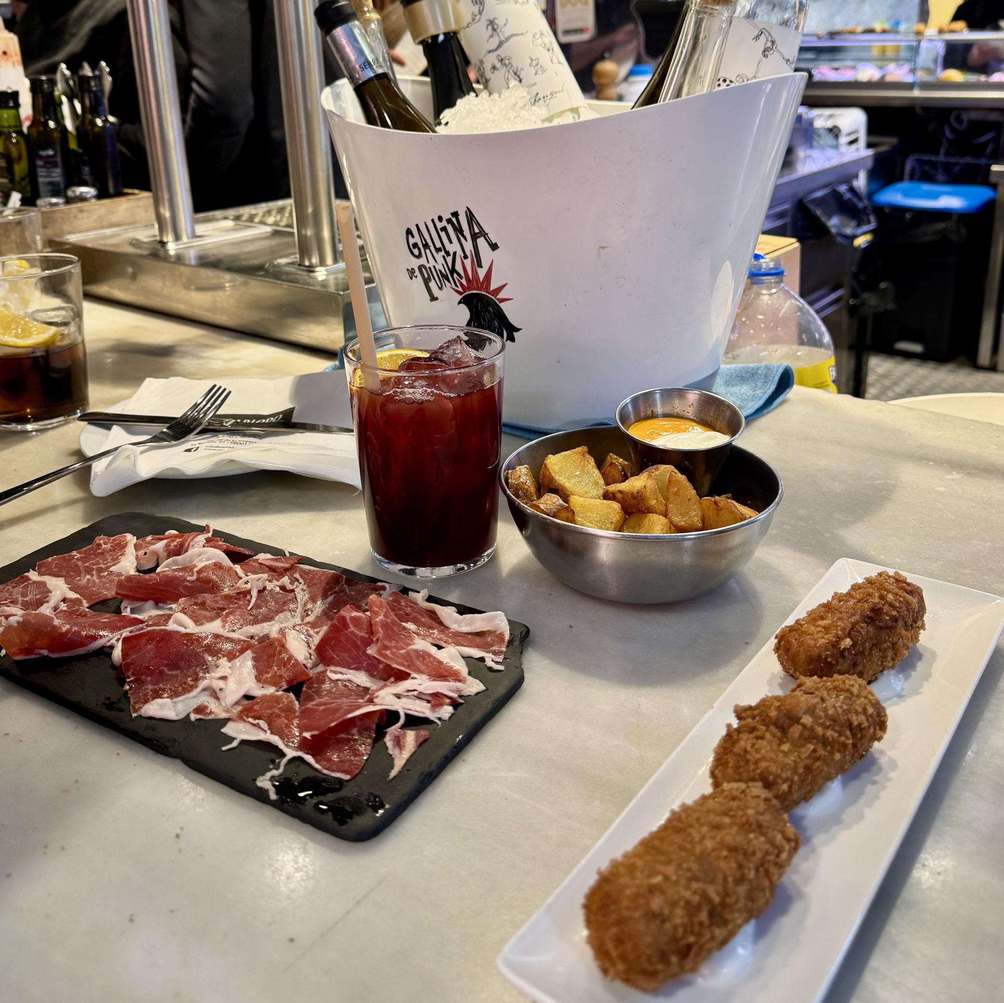 La Boqueria market (Try El Quims!) Bar Canete Bodega de la Puntual Viana Granja Dulcinea (for churros!)