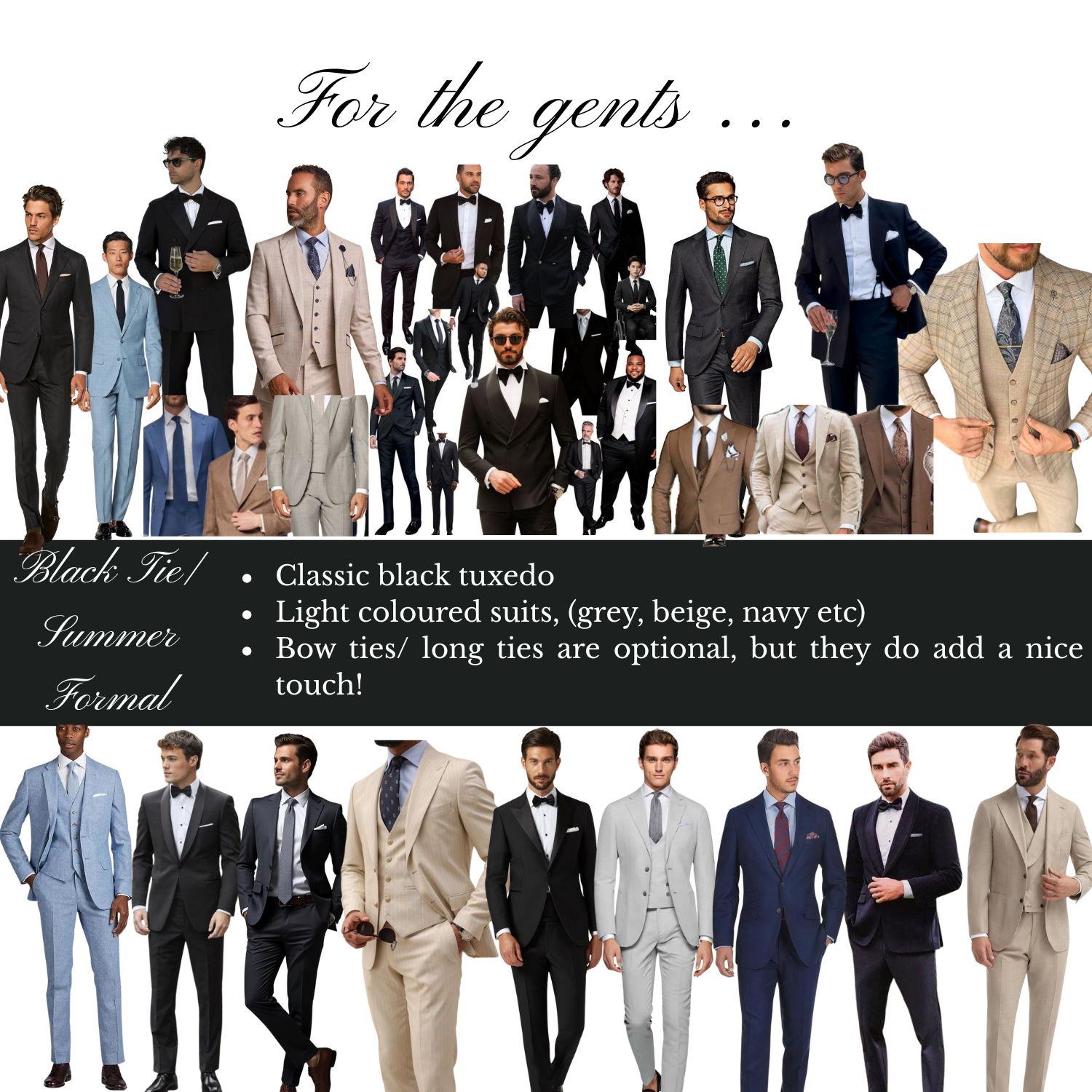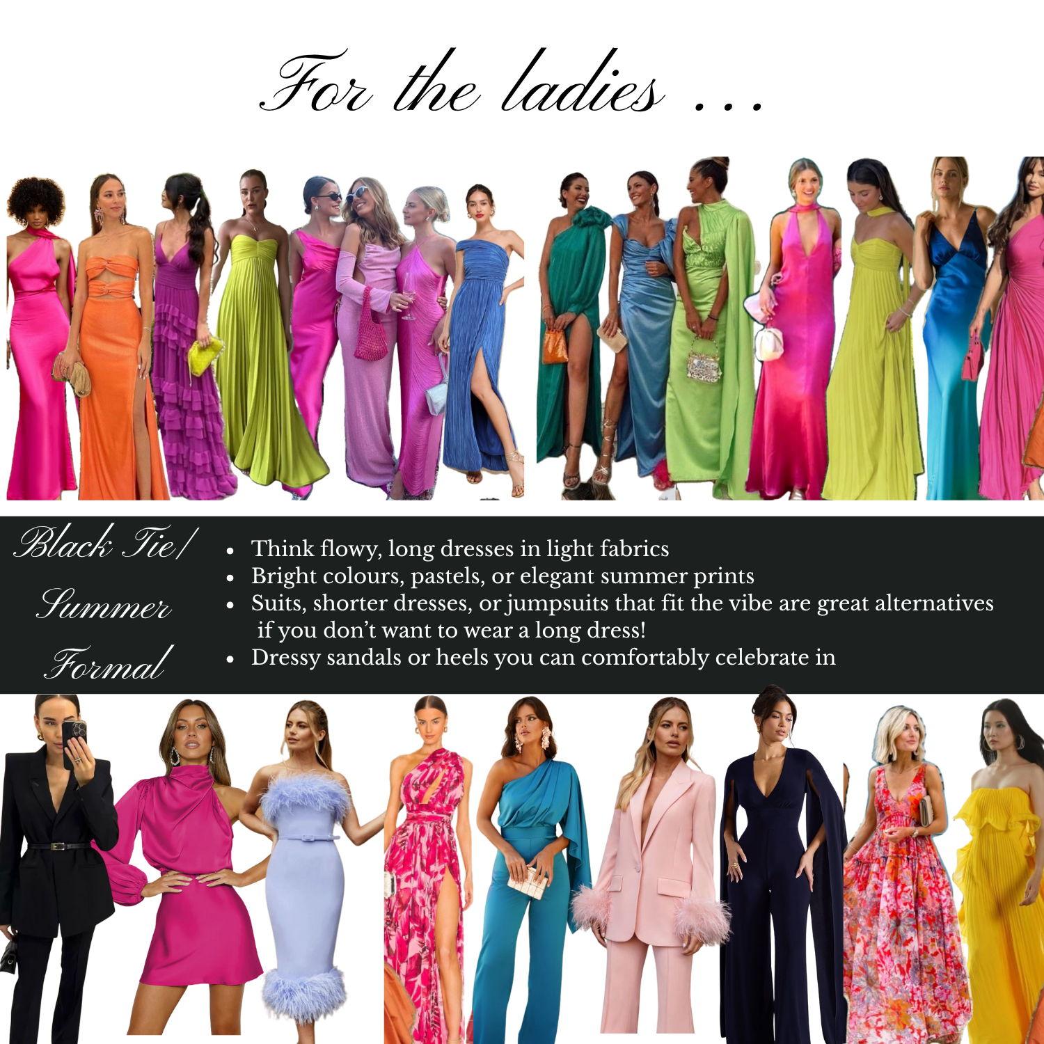 If you’re still unsure, take a look at black tie or summer formal outfits — we’ve added some inspiration below for you.