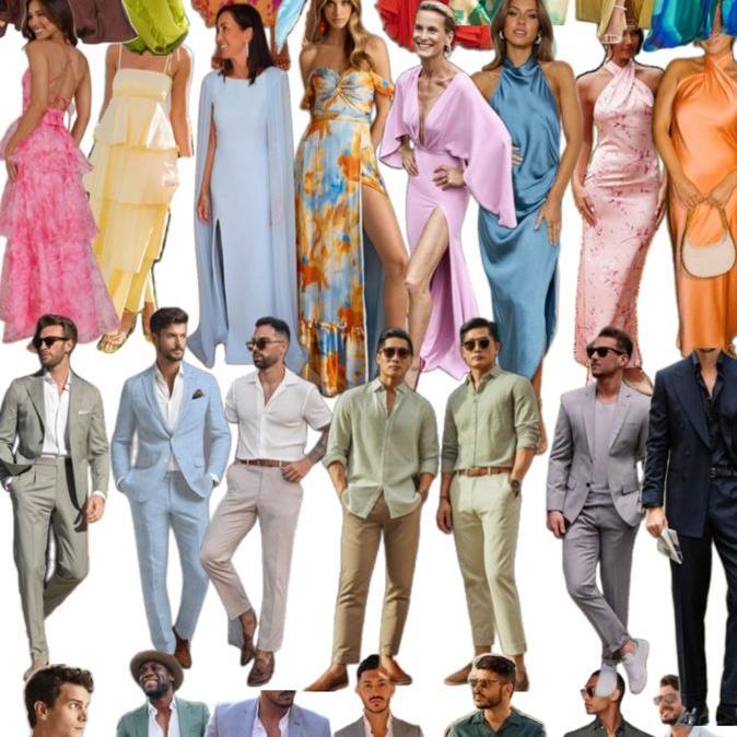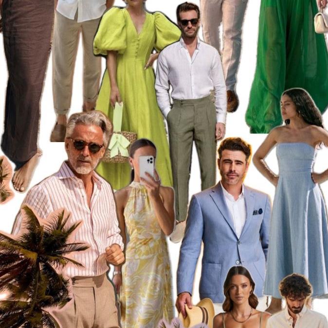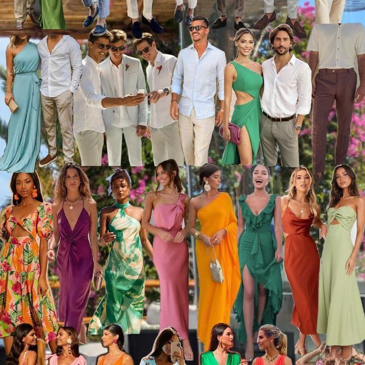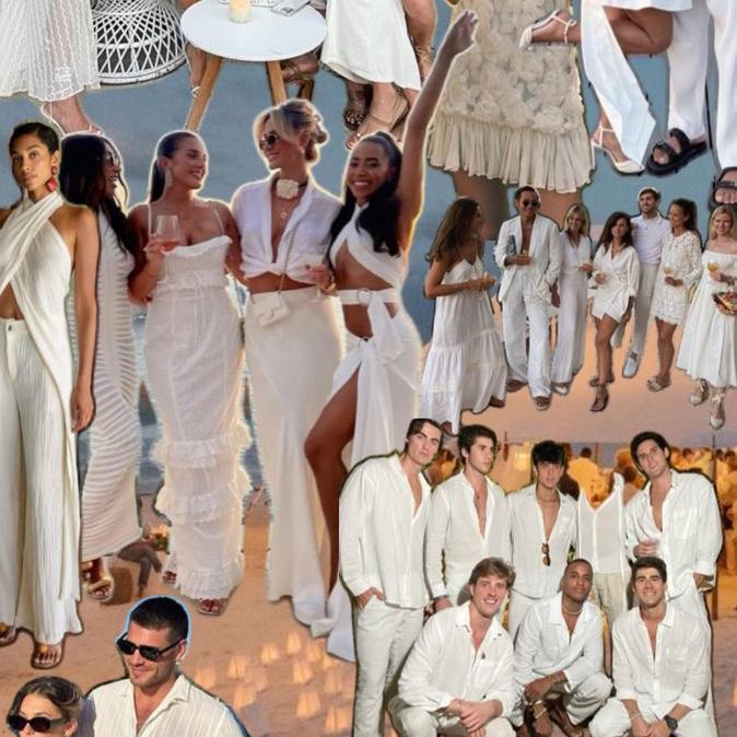Some photo inspiration for the Welcome Dinner’s “All White Night” theme. Then some colorful inspiration for the Wedding Ceremony + Reception “Beach Cocktail” attire